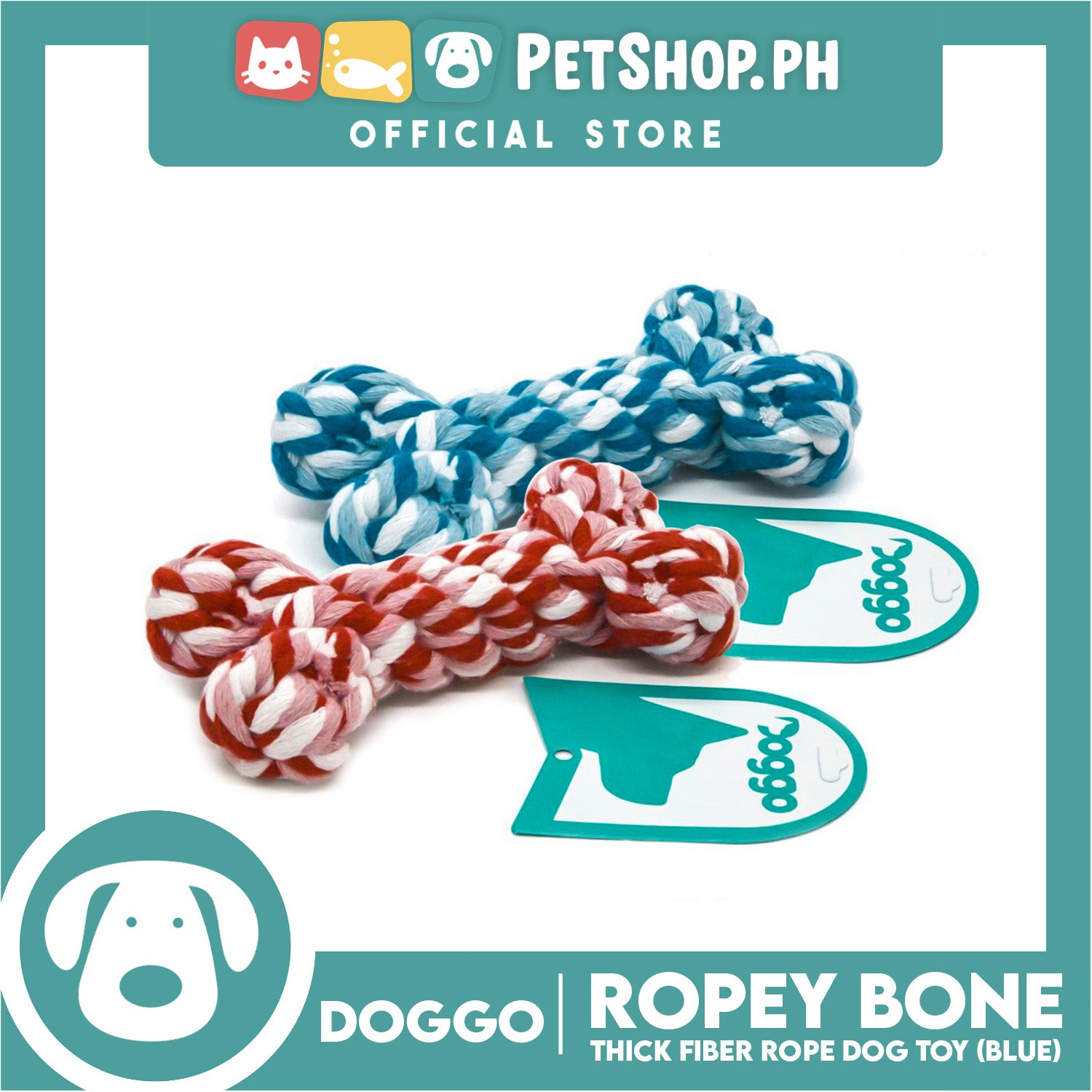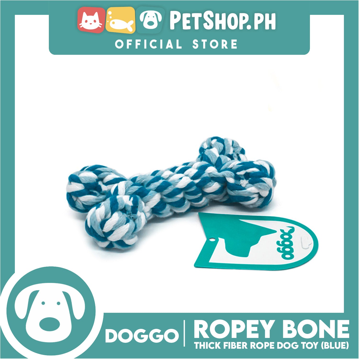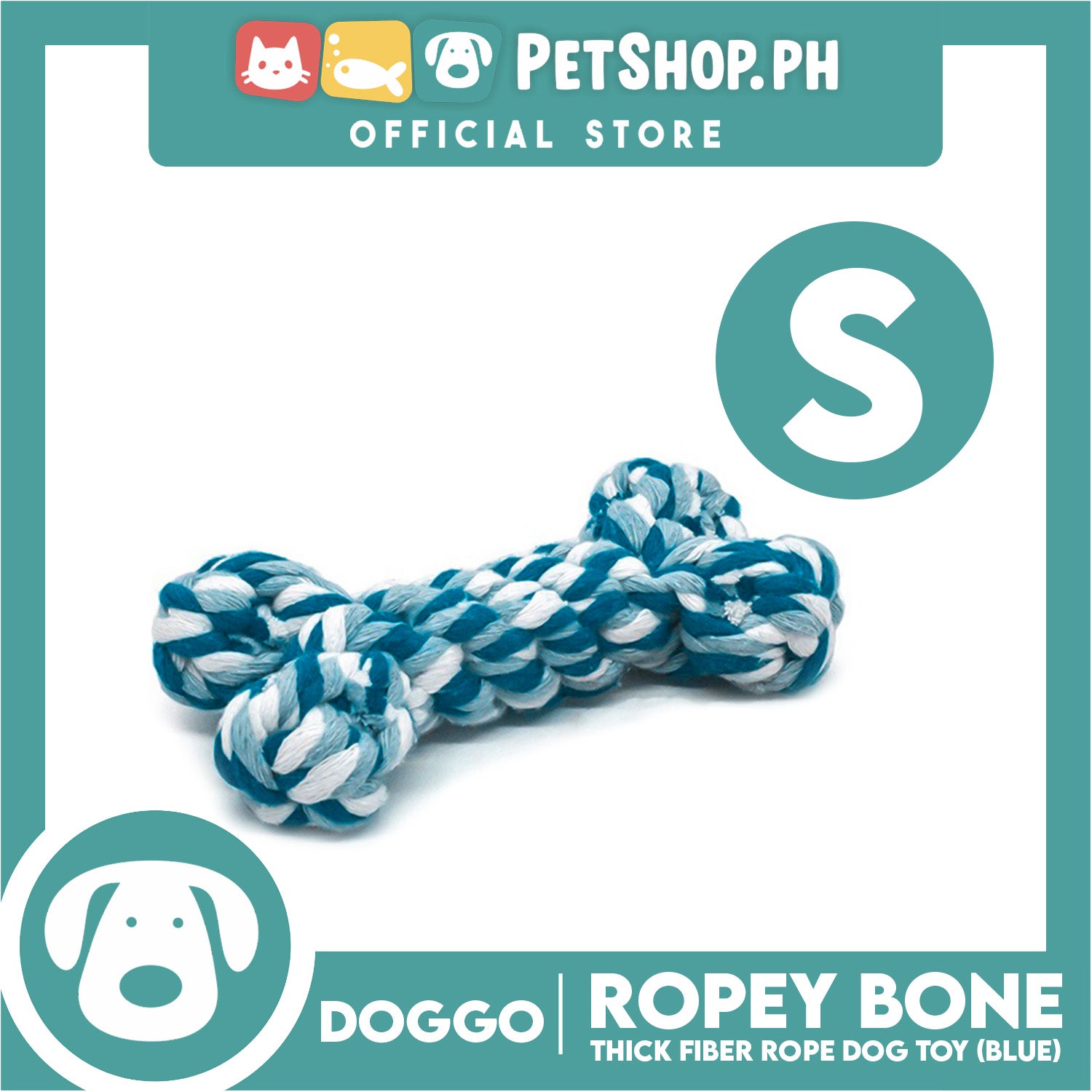 Doggo Ropey Bone Blue Color (Small) Thick Fiber Braided Bone Dog Toy