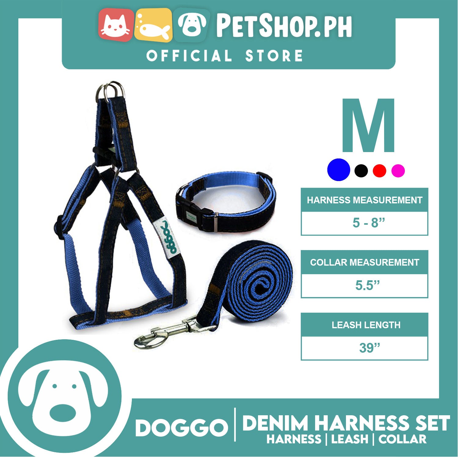 Doggo Strong Harness Set Denim Design Medium (Blue) Harness, Leash and Collar for Your Dog