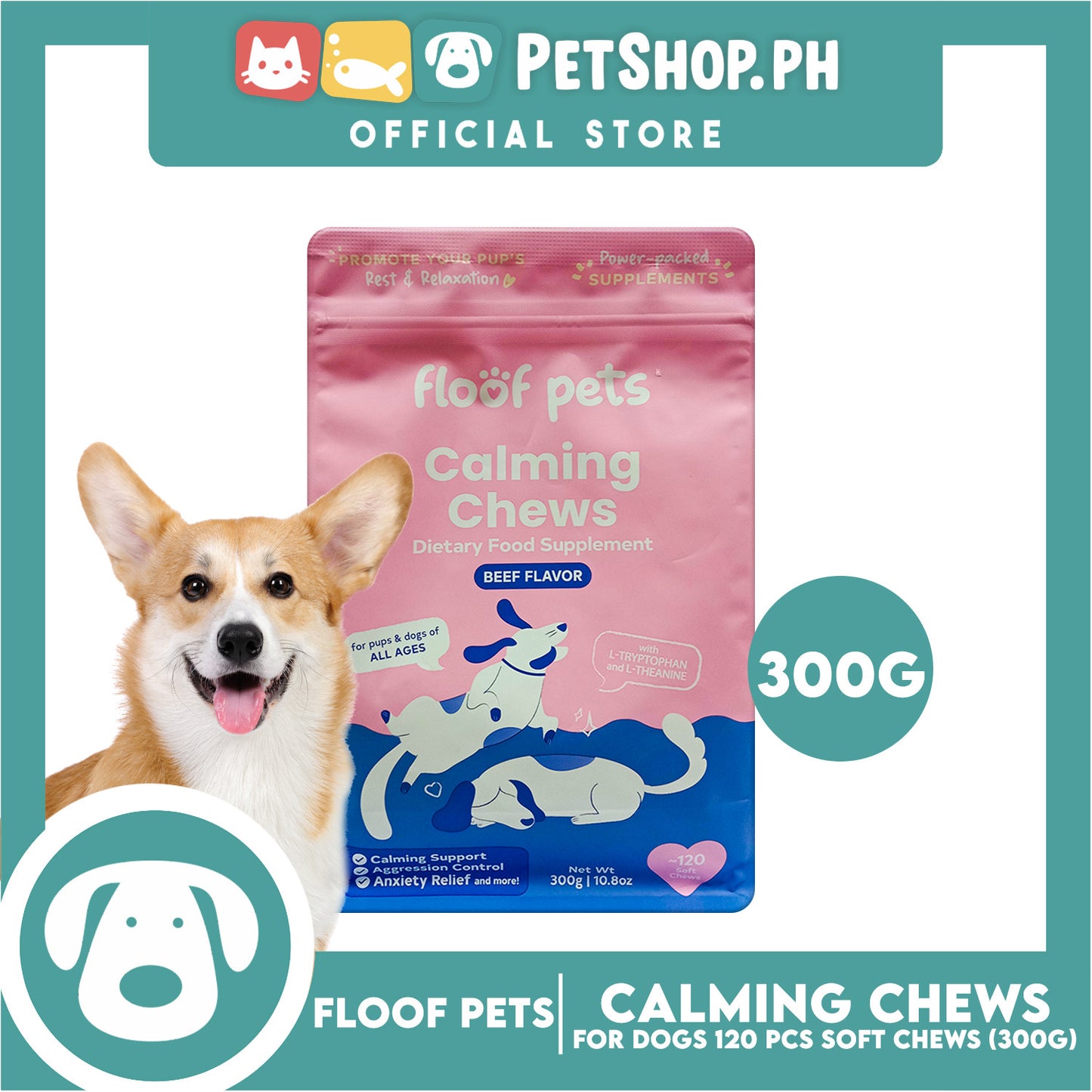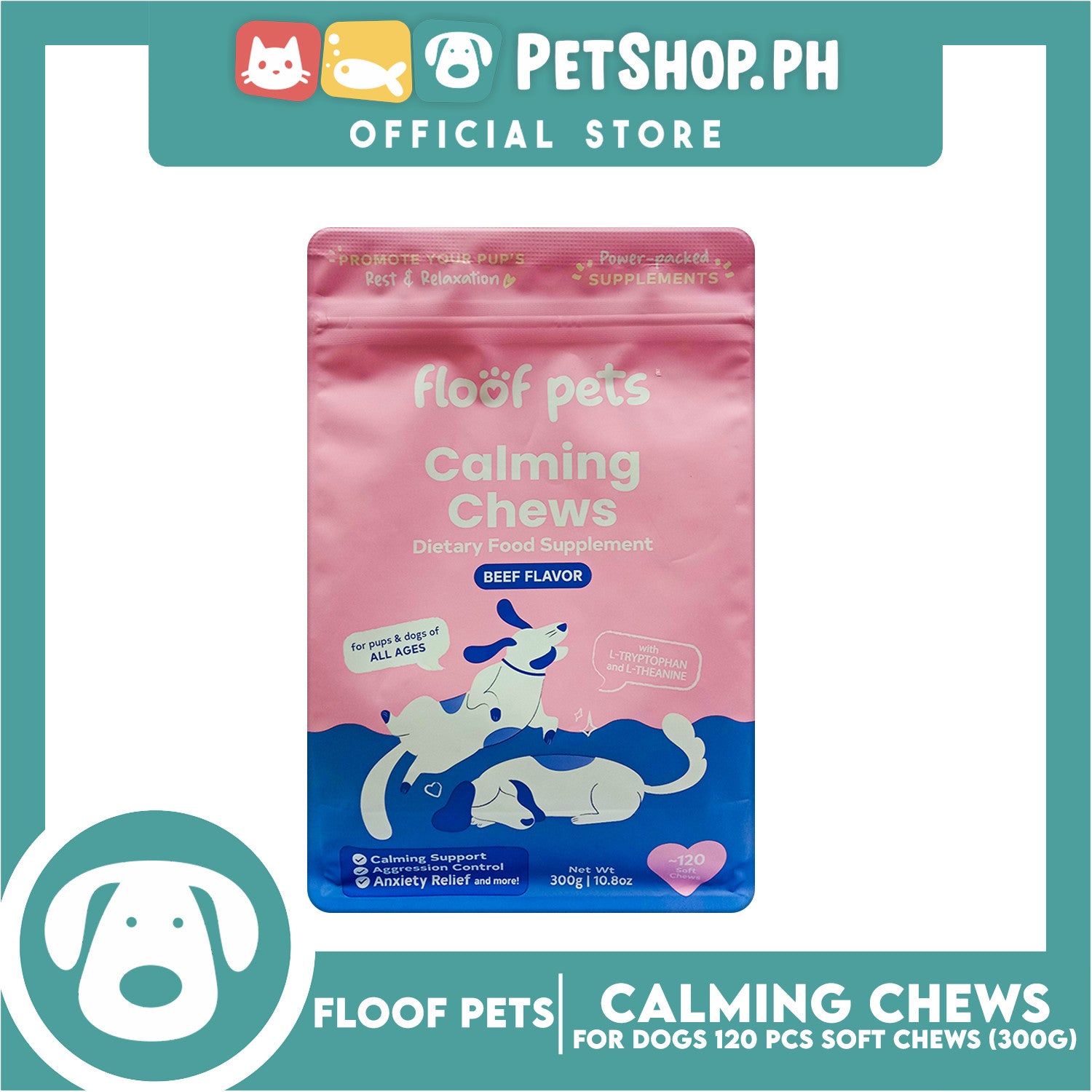 Floof Pets Calming Chews Dietary Food Supplement (Beef Flavor) for All Ages 300g 10.8 oz