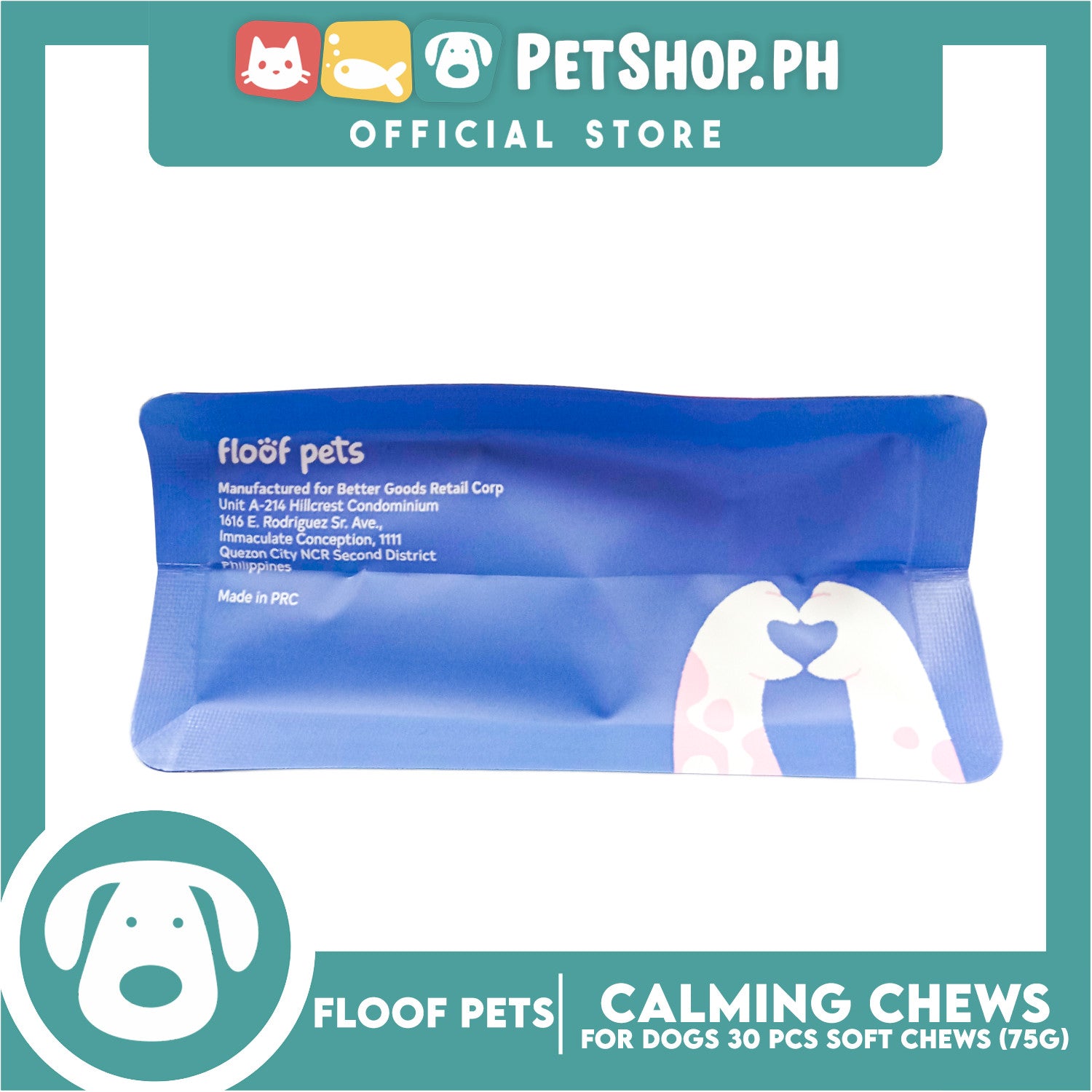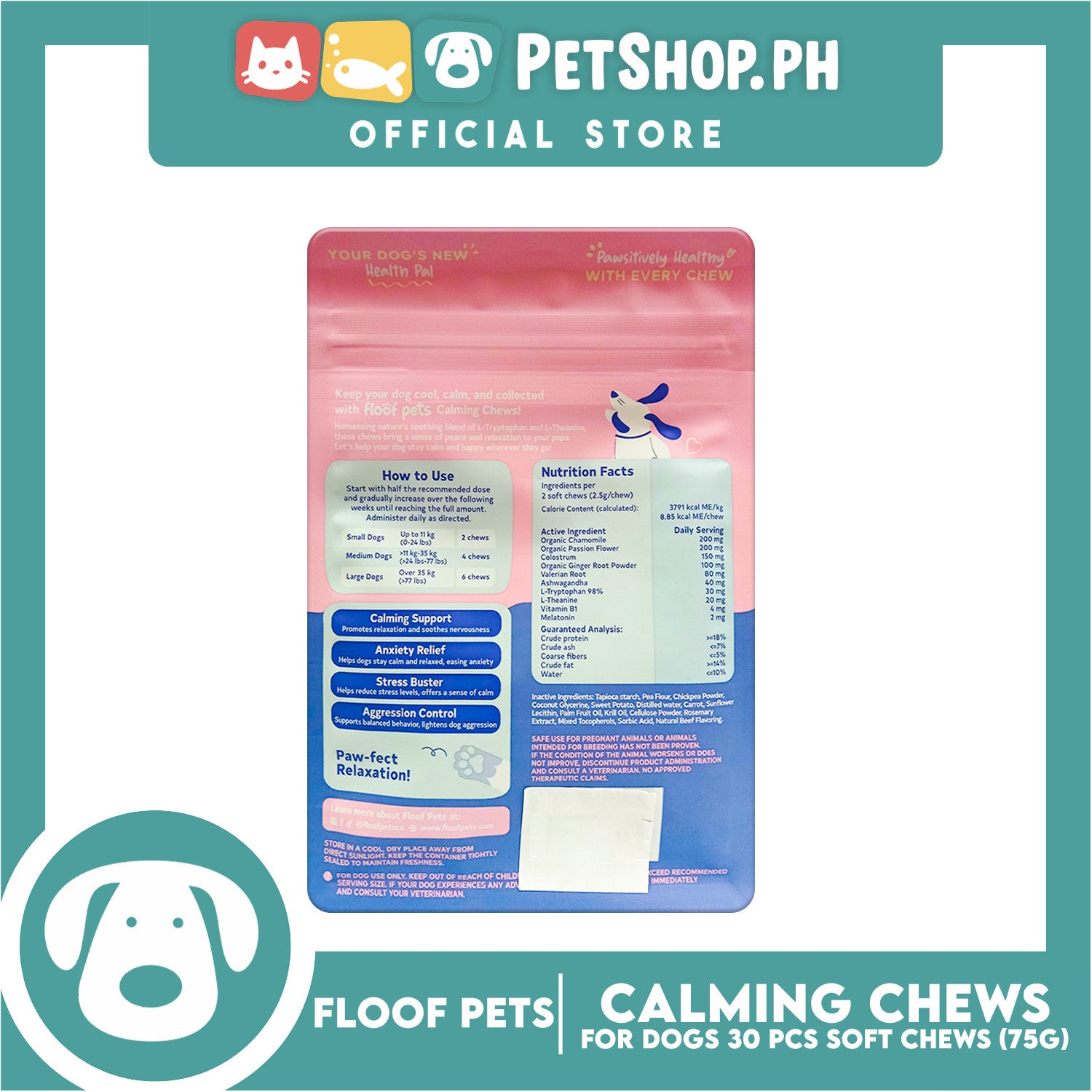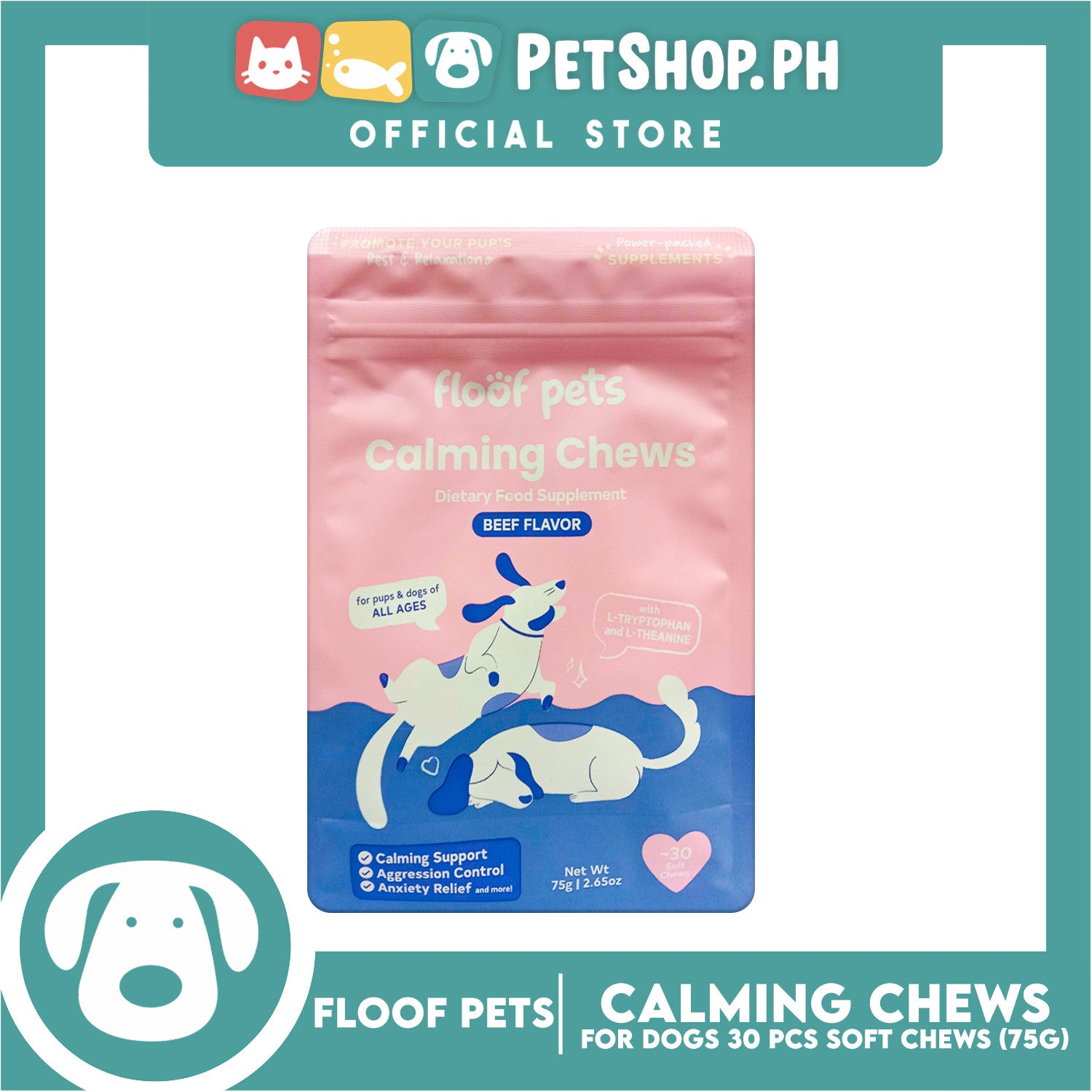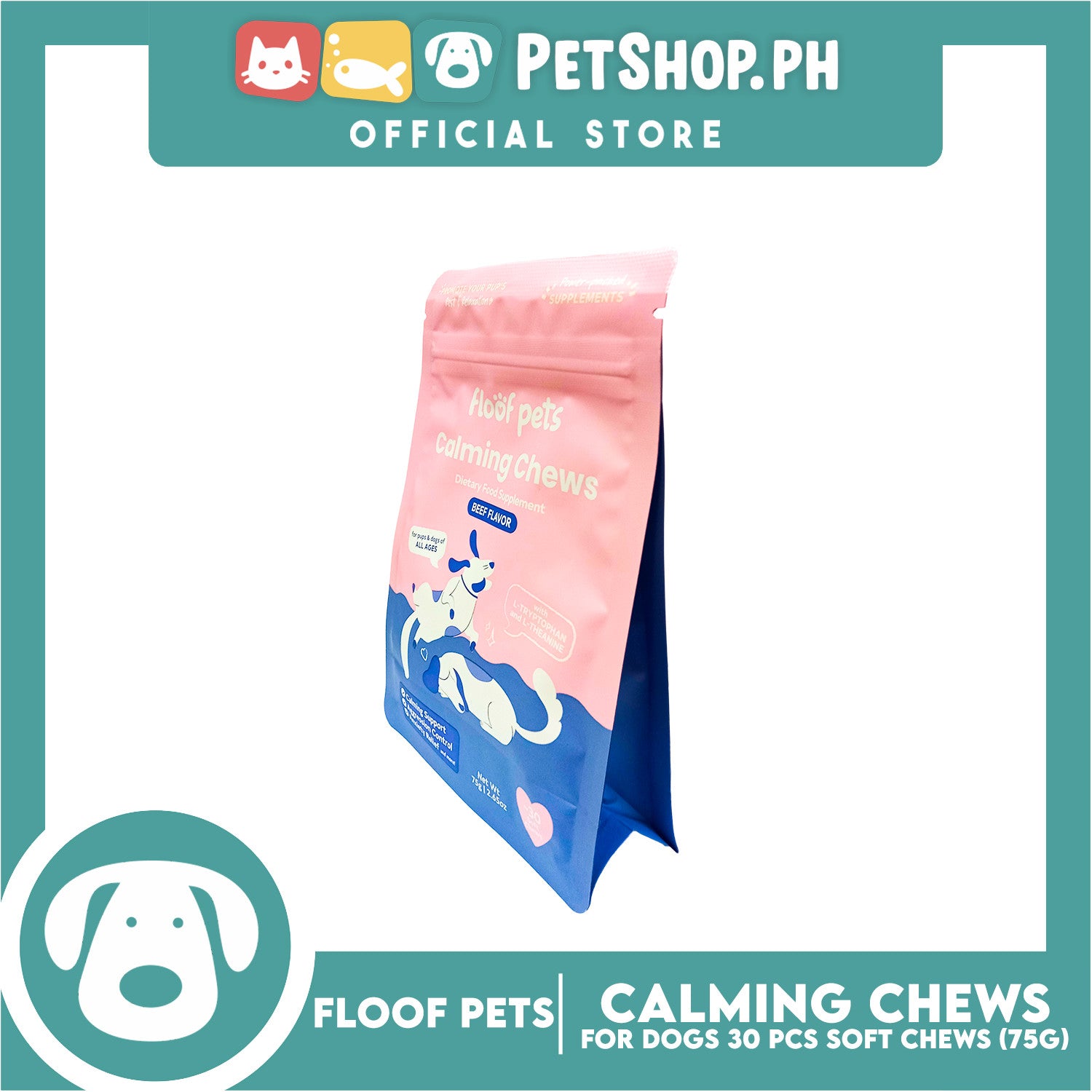 Floof Pets Calming Chews Dietary Food Supplement (Beef Flavor) for All Ages 75g 2.65oz