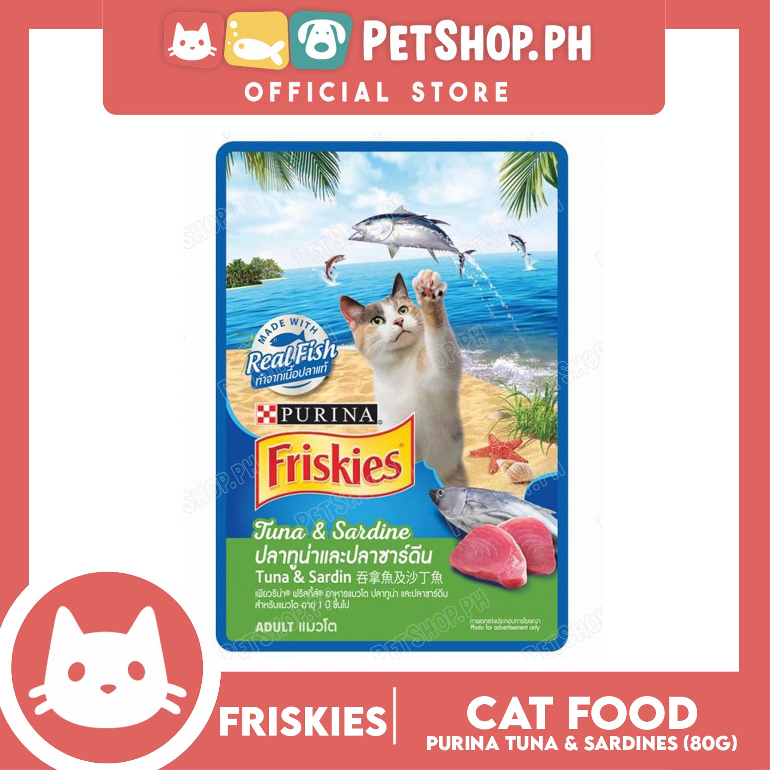 Purina Friskies Tuna Sardine is formulated to meet the nutritional levels established by the AAFCO Cat Food Nutrient Profiles for all life stages.