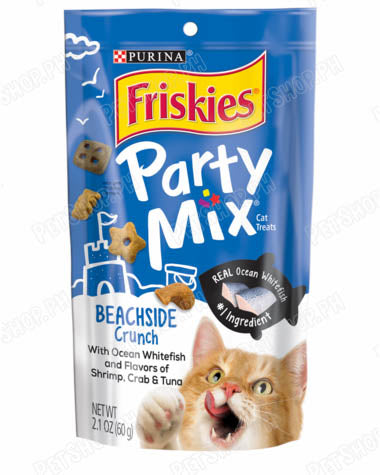 Purina Friskies Party Mix Beachside Crunch is formulated to meet the nutritional levels established by the AAFCO Cat Food Nutrient Profiles for maintenance of adult cats.