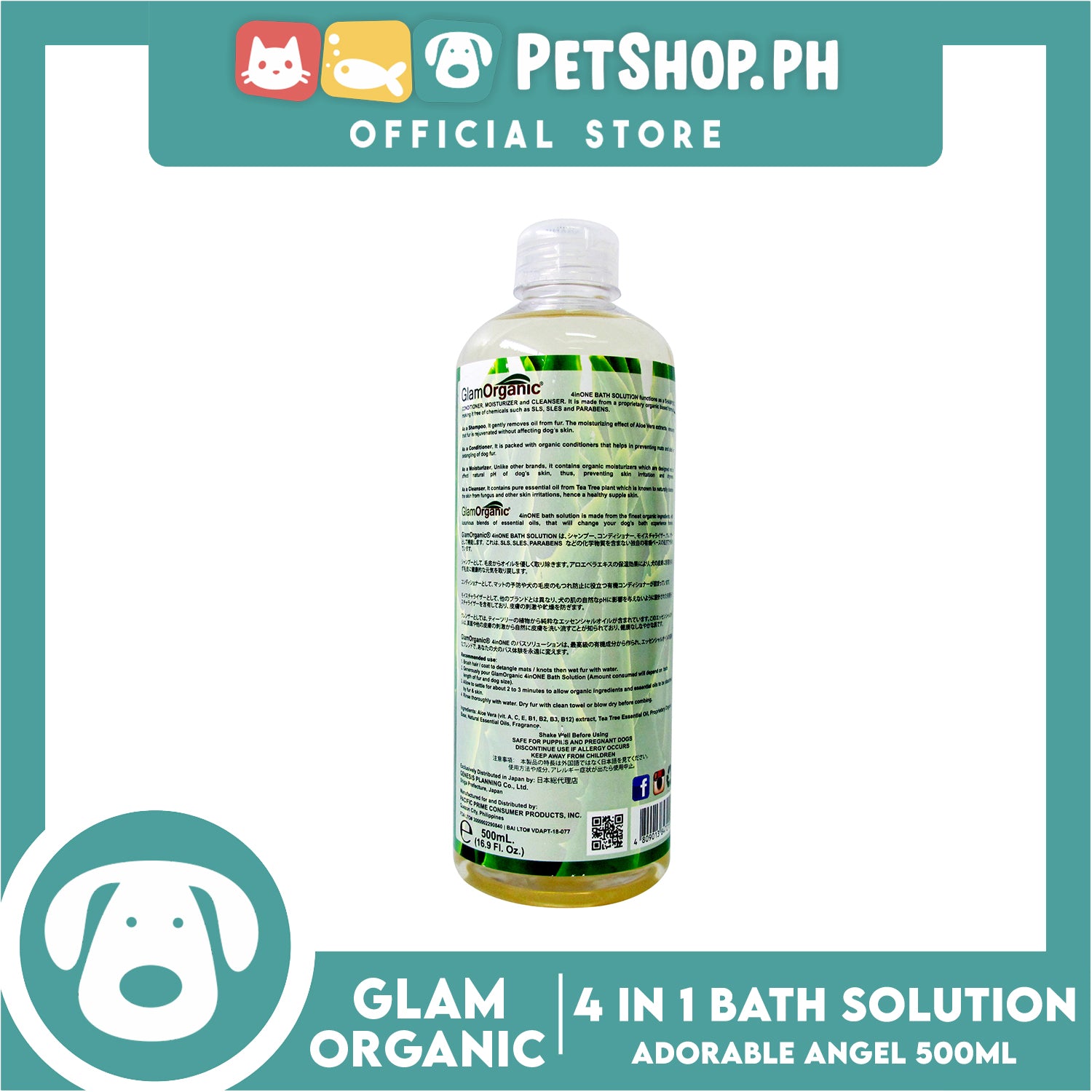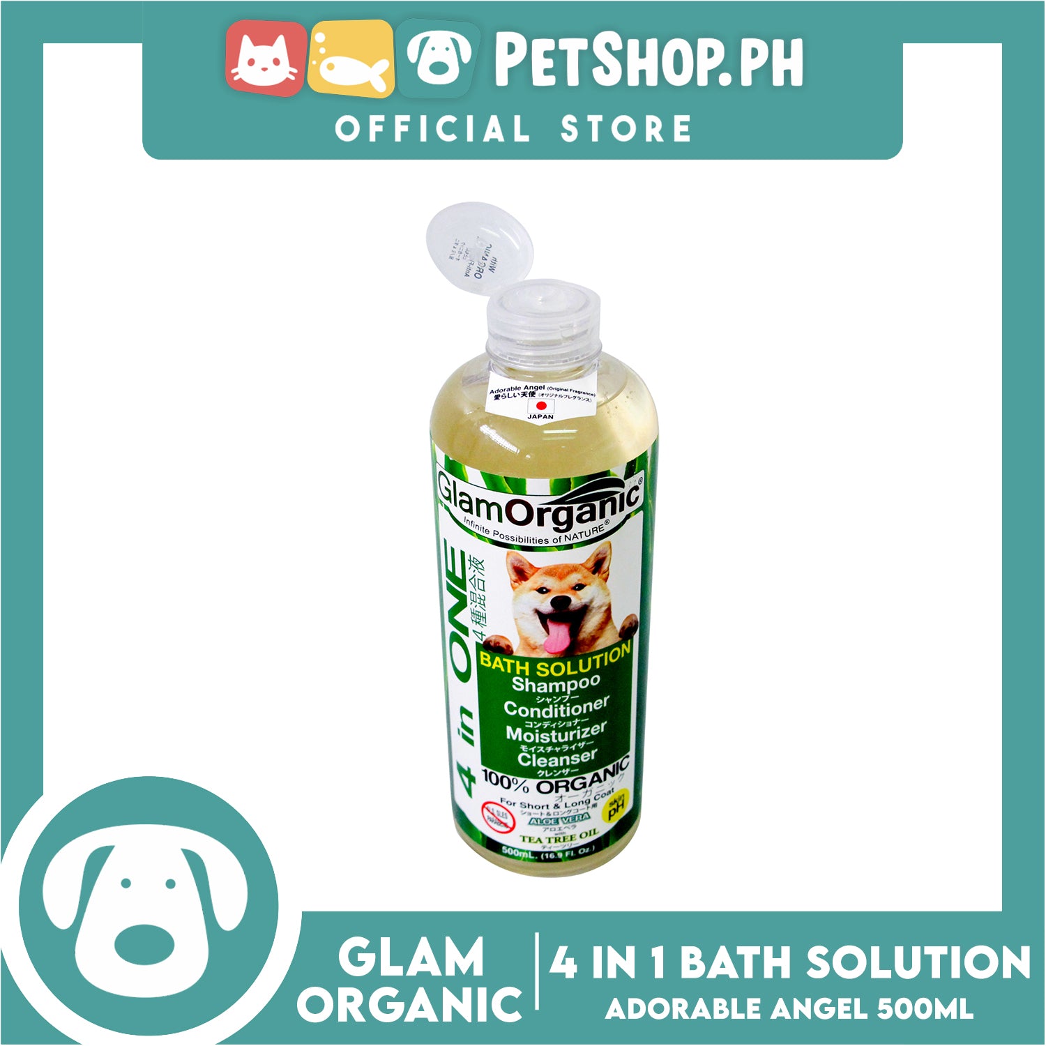 Glam Organic 4 in 1 Bath Solution 100% Organic 500ml (Adorable Angel) Dog Grooming