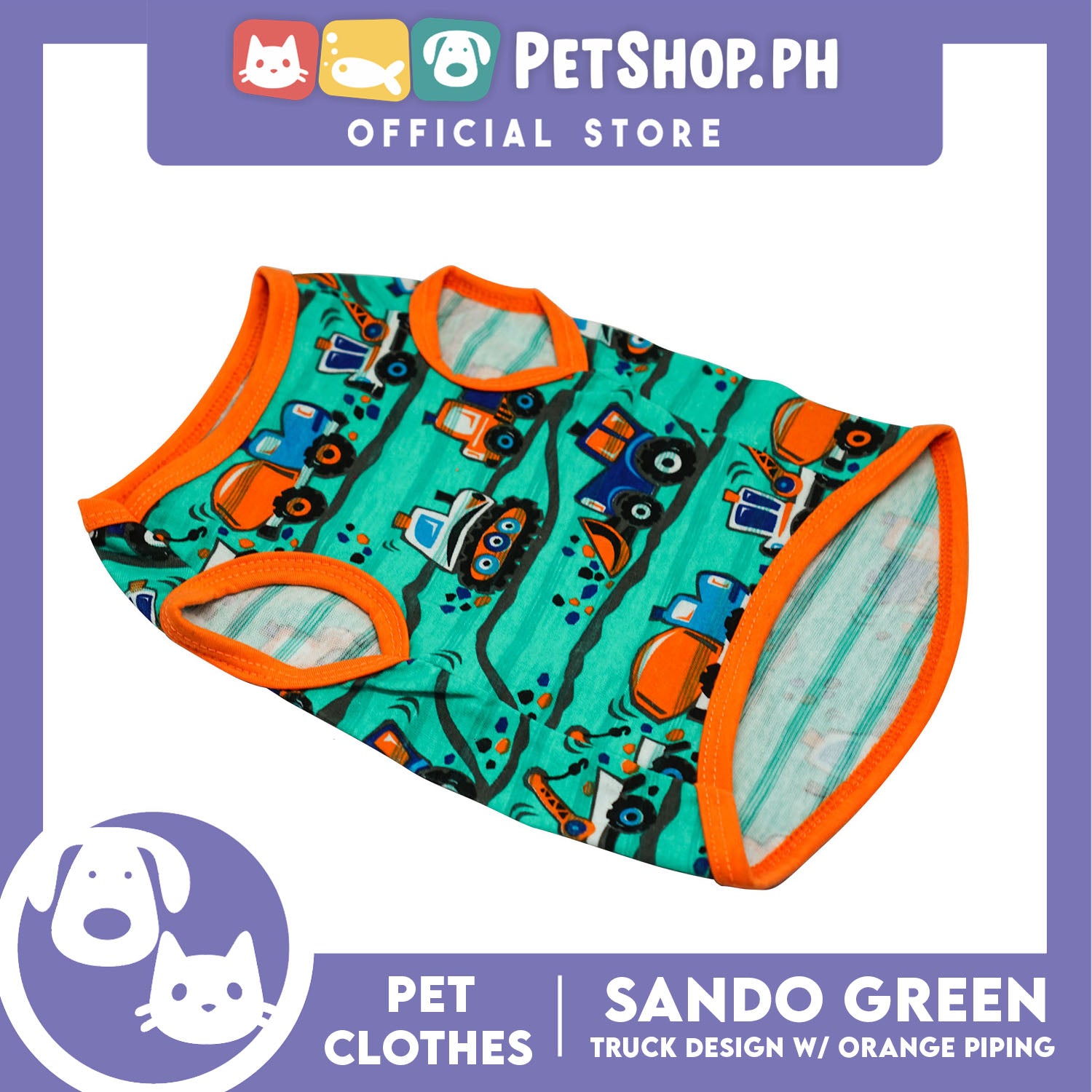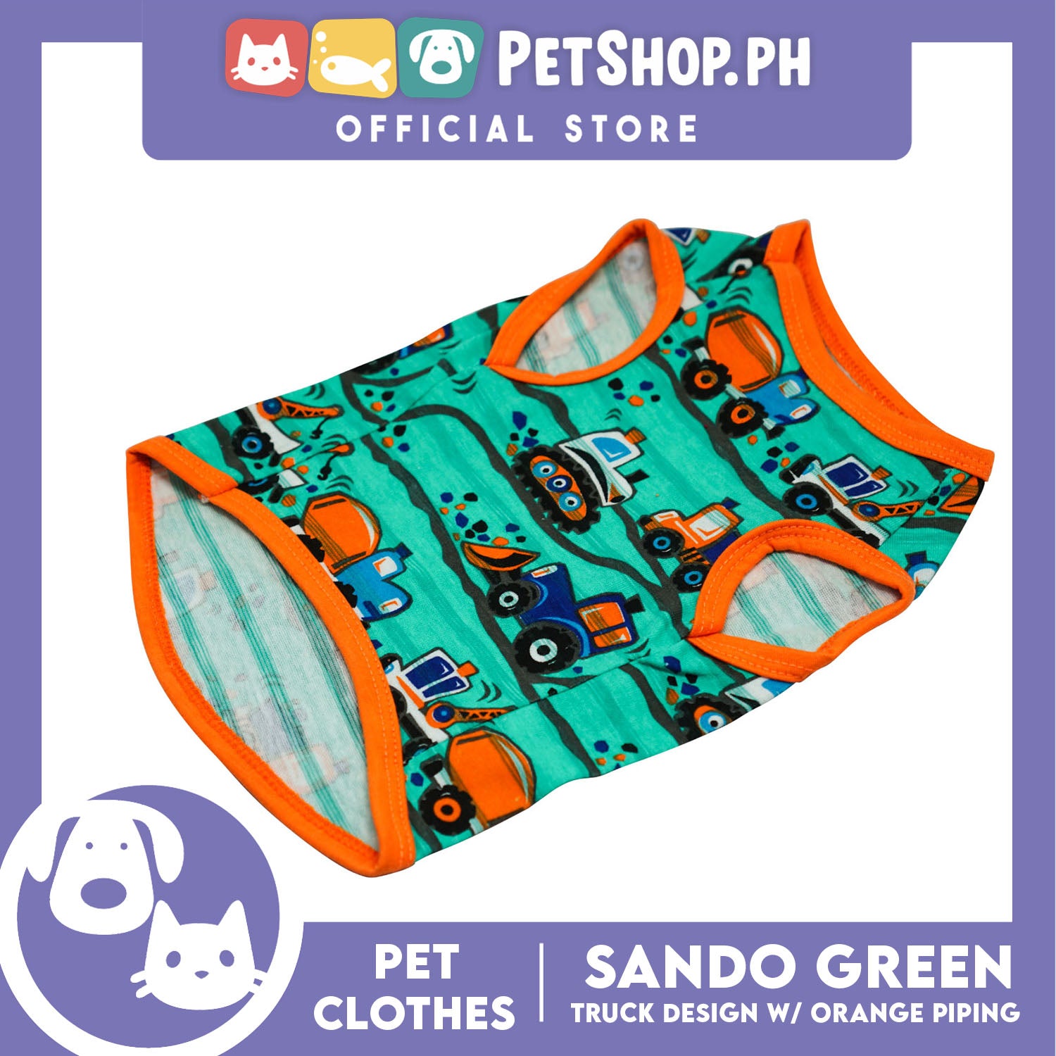 Green Pet Sando with Truck Design with Orange Piping Sleeveless (Medium) for Puppy, Small Dogs