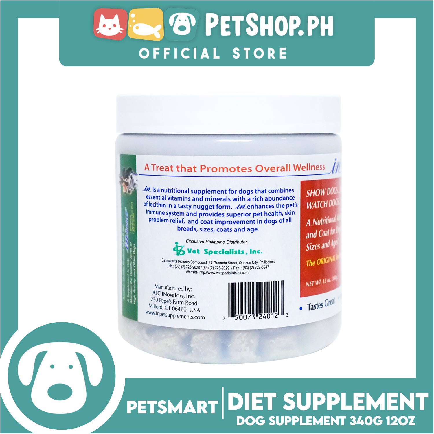- In is a nutritional supplement for dogs that combines essential vitamins and minerals with a rich abundance of lecithin in a tasty nugget form.
