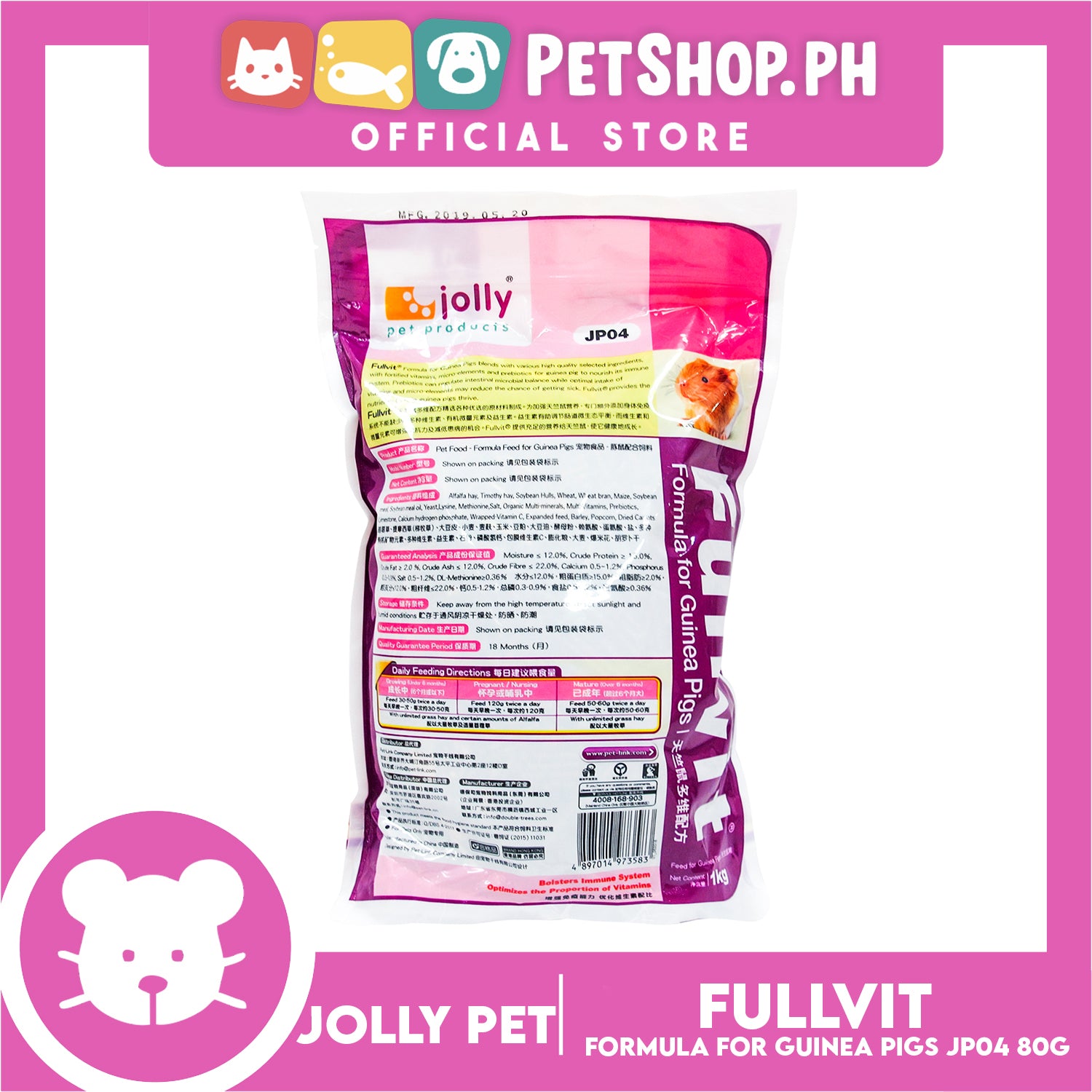 - Fullvit formula for guinea pigs blends with various high quality selected ingredients, with fortified vitamins, micro-elements and prebiotics for guinea pig to nourish its immune system.