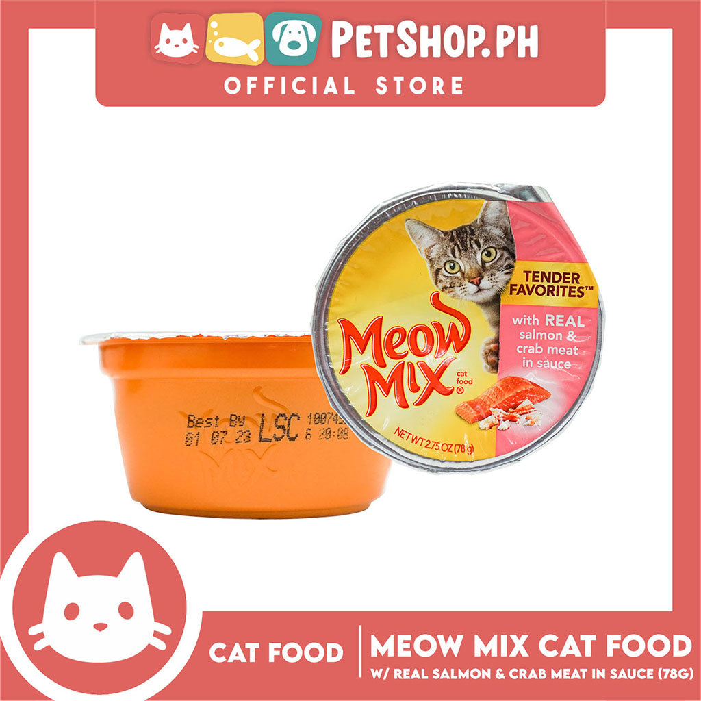 Meow Mix Tender Favorites with Real Salmon and Crab Meat in Sauce 78g for Cat Food