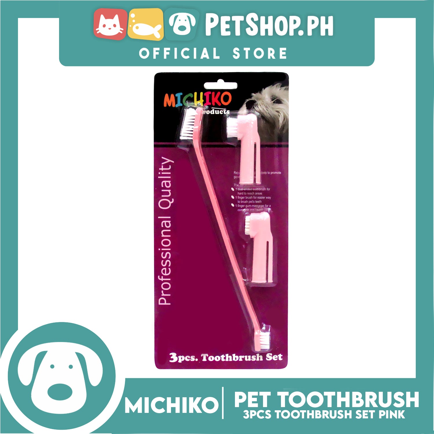 Michiko 3pcs Pet Toothbrush Set (Pink) Pet Finger Brush, Pet Finger Gum Massager, Pet Dental Care