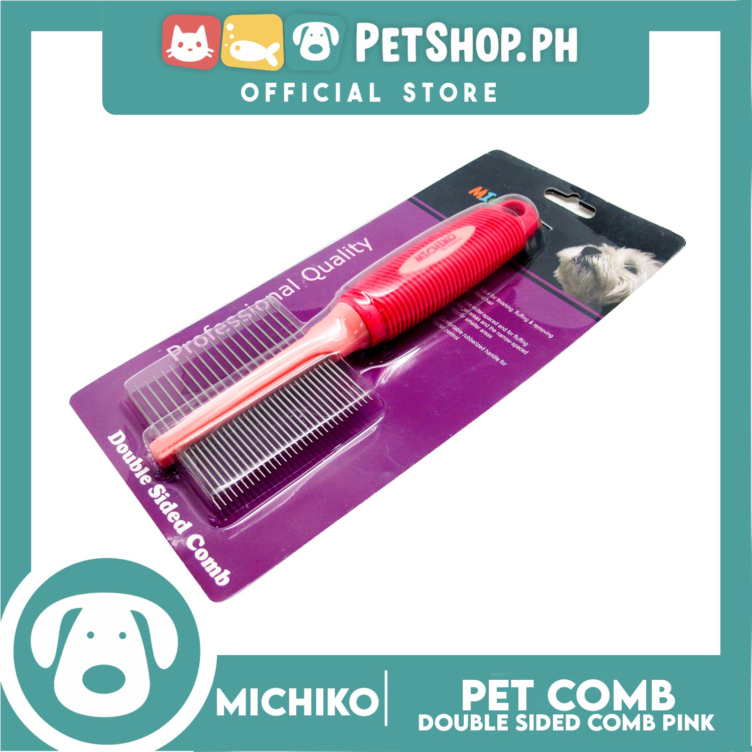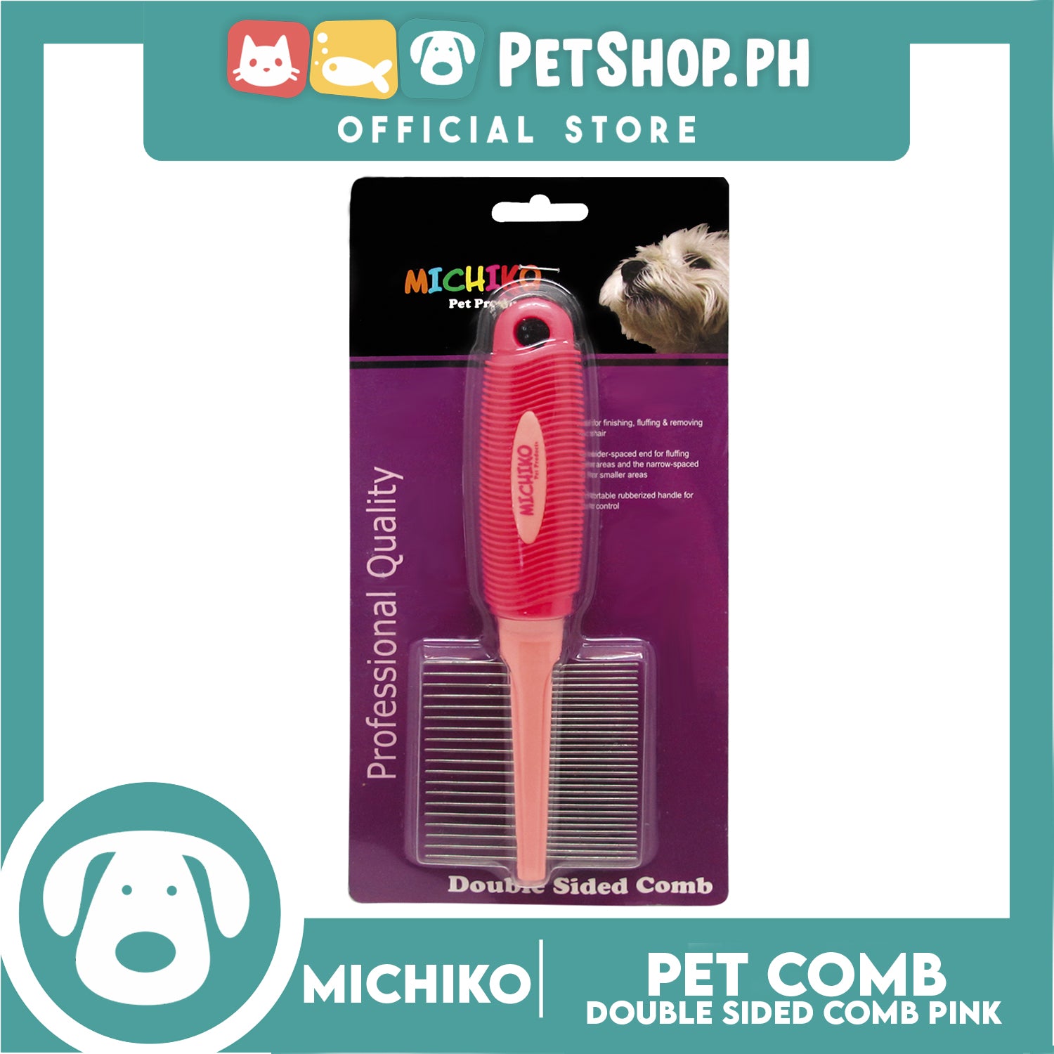 - The michiko double sided pet comb has a comfortable rubberized handle for better control.