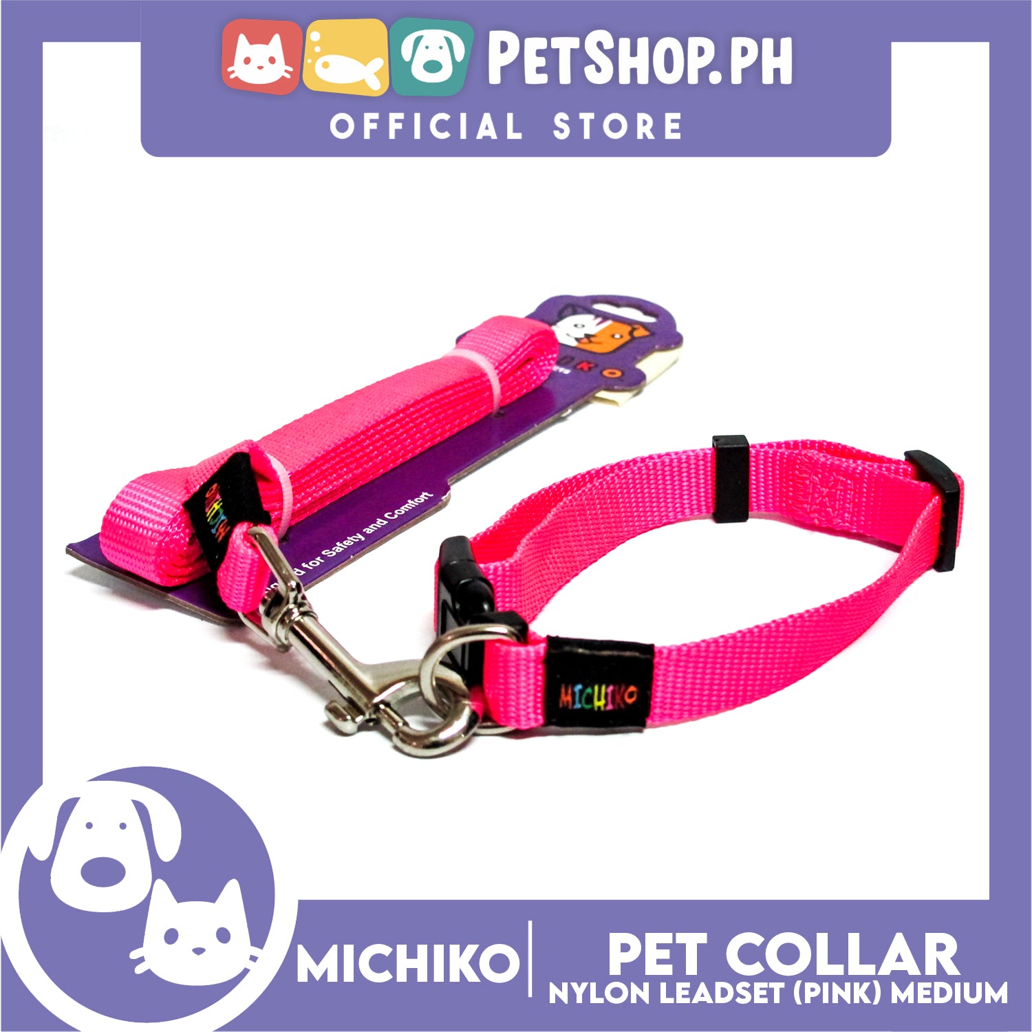 Michiko Nylon Collar Lead Set Pink (Medium) Dog Pet Collar