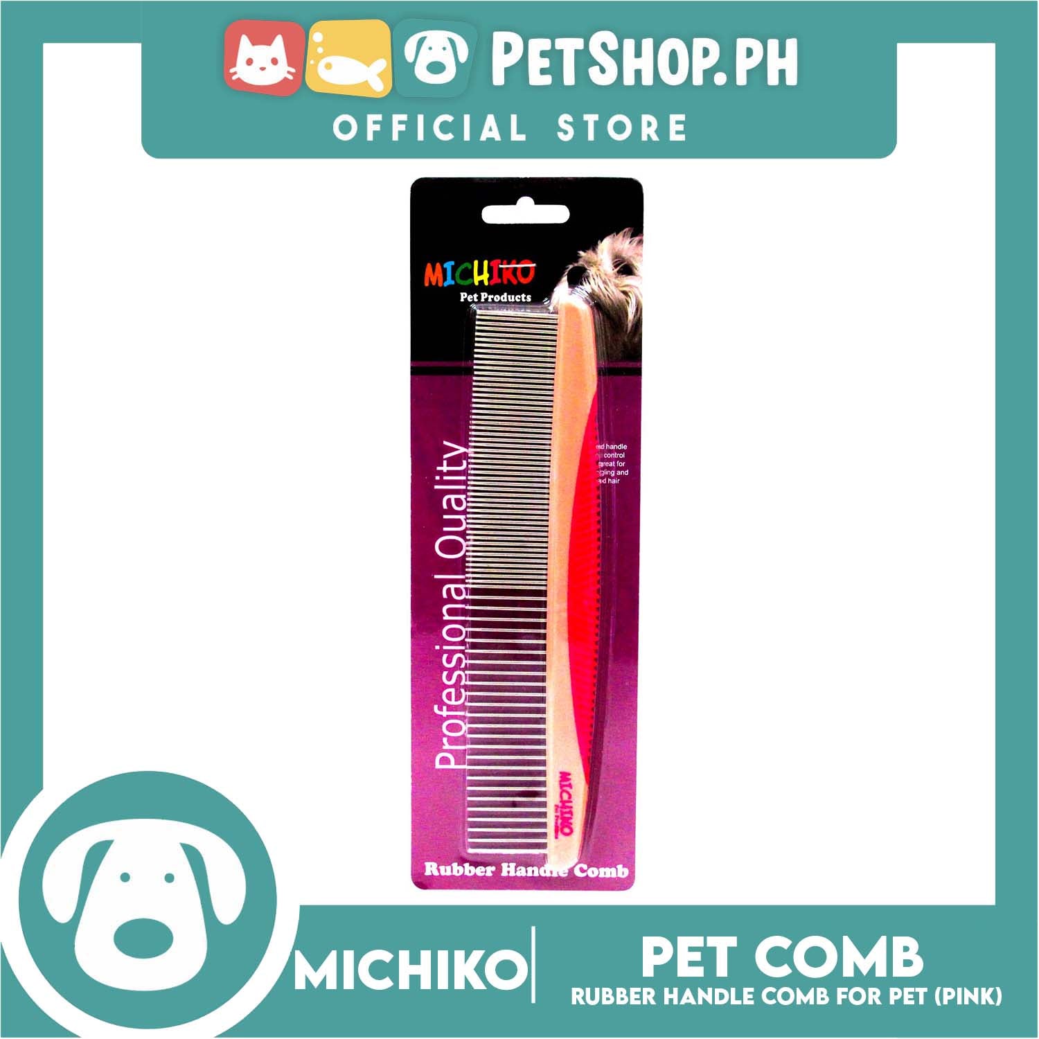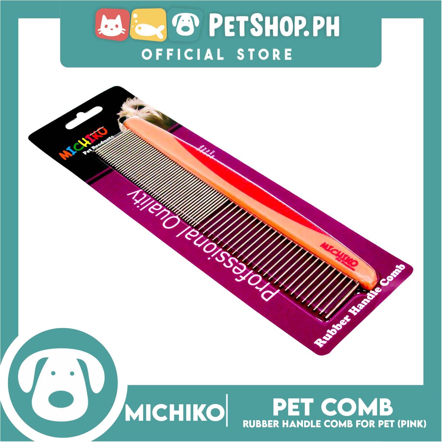 Michiko Rubber Handle Pet Comb (Pink) Pet Grooming