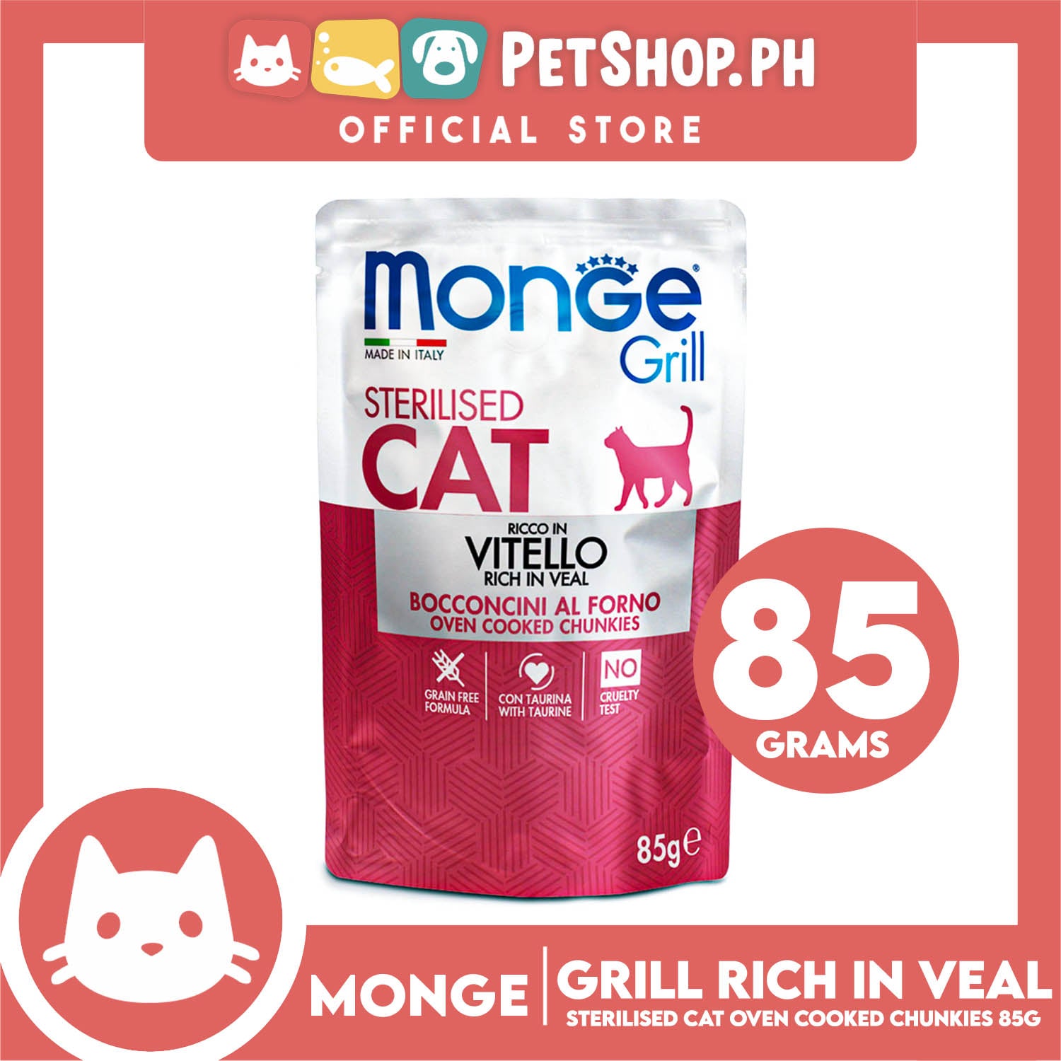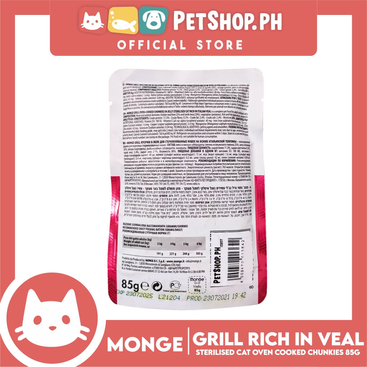 Monge Jelly Cat Pouch Grill For Sterilised Cats 85g (Vitello, Rich In Veal) Cat Wet Food, Cat Pouch Food