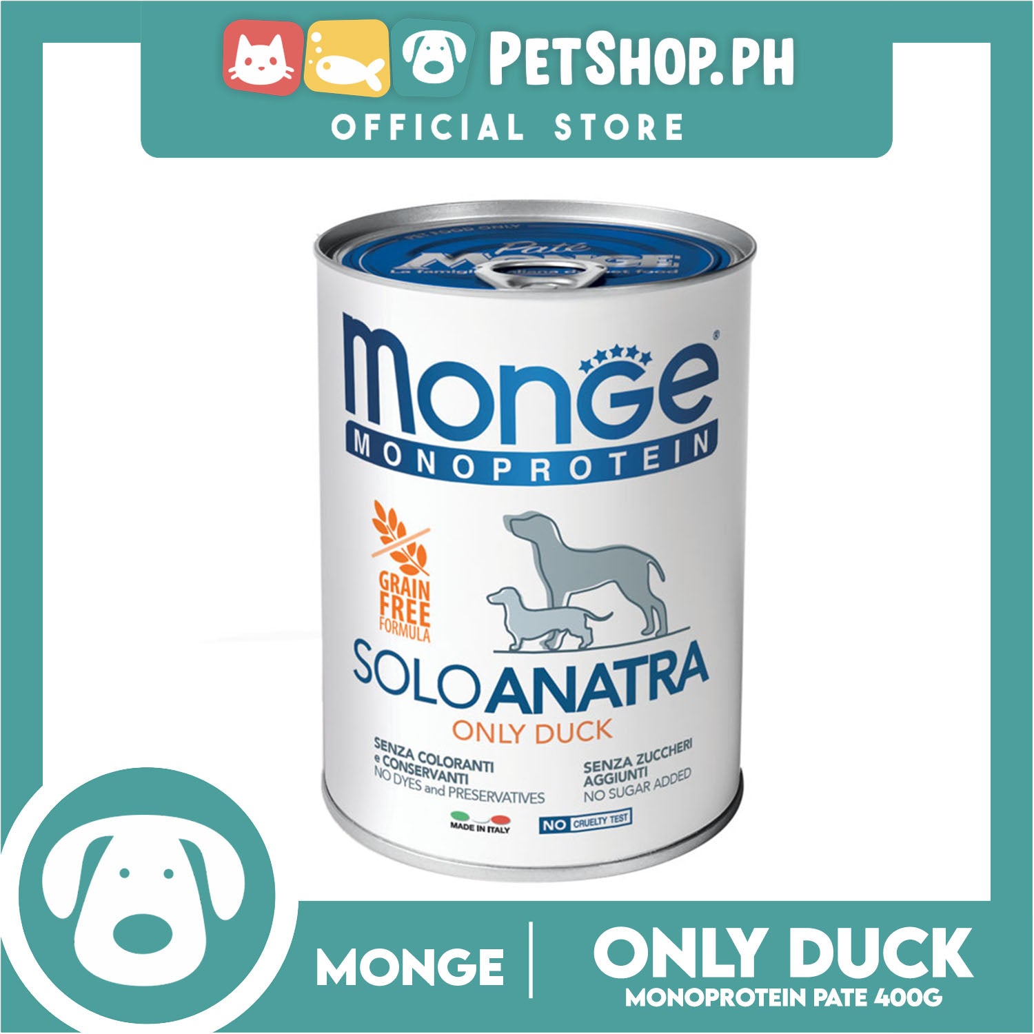 Monge Monoprotein Solo Pate Wet Dog Food, Grain Free 400g (Solo Anatra, Only Duck) For Daily Diet Of All Breeds Puppies Canned Food