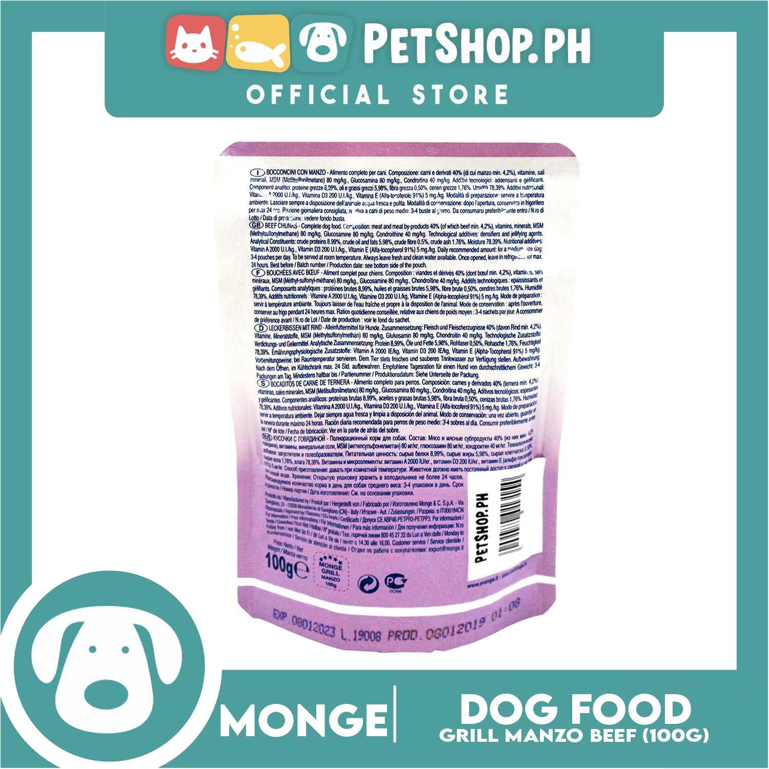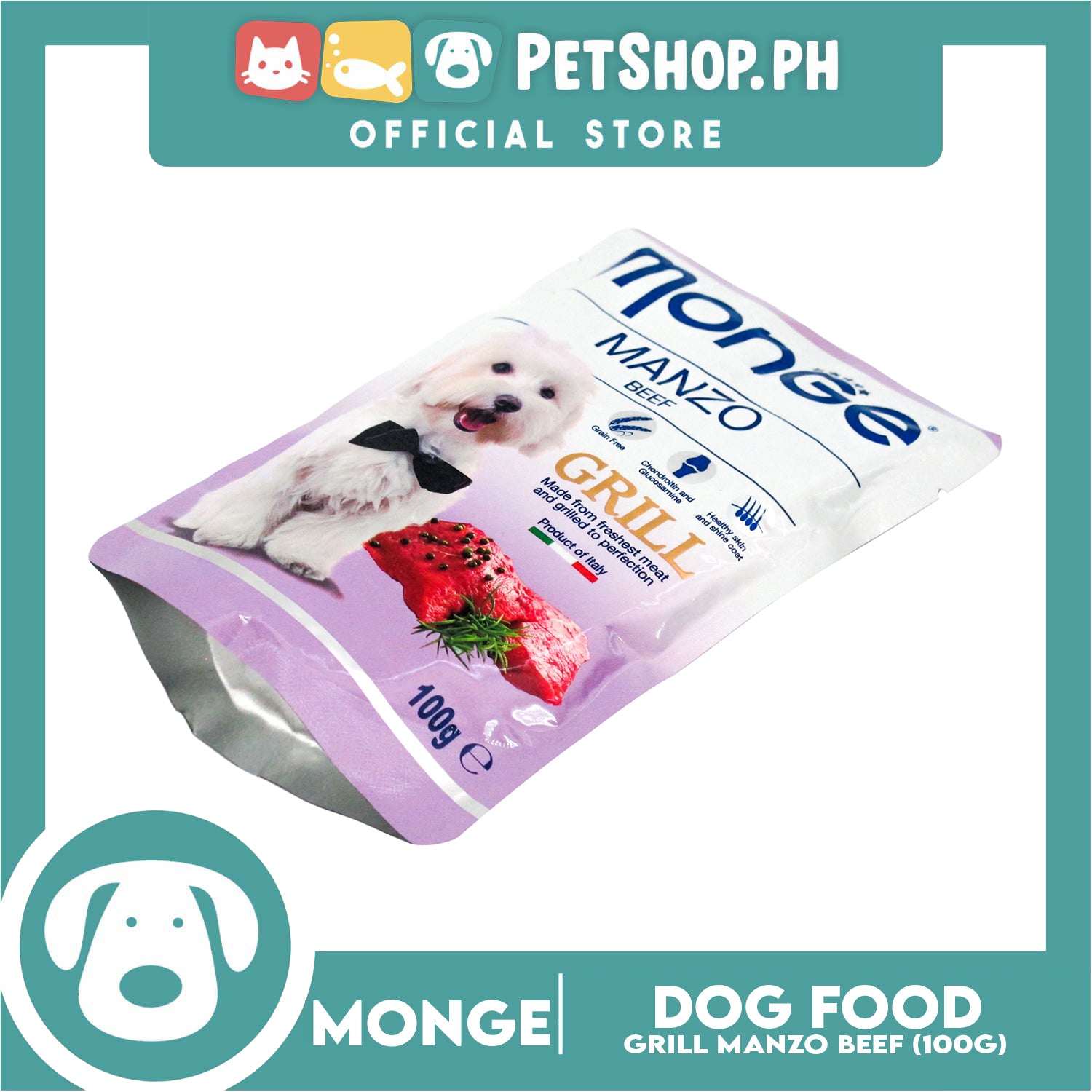 Monge Pouch Grill Chunkies Dog Food 100g (Manzo Beef) Grain Free And Helps Dog Shiny Hair