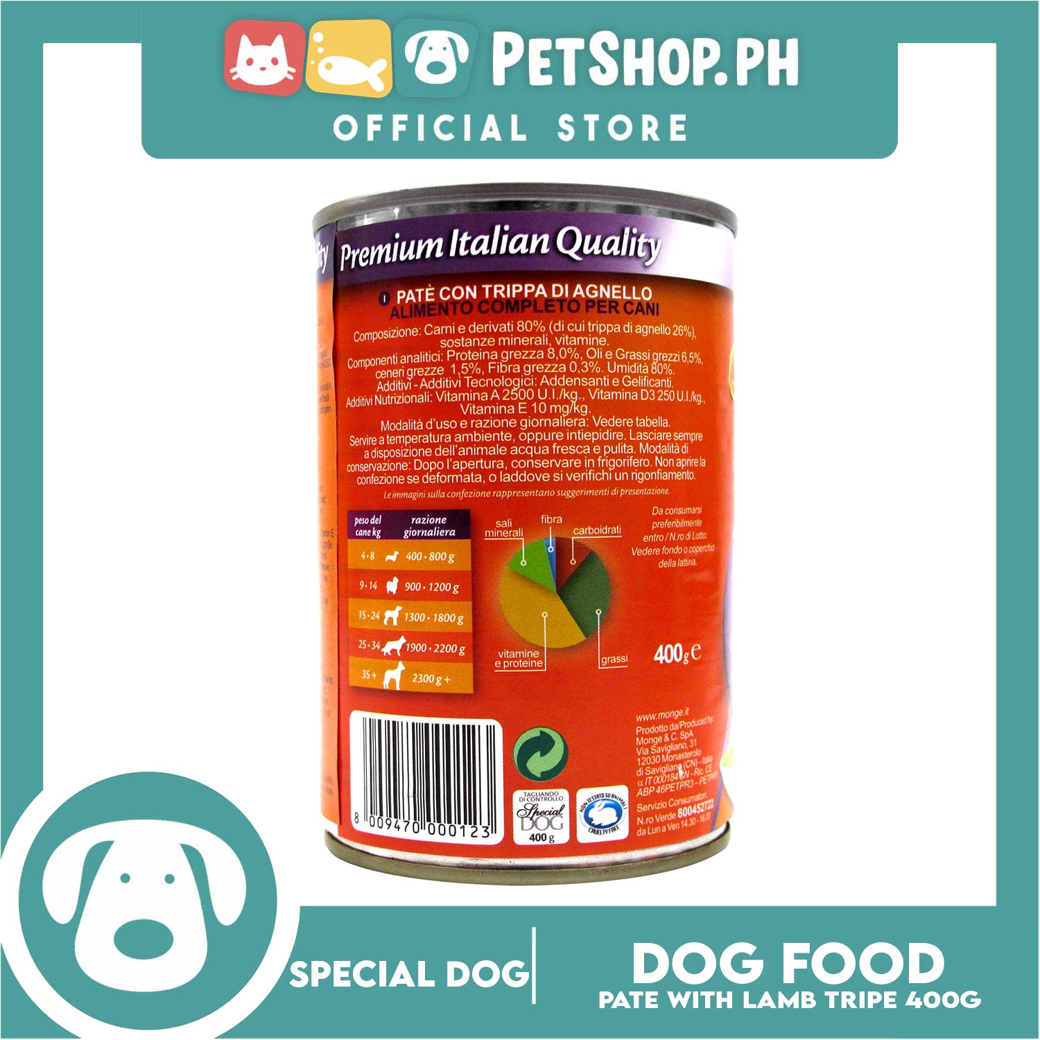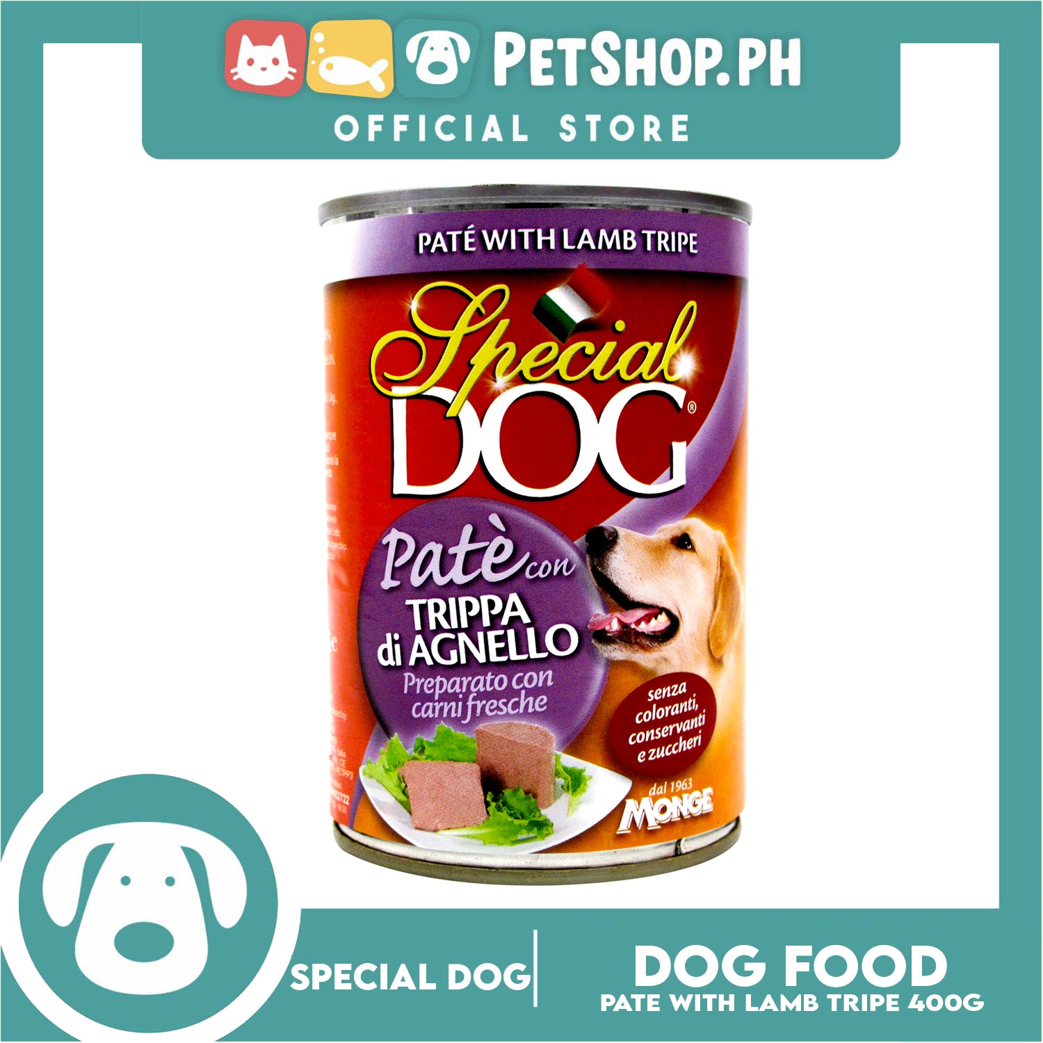 Monge Special Dog Pate 400g (Pate With Lamb Tripe) Dog Wet Food, Dog Canned Food