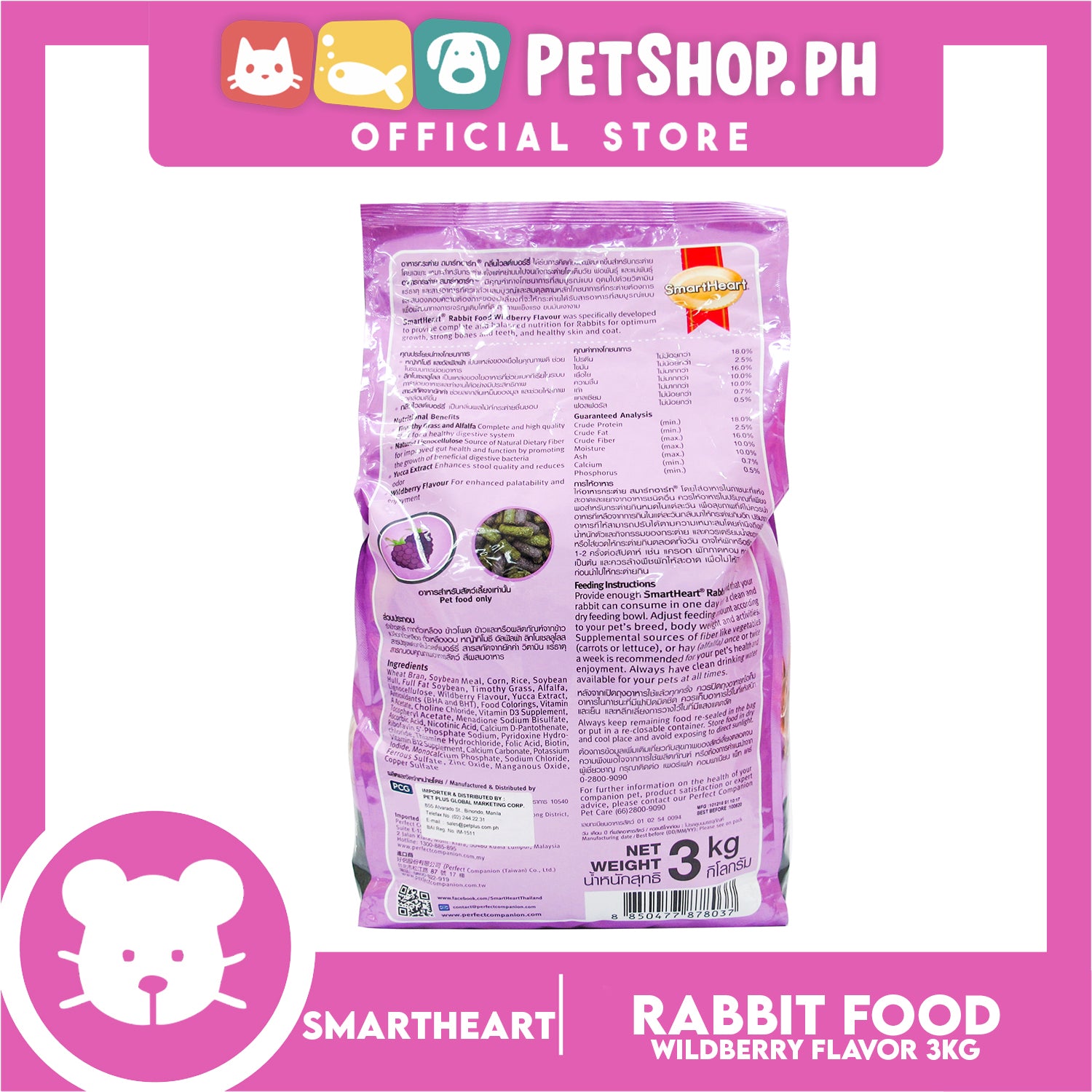 - SmartHeart Rabbit Food Wildberry Flavor was specifically developed to provide complete and balanced nutrition for rabbits for optimum growth, strong bones and teeth and healthy skin and coat