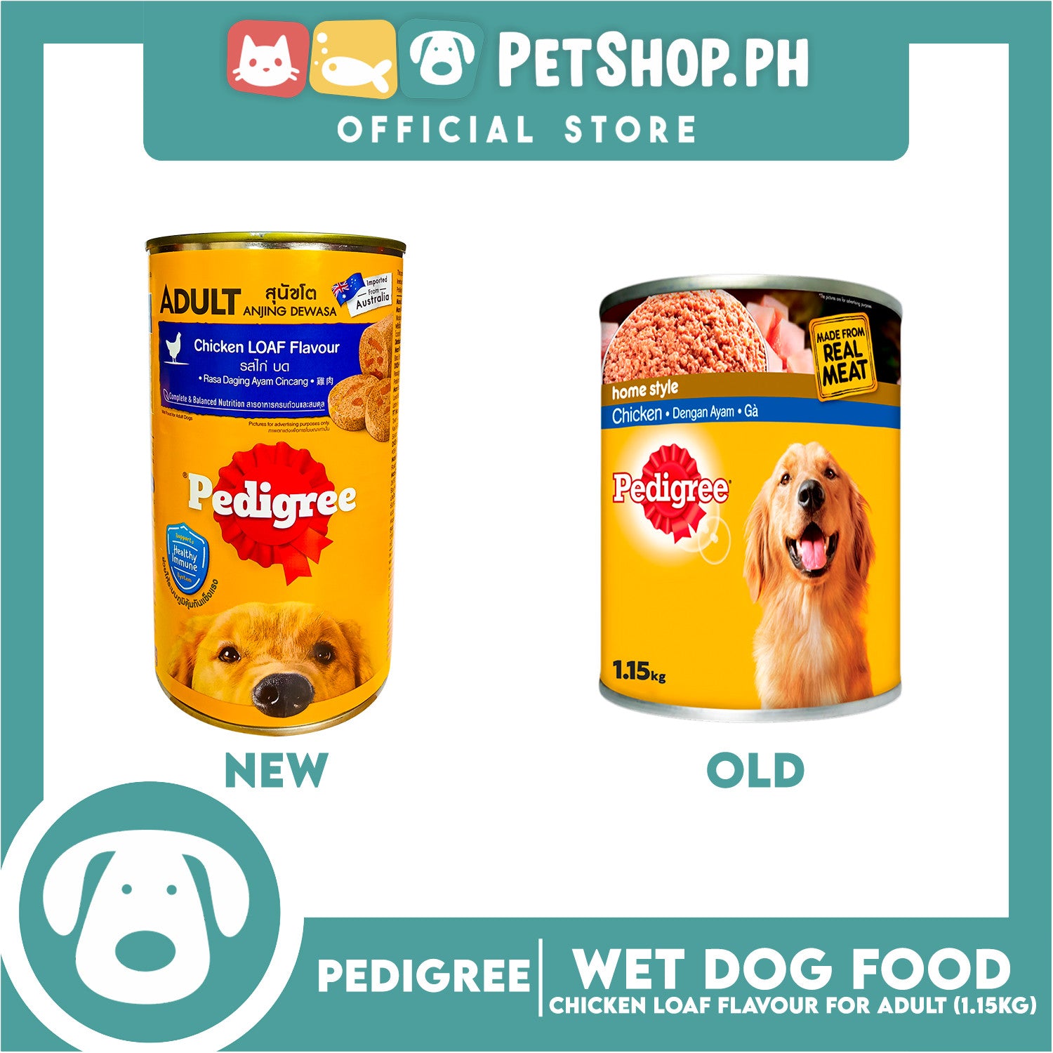 - Pedigree Can is also enriched with Vitamin E and Omega 6 for healthy skin and a beautiful coat. The superb taste from real meat ensures pure enjoyment for dog.
