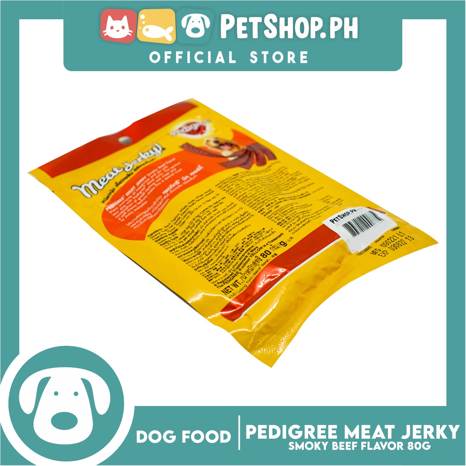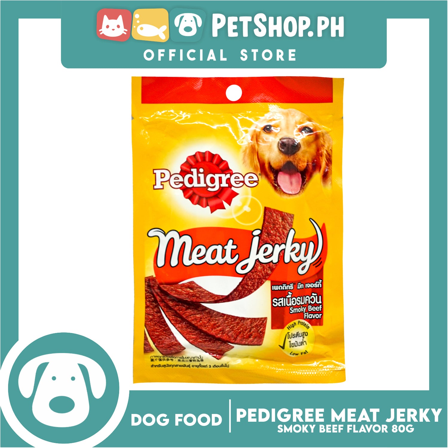 Pedigree Meat Jerky Smokey Beef Flavor 80g Dog Treats, Soft Chew