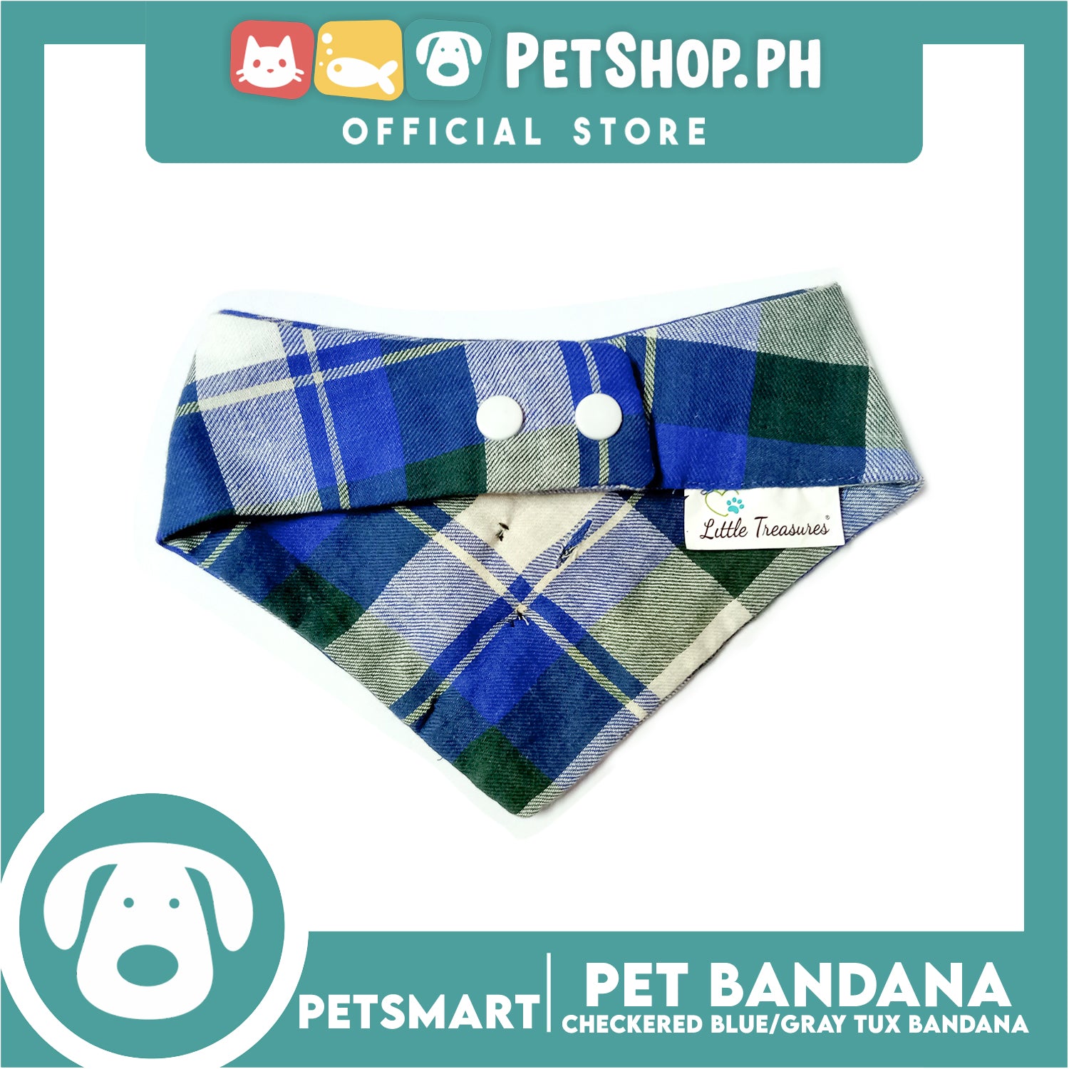Pet Bandana Collar Scarf Checkered Blue Gray Tux Bandana DB-CTN32M (Medium) Perfect Fit For Dogs And Cats, Breathable, Soft Lightweight, Fashionable Pet Bandana