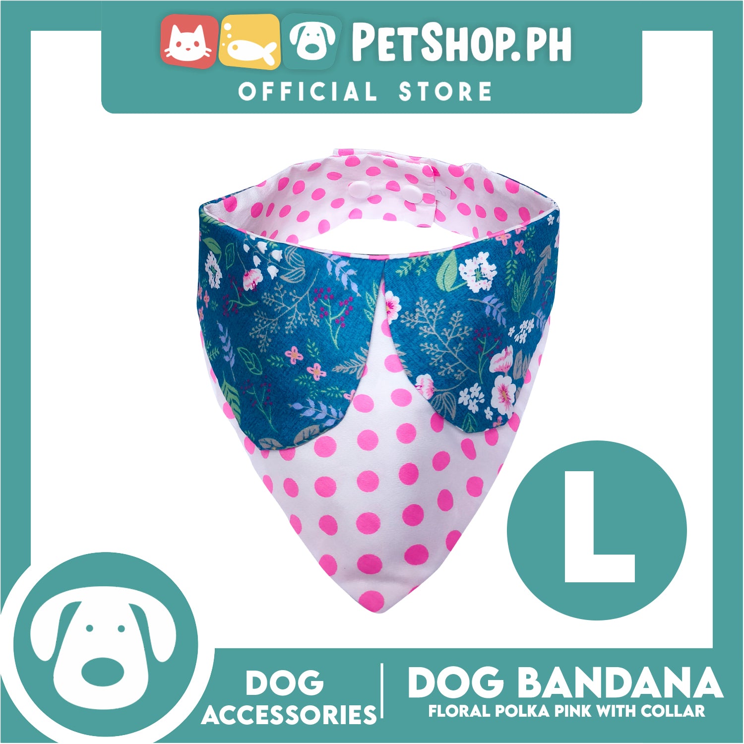 Pet Bandana Collar Scarf Reversible Pink Polka Dots With Blue Floral Designs DB-CTN26L (Large) Perfect Fit For Dogs And Cats, Breathable, Soft Lightweight Pet Bandana