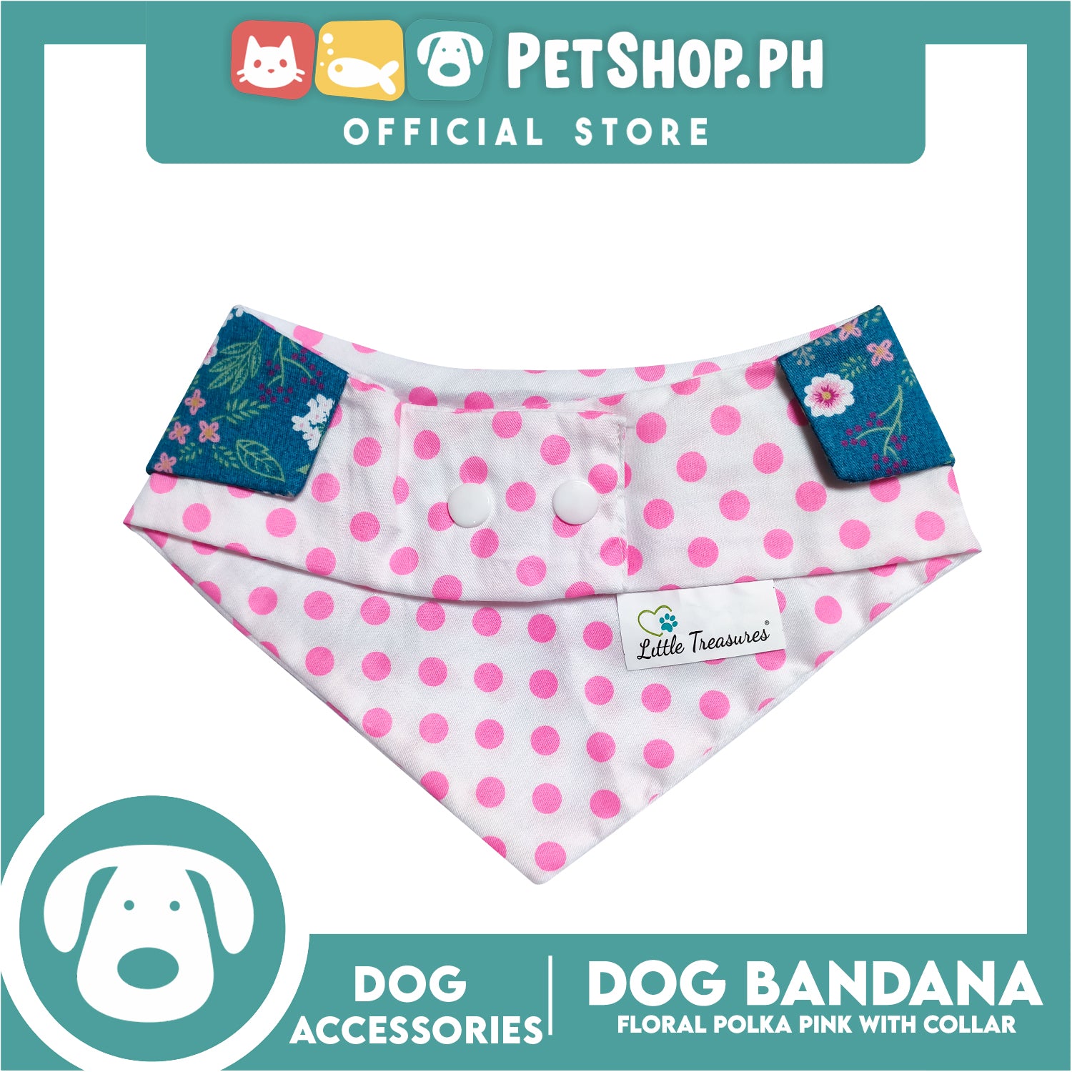 Pet Bandana Collar Scarf Reversible Pink Polka Dots With Blue Floral Designs DB-CTN26XS (XS) Perfect Fit For Dogs And Cats, Breathable, Soft Lightweight Pet Bandana