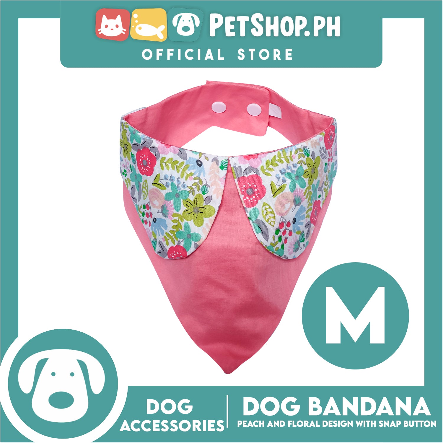 Pet Bandana Collar Scarf Reversible Tangerine With Pink Floral Collar Designs DB-CTN27M (Medium) Perfect Fit For Dogs And Cats, Breathable, Soft Lightweight Pet Bandana