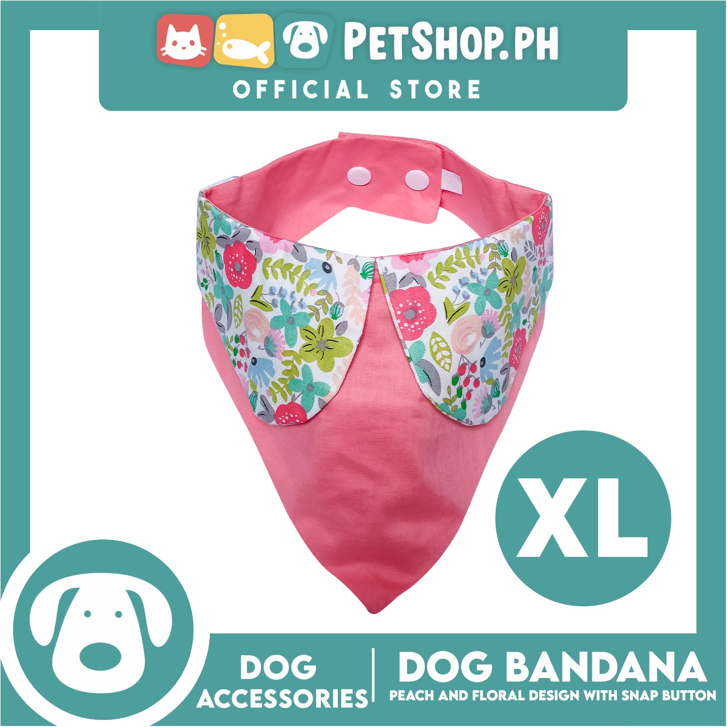 Pet Bandana Collar Scarf Reversible Tangerine With Pink Floral Collar Designs DB-CTN27XL (XL) Perfect Fit For Dogs And Cats, Breathable, Soft Lightweight Pet Bandana