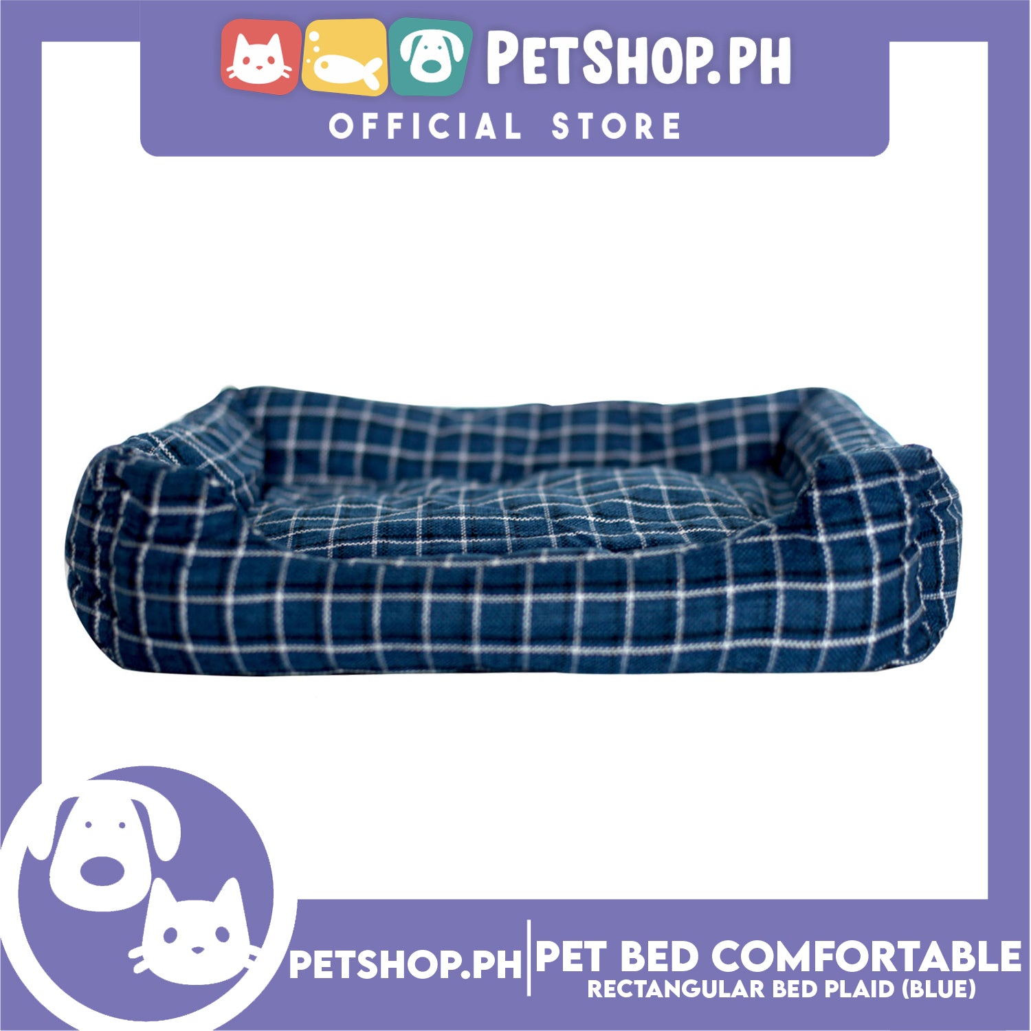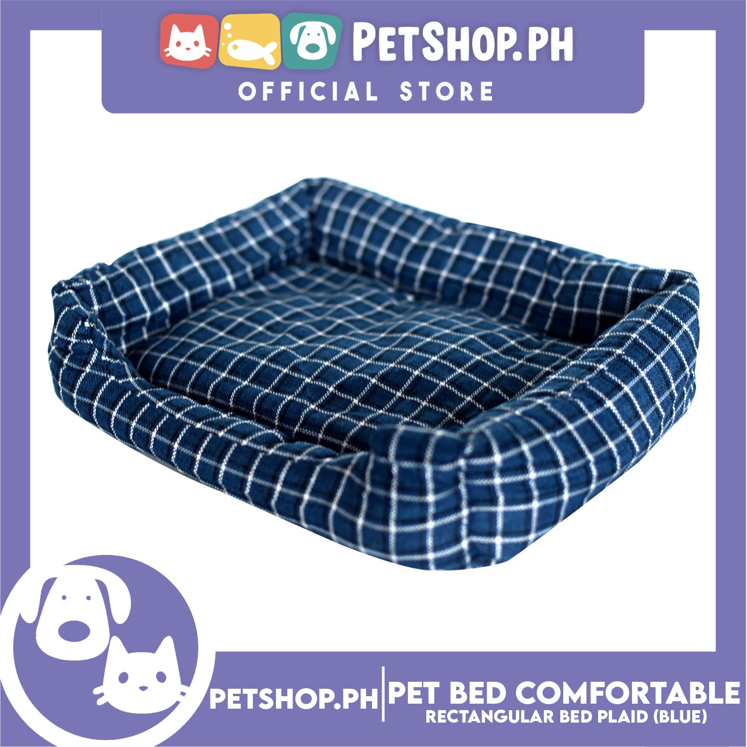 Pet Bed Comfortable Rectangular Pet Bed Plaid Design 50x41x10cm Medium for Dogs & Cats (Blue)