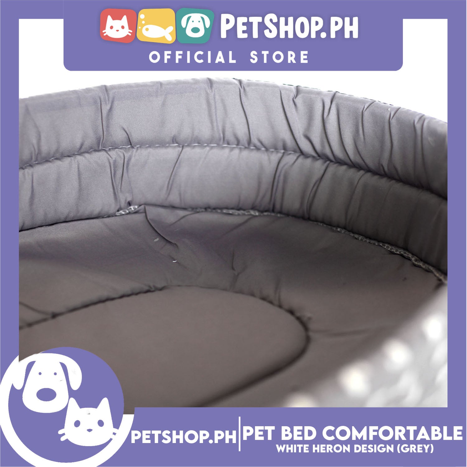 Pet Bed Comfortable Sleeping Bed with White Heron Design 50x40x12cm for Dogs & Cats Grey
