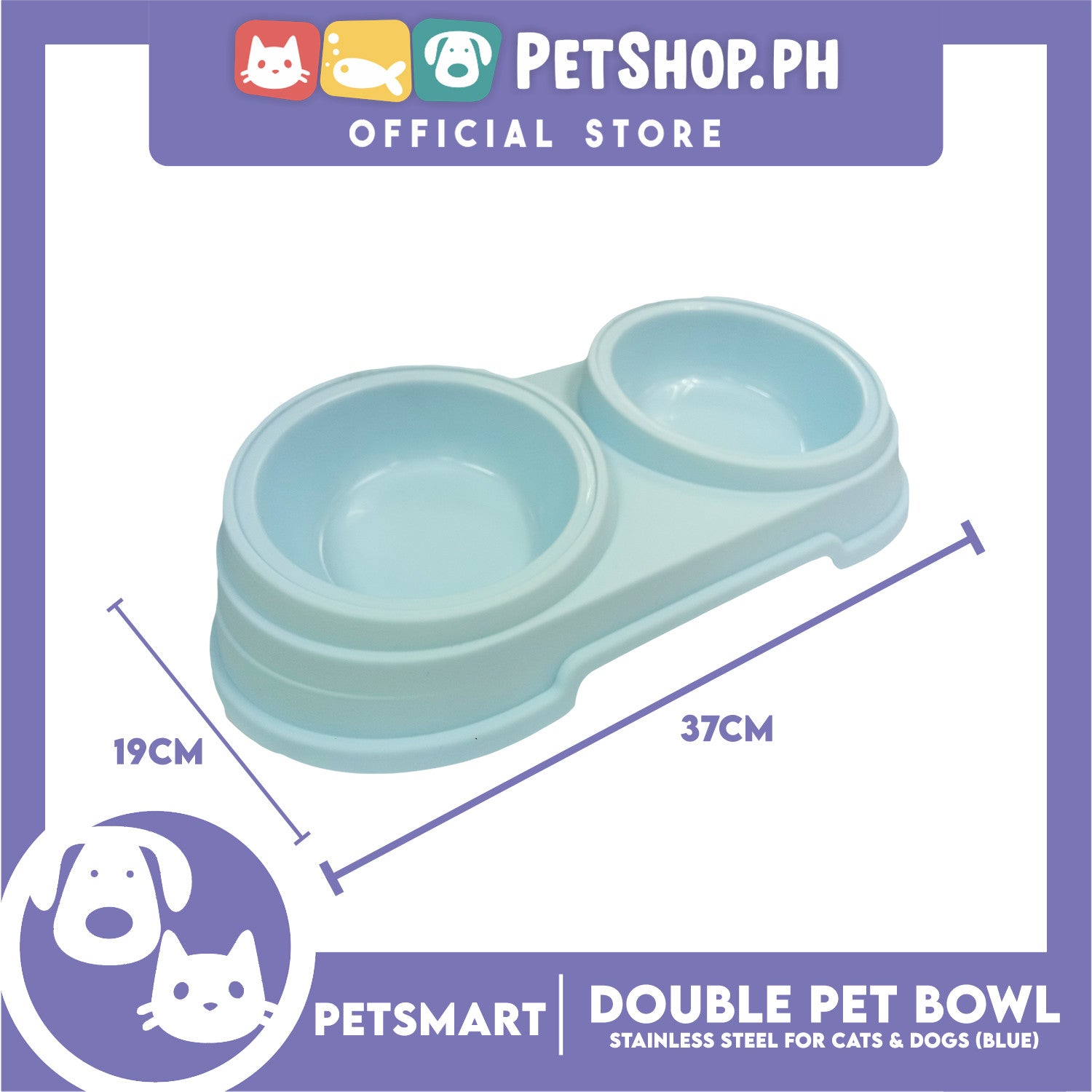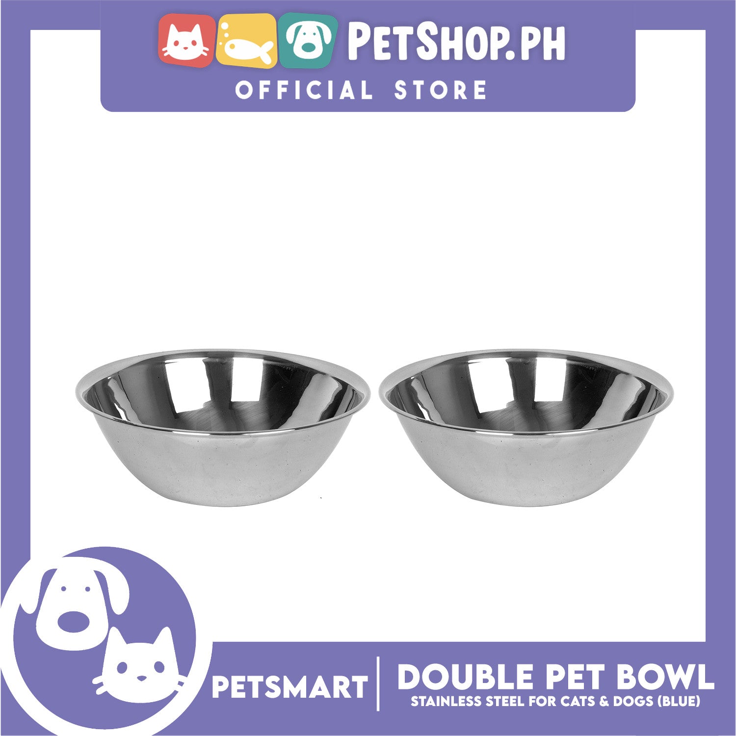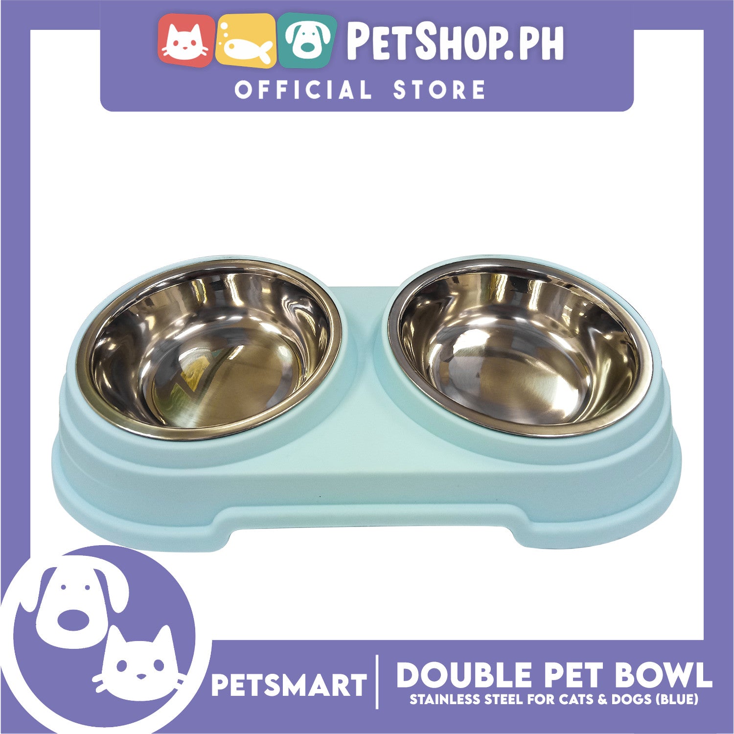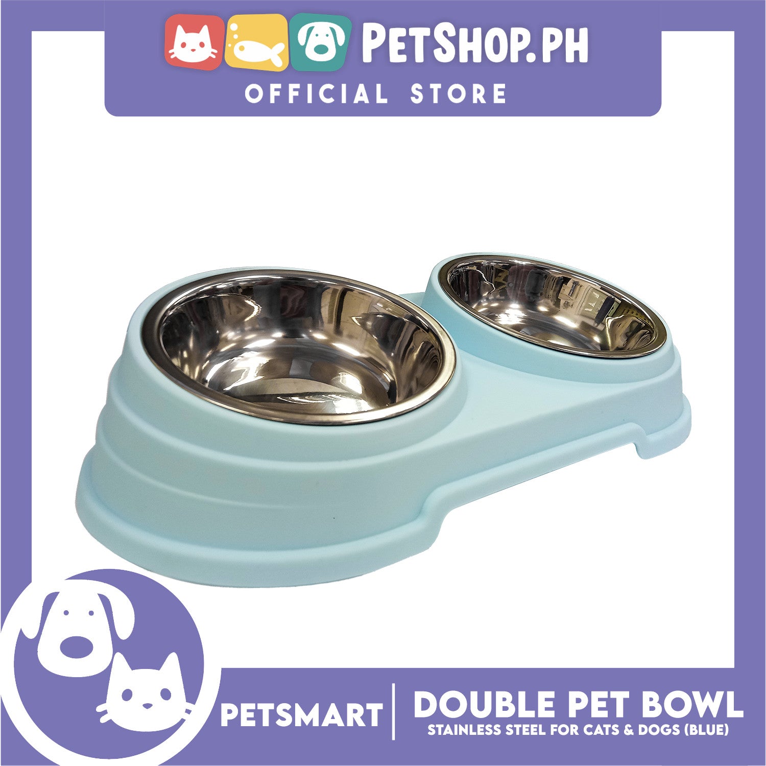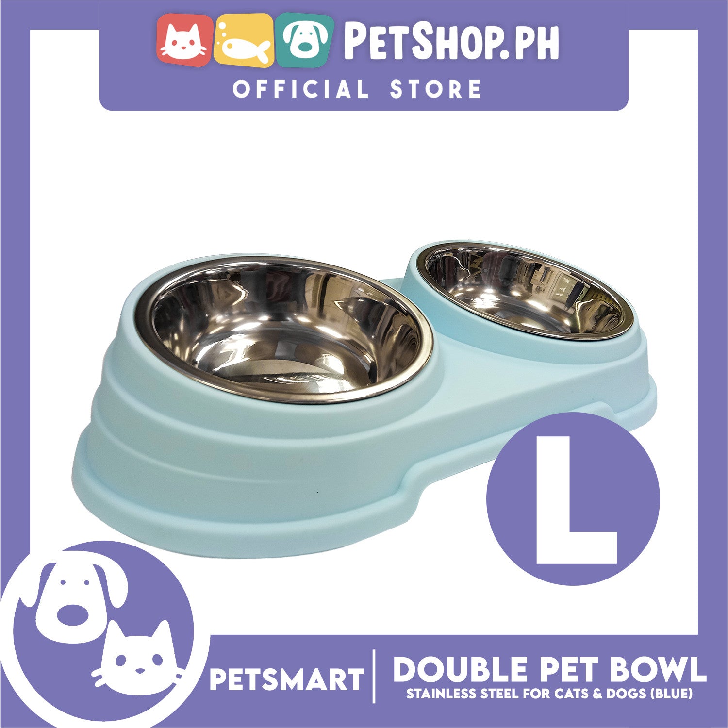 Pet Double Bowl Stainless Steel for Cats and Dogs, Blue Color (Large)