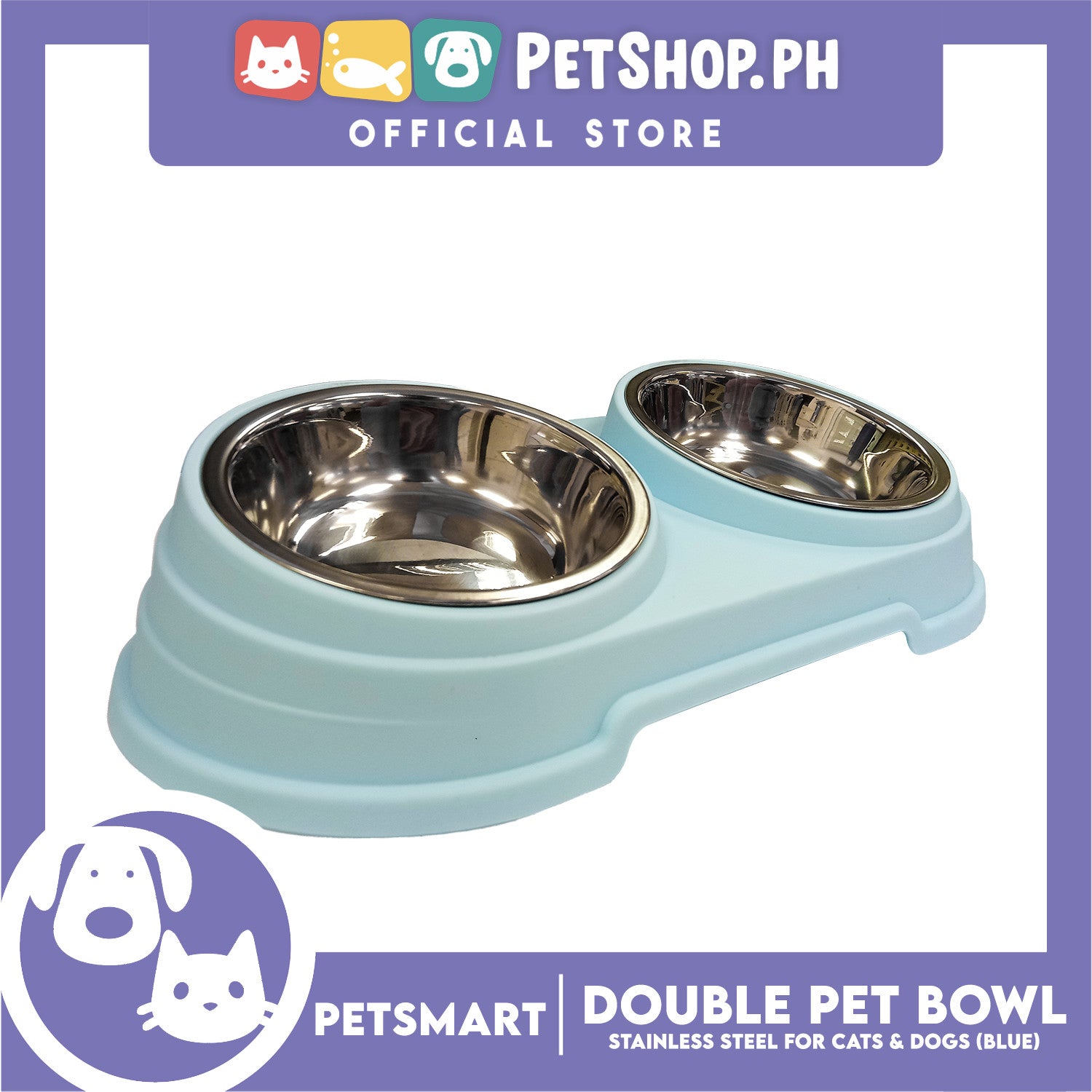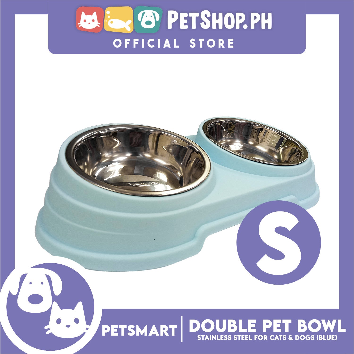 Pet Double Bowl Stainless Steel for Cats and Dogs, Blue Color (Small)