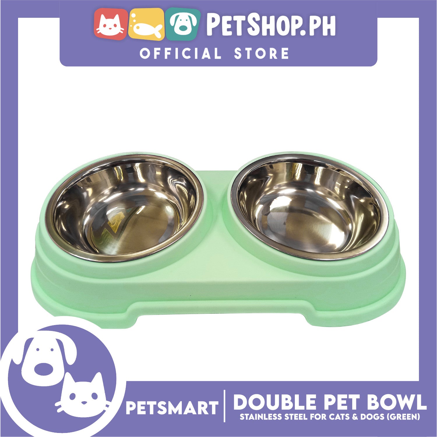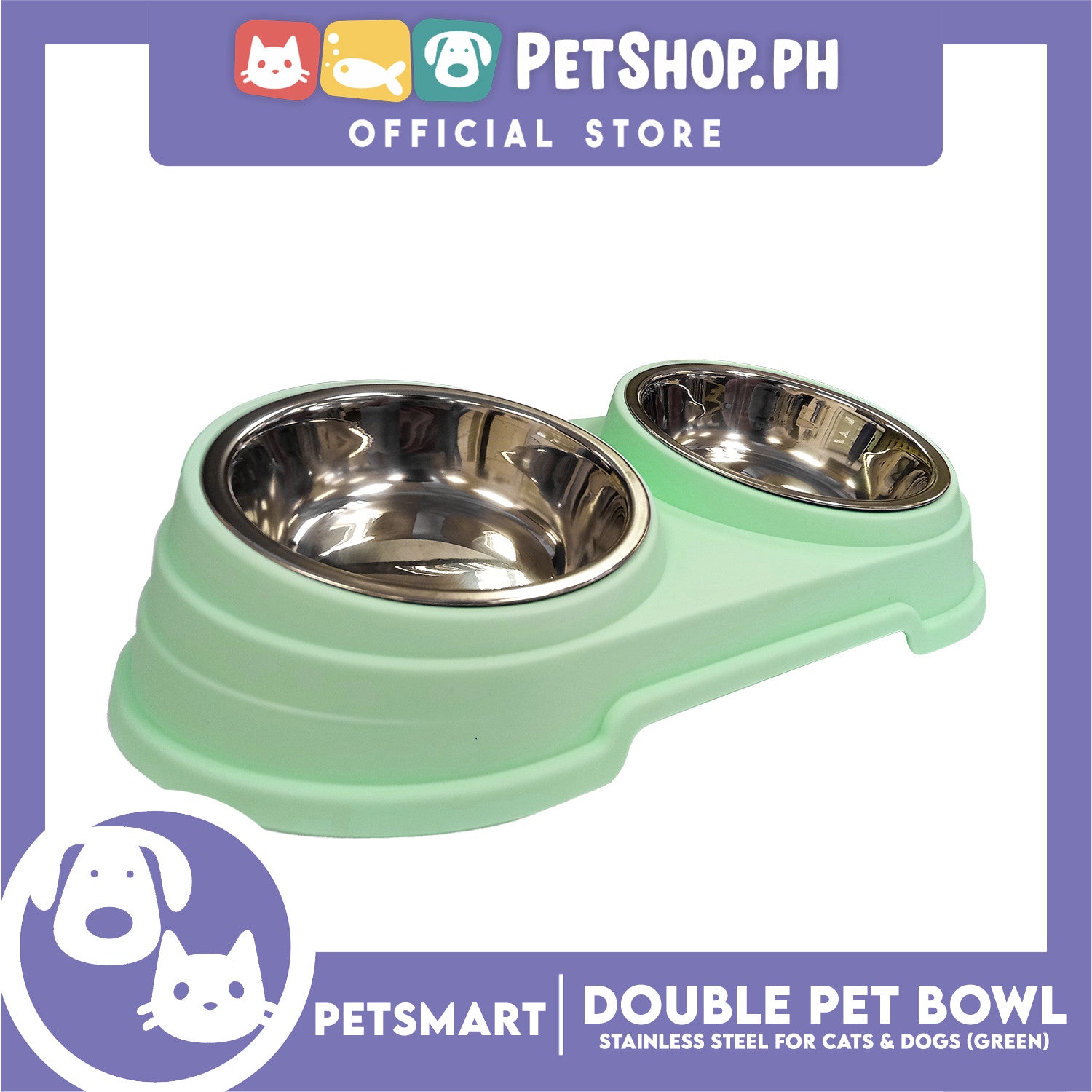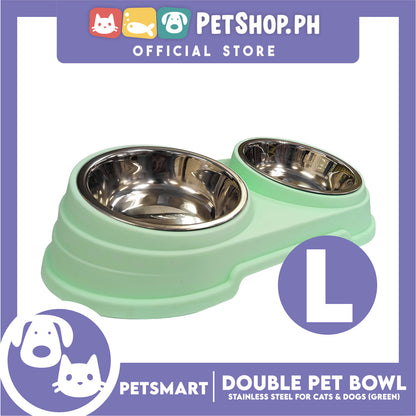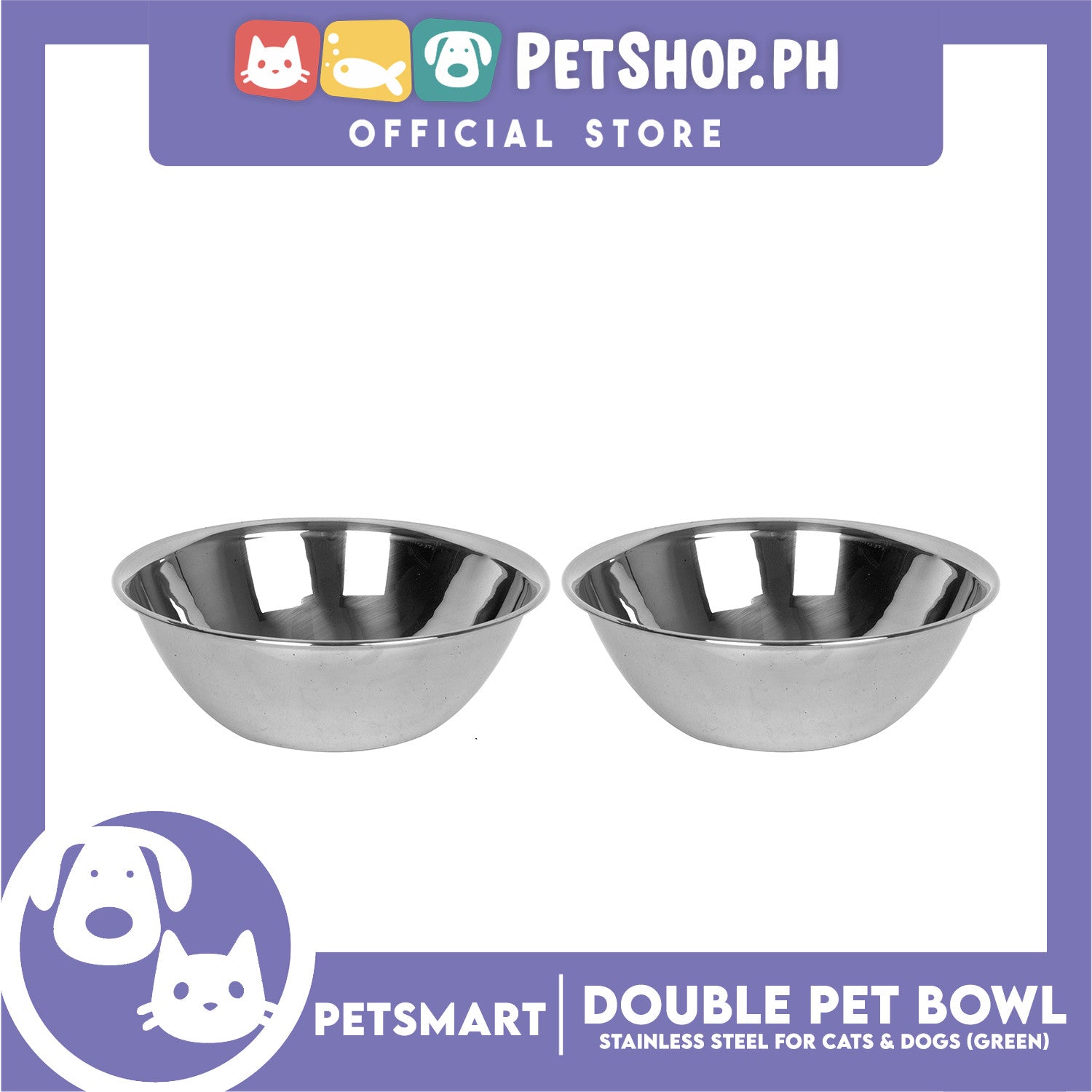 Pet Double Bowl Stainless Steel for Cats and Dogs, Green Color (Large)