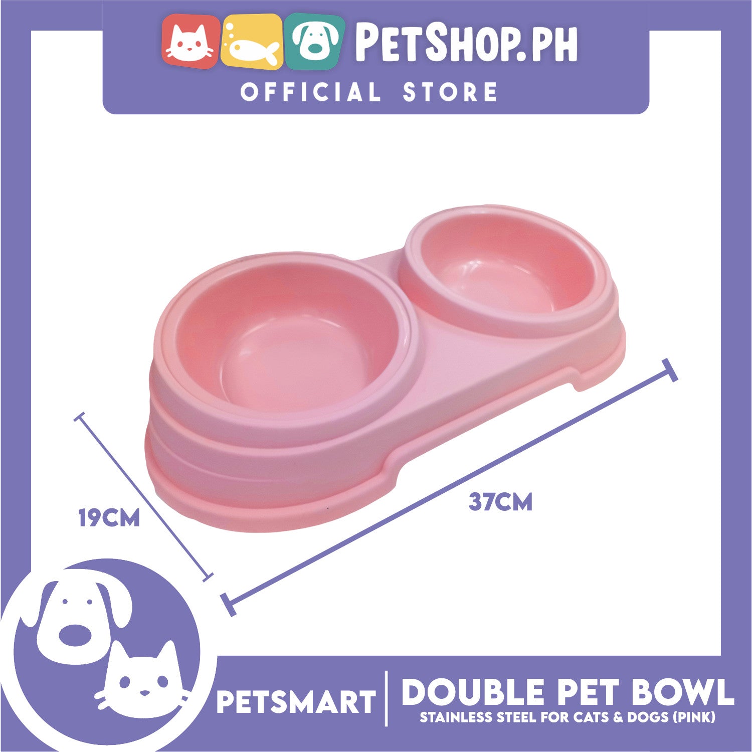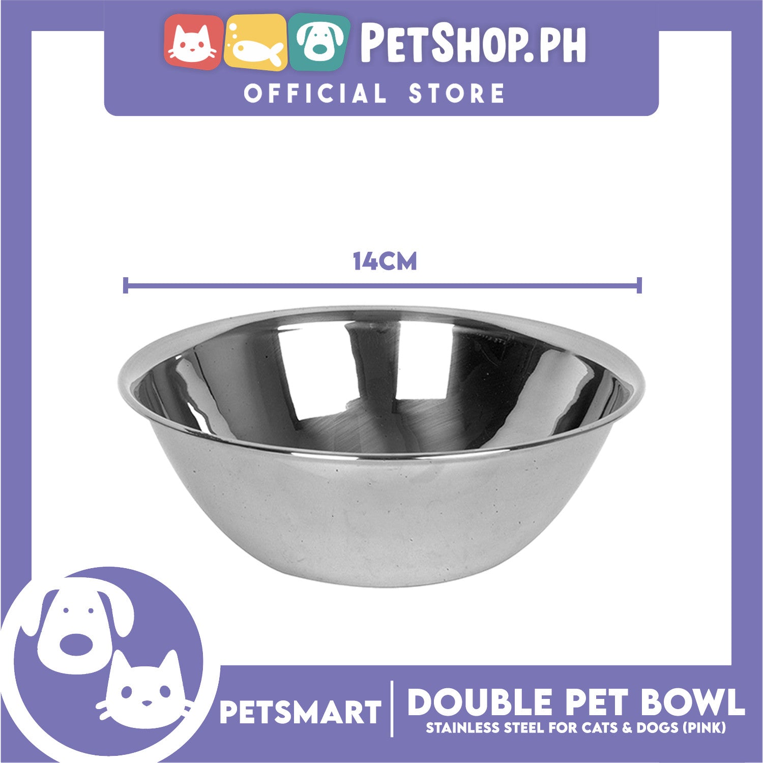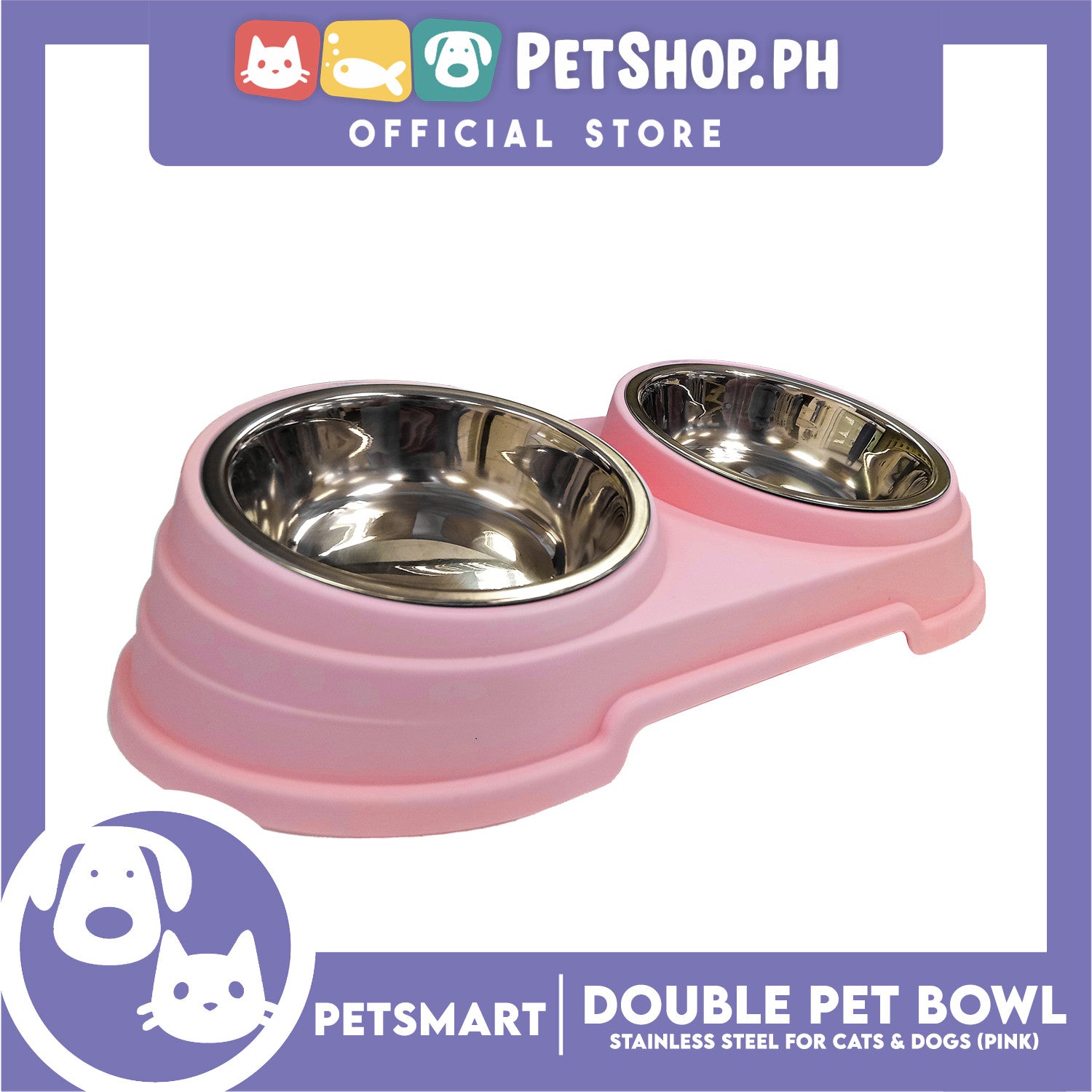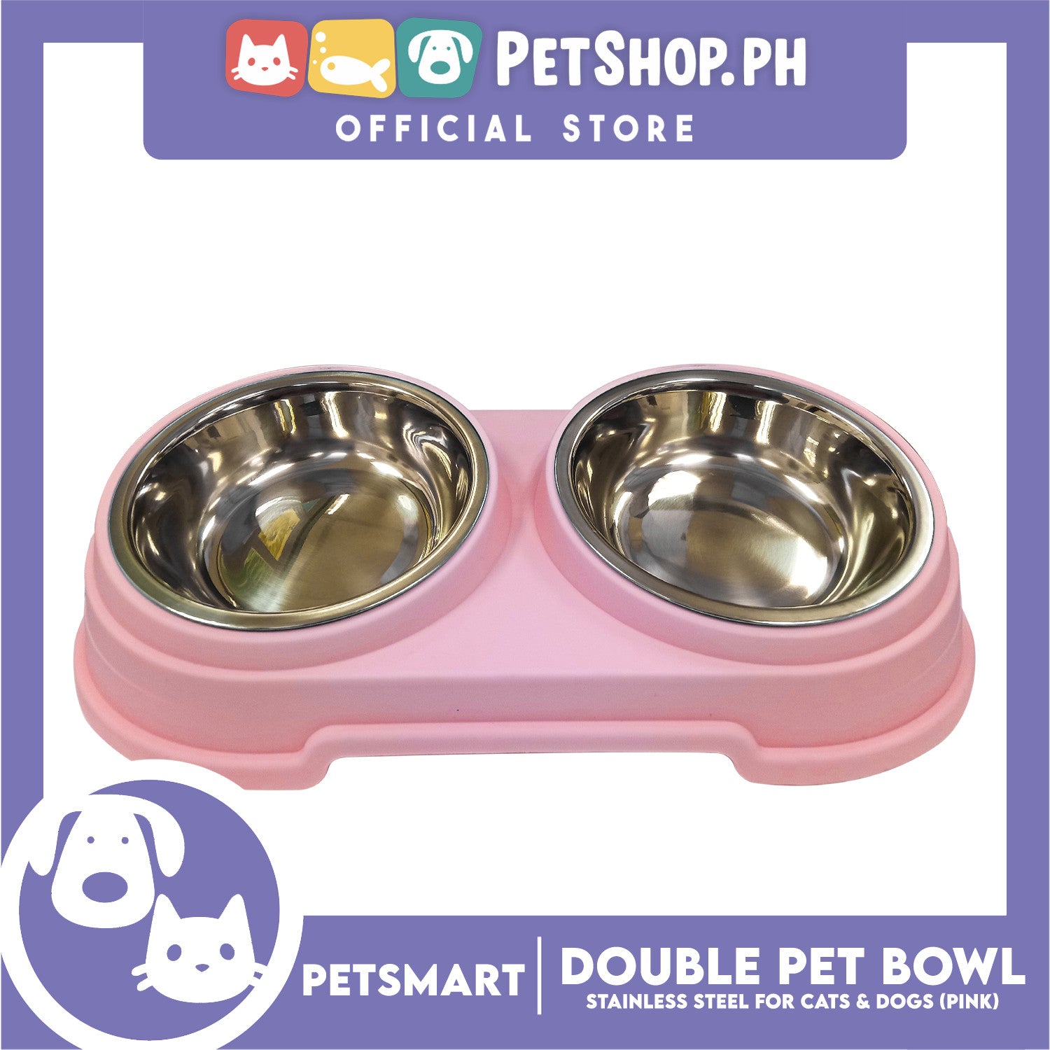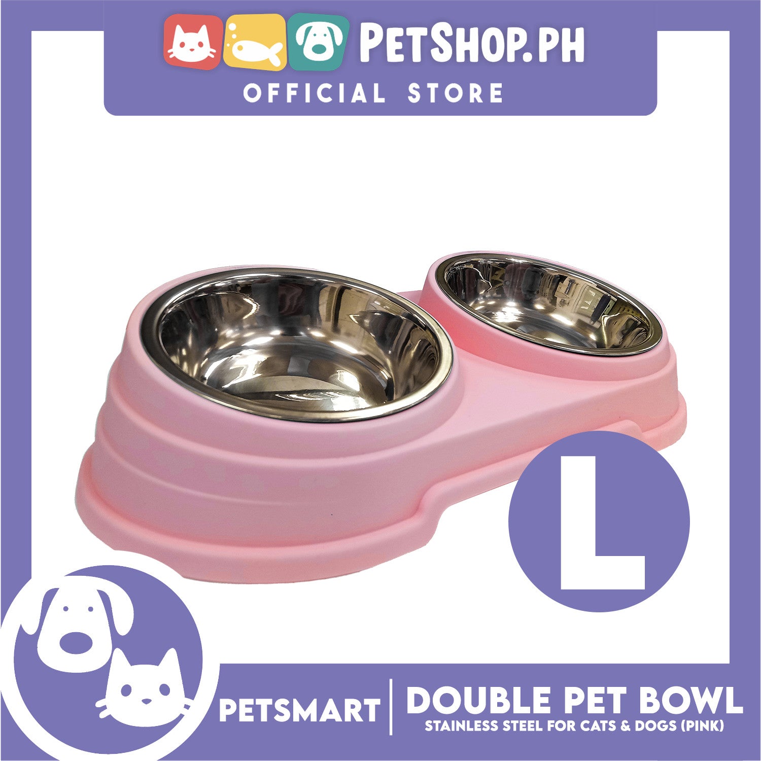 Pet Double Bowl Stainless Steel for Cats and Dogs, Pink Color (Large)