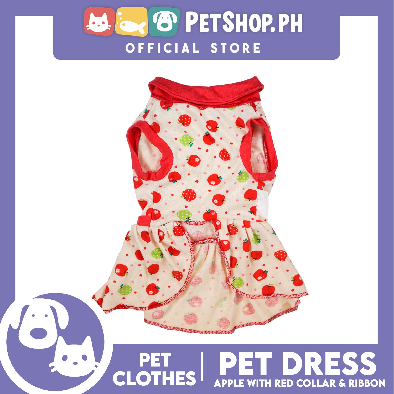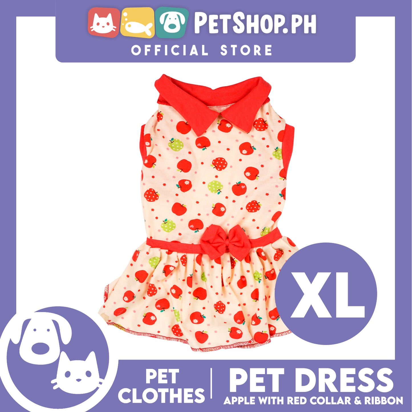 Pet Dress Apple with Red Collar and Ribbon Pet Clothes (Extra Large) Perfect Fit for Dogs and Cats