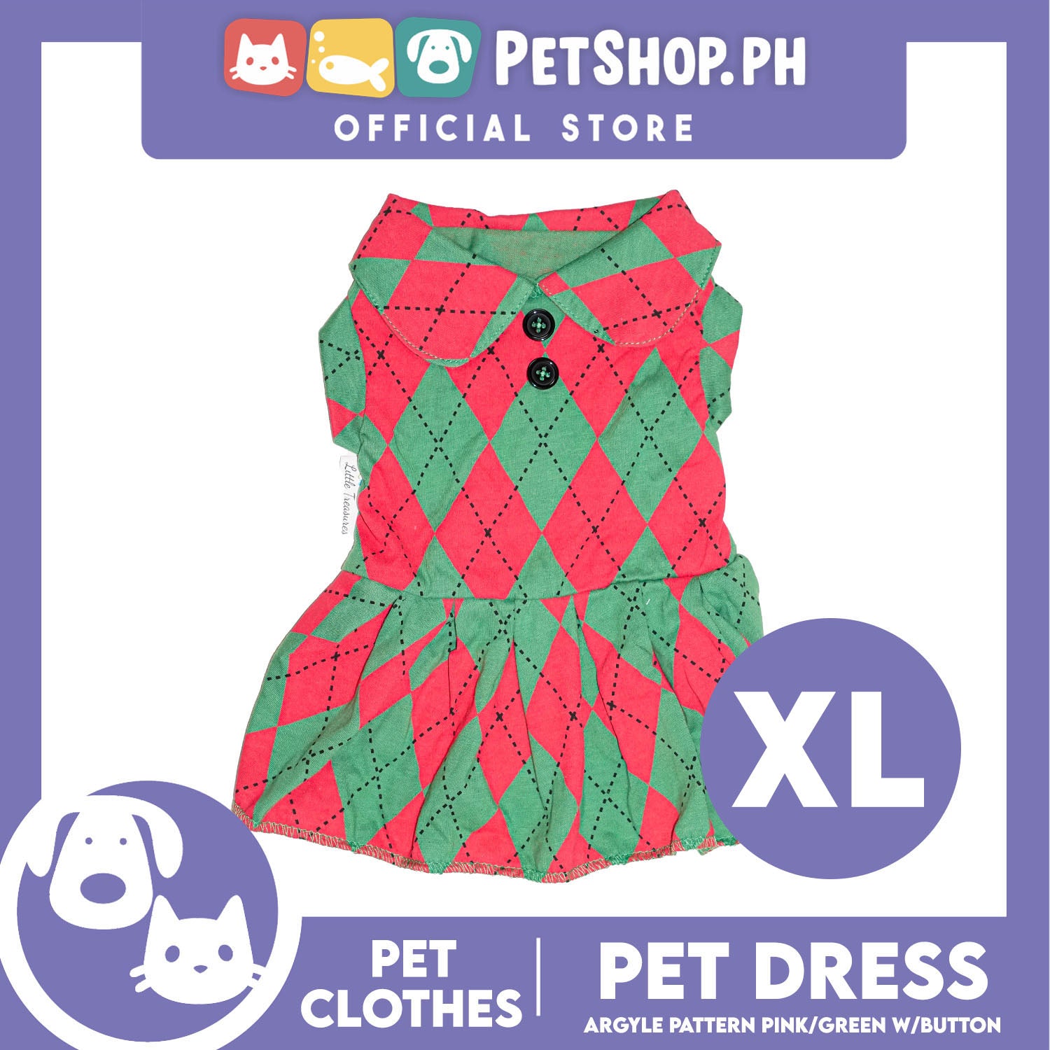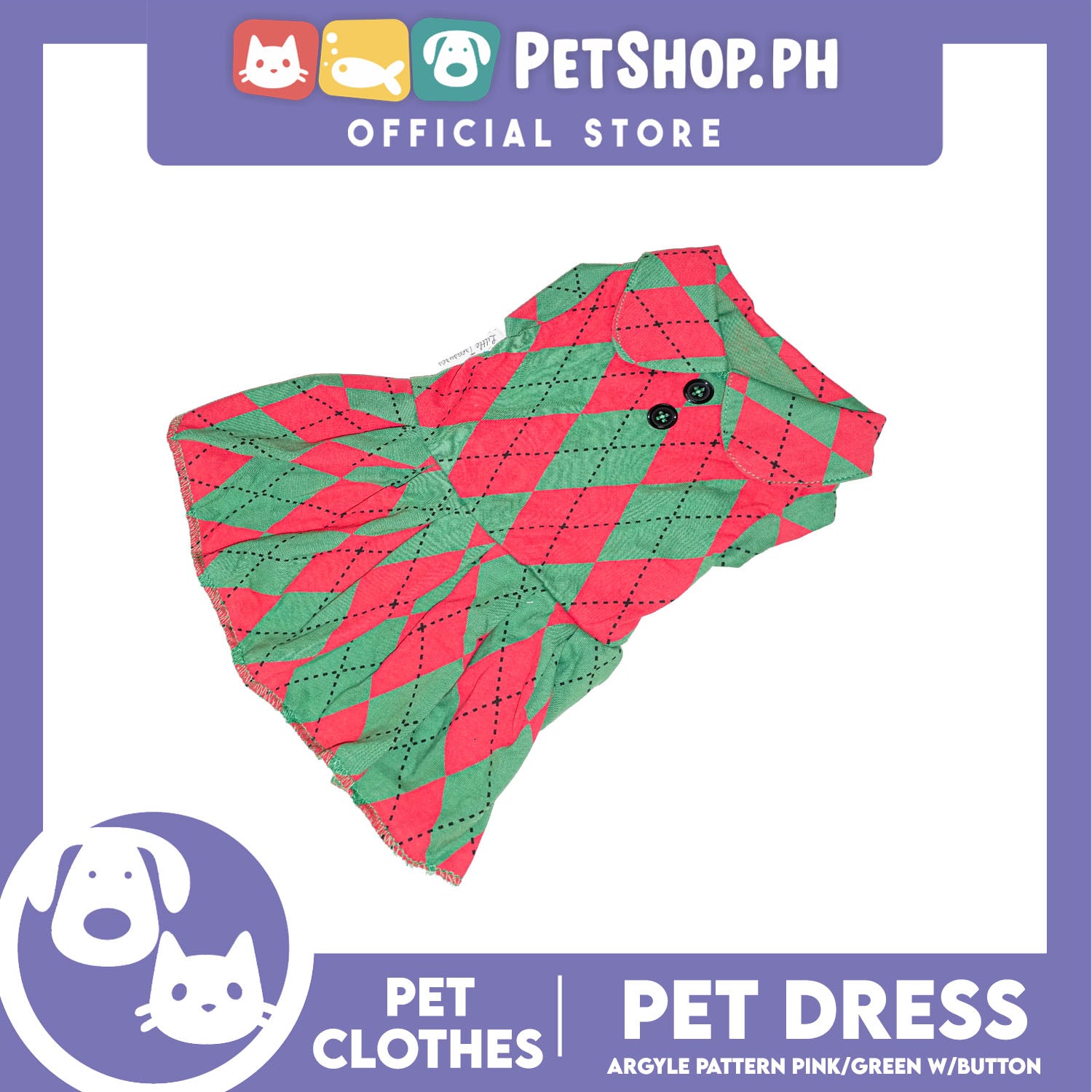 Pet Dress Argyle Pink/Green with Button Dress (Extra Large) Perfect Fit for Dogs and Cats