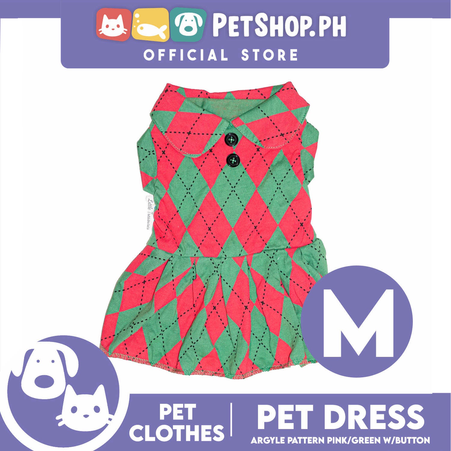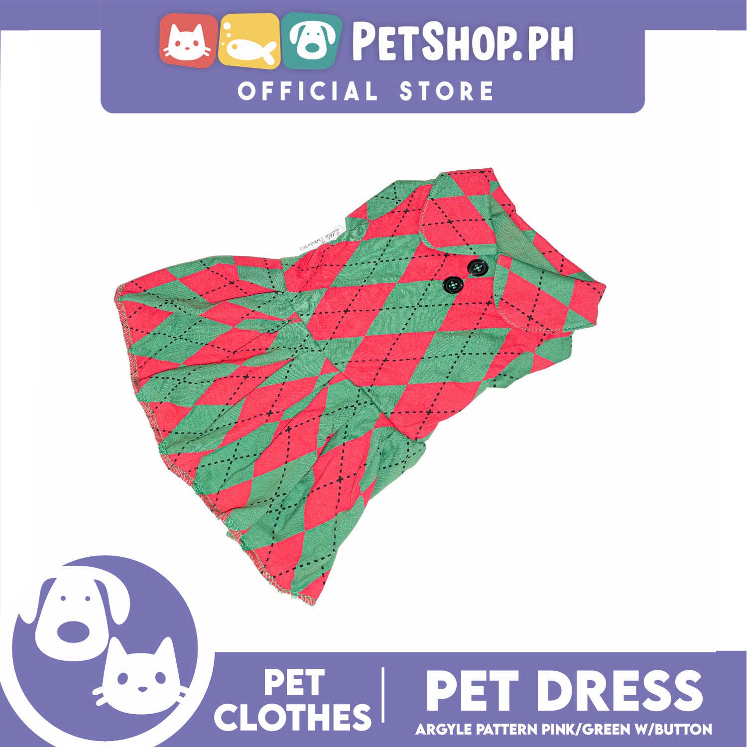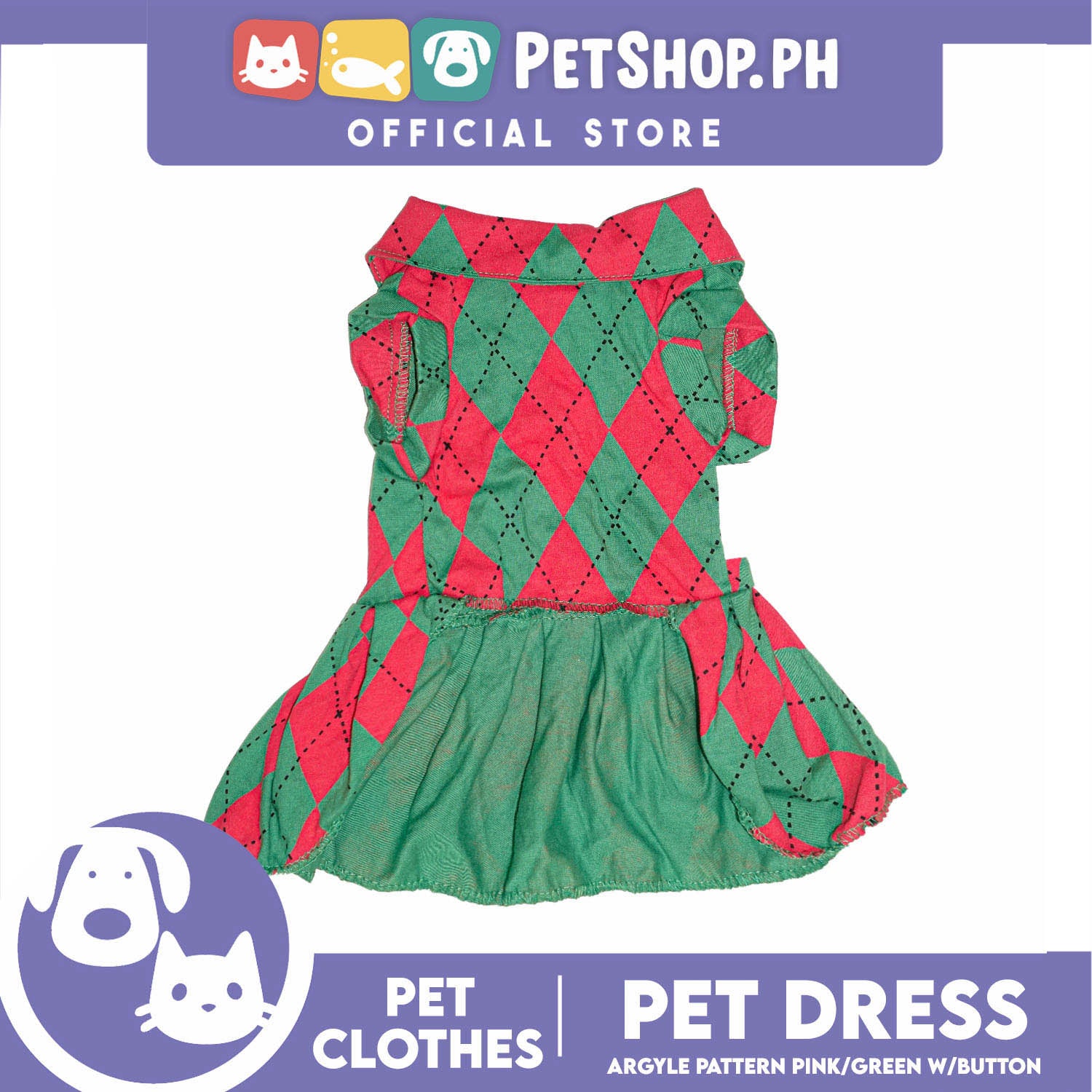 Pet Dress Argyle Pink/Green with Button Dress (Medium) Perfect Fit for Dogs and Cats