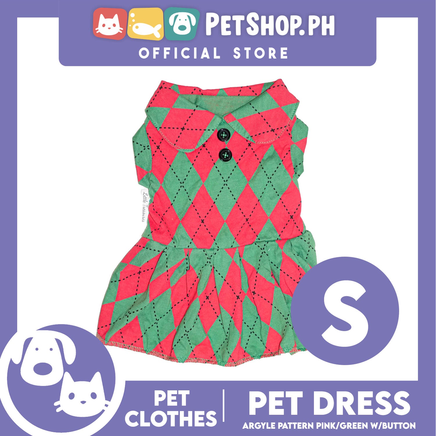 Pet Dress Argyle Pink/Green with Button Dress (Small) Perfect Fit for Dogs and Cats