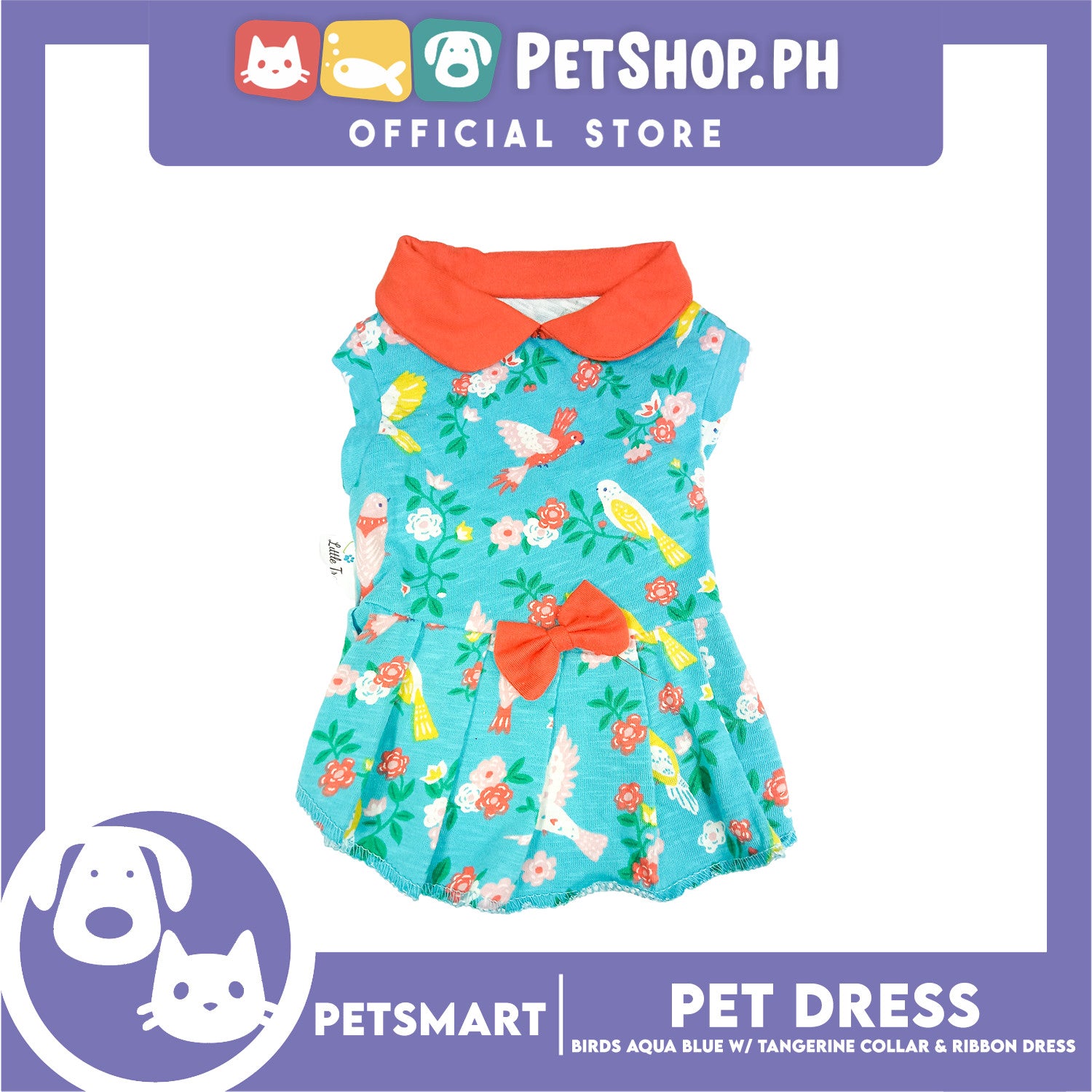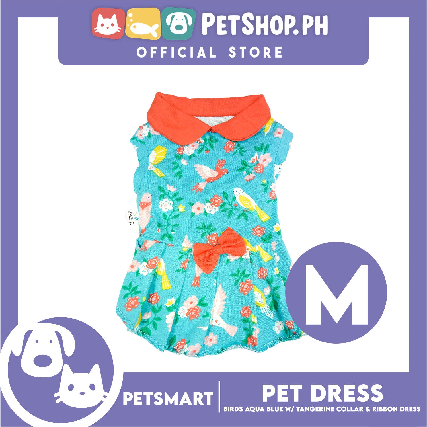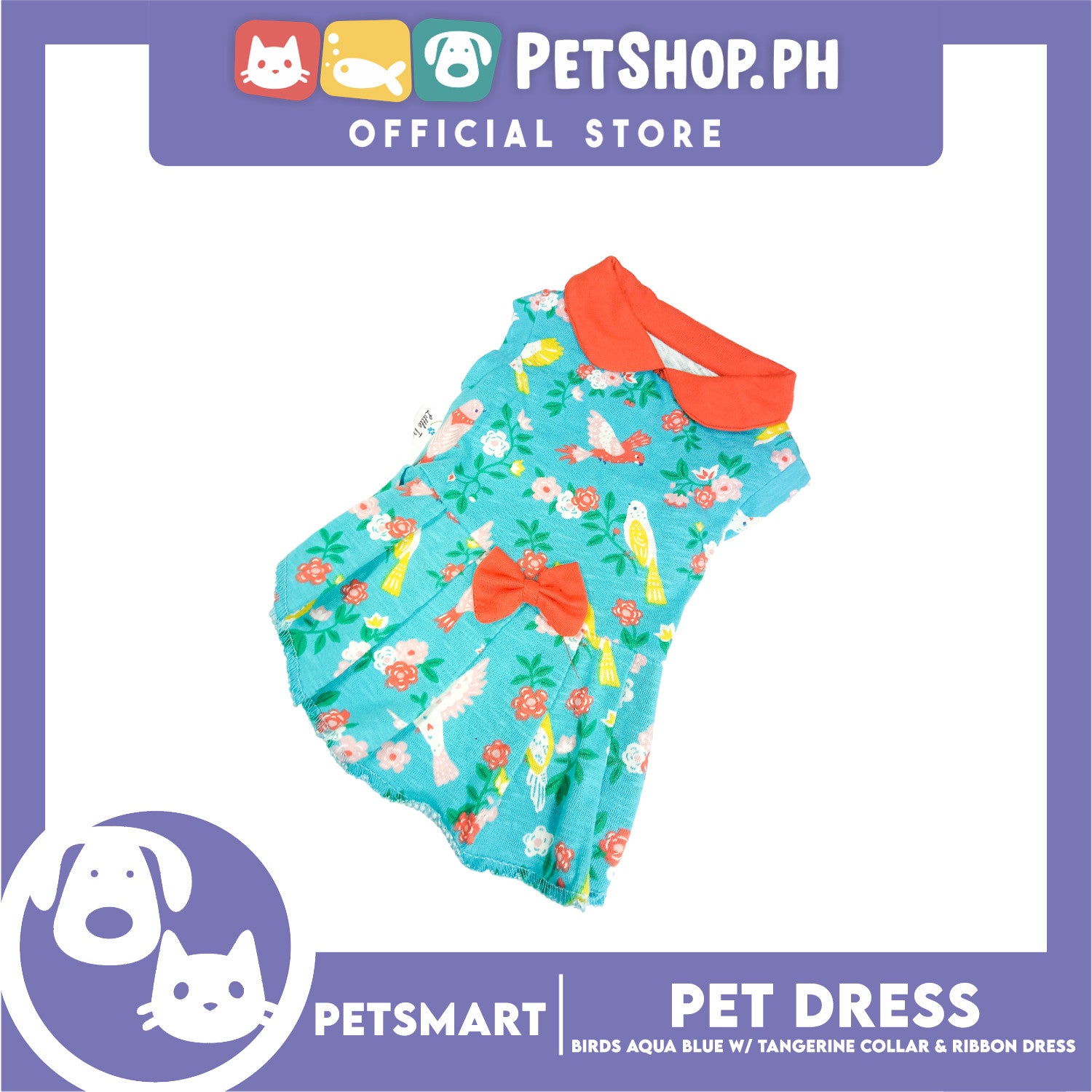 Pet Dress Birds Aqua Blue with Tangerine Collar and Ribbon (Medium) DG-CTN179M