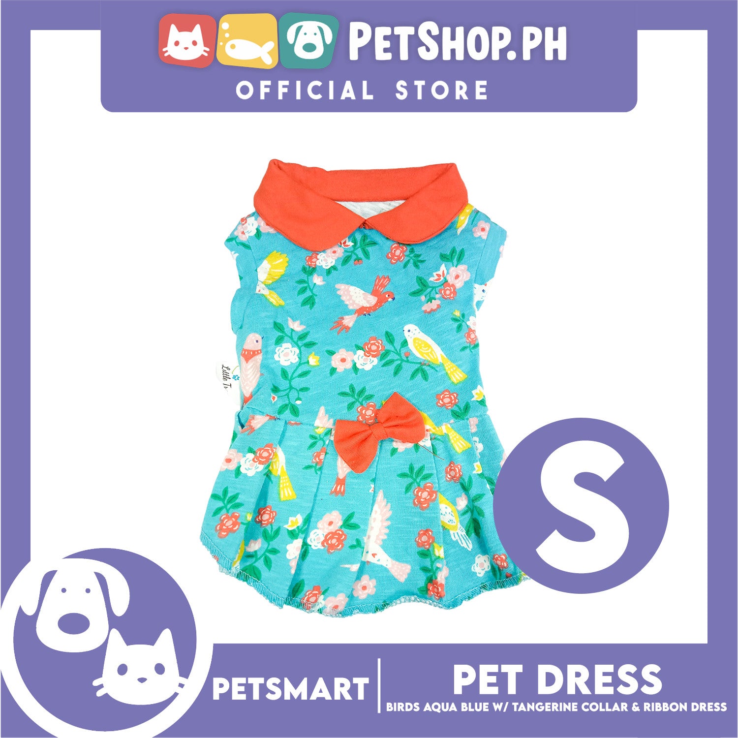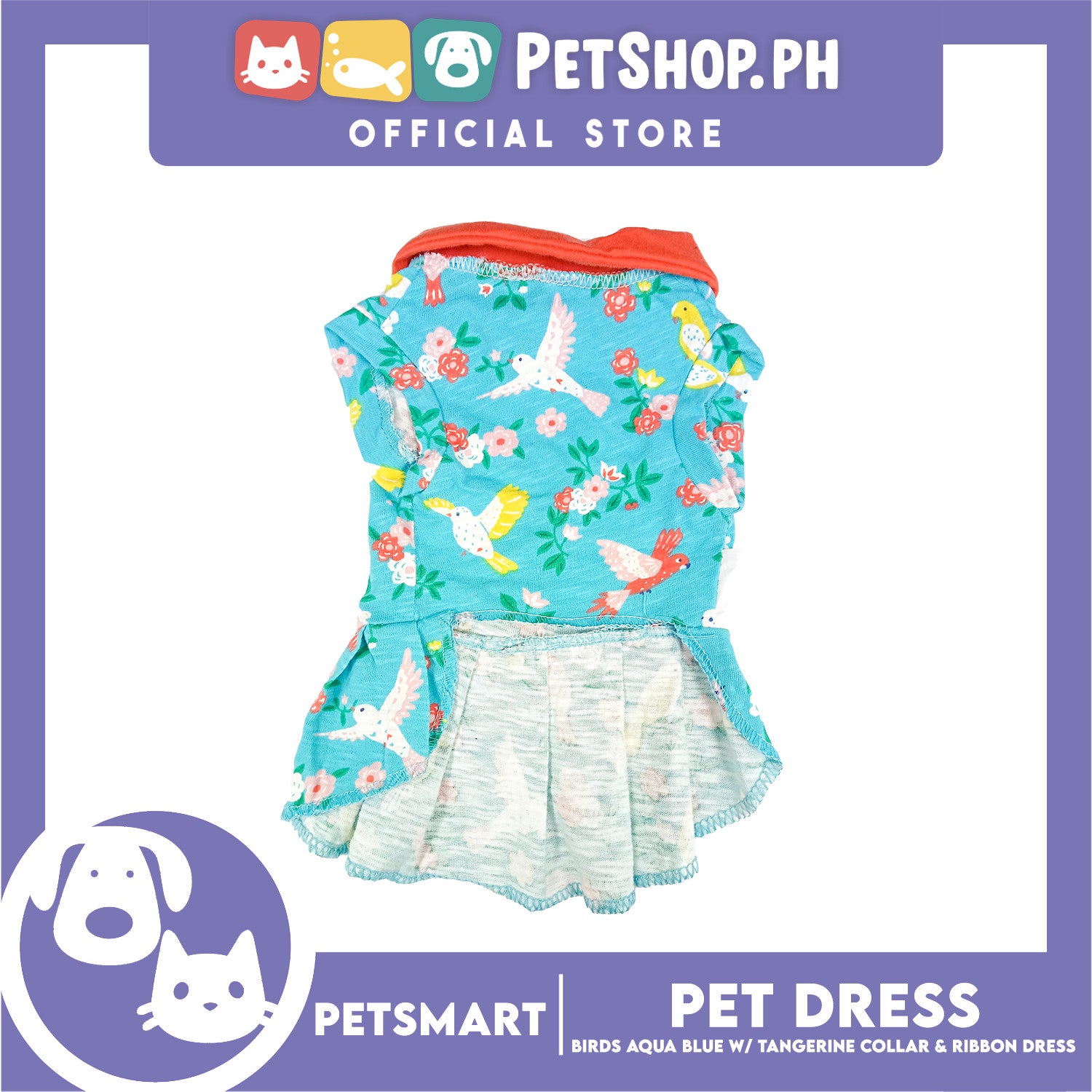 Pet Dress Birds Aqua Blue with Tangerine Collar and Ribbon (Small) DG-CTN179S