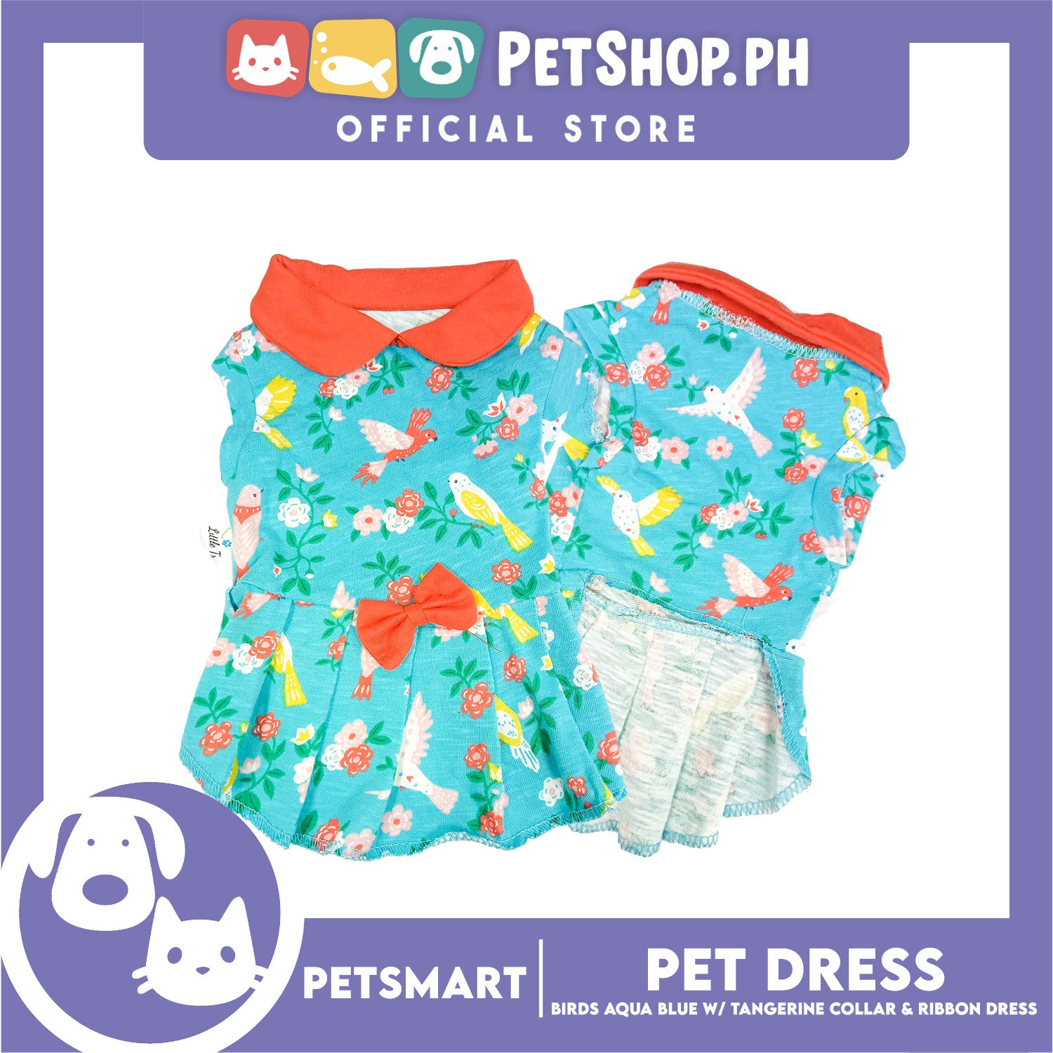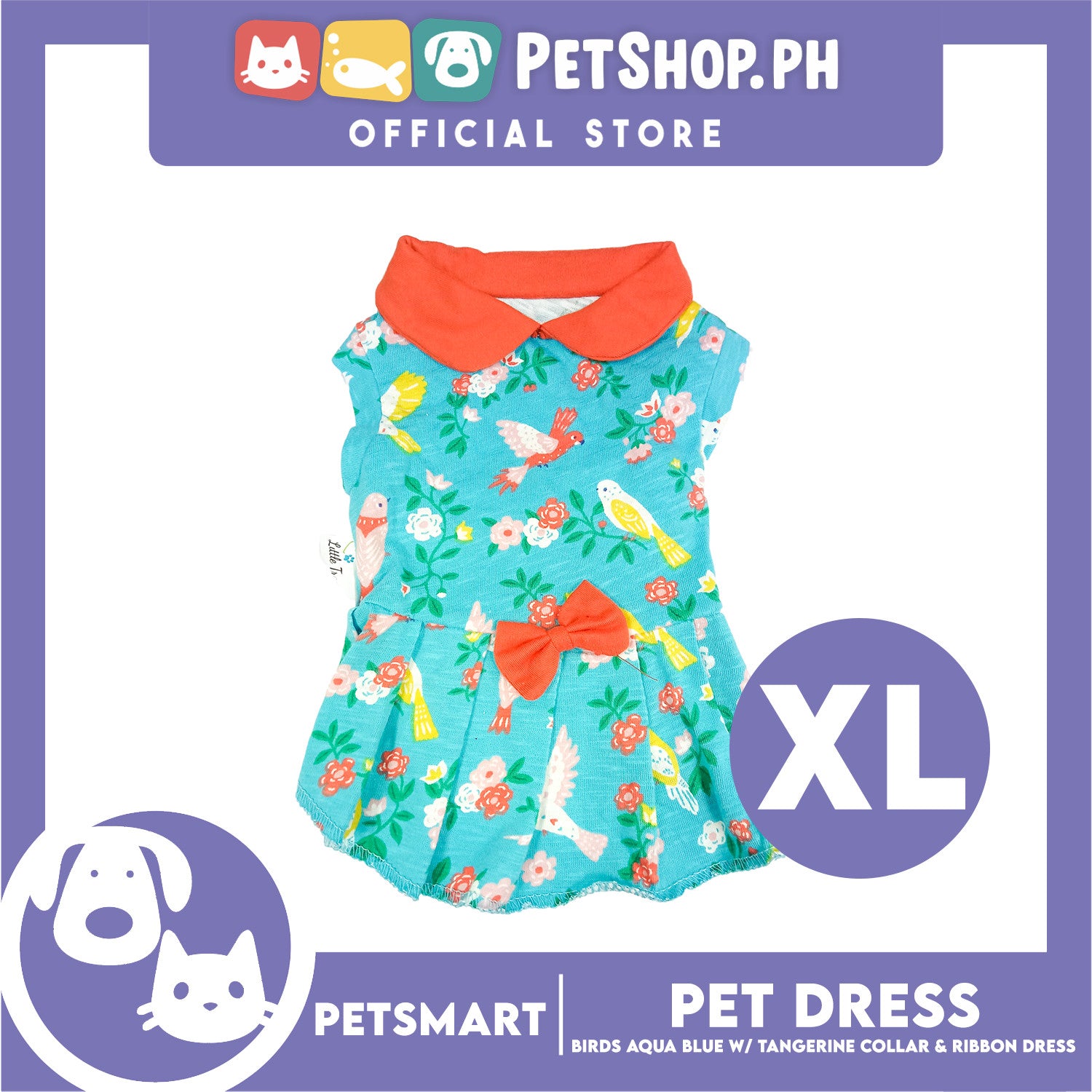 Pet Dress Birds Aqua Blue with Tangerine Collar and Ribbon (XL) DG-CTN179XL