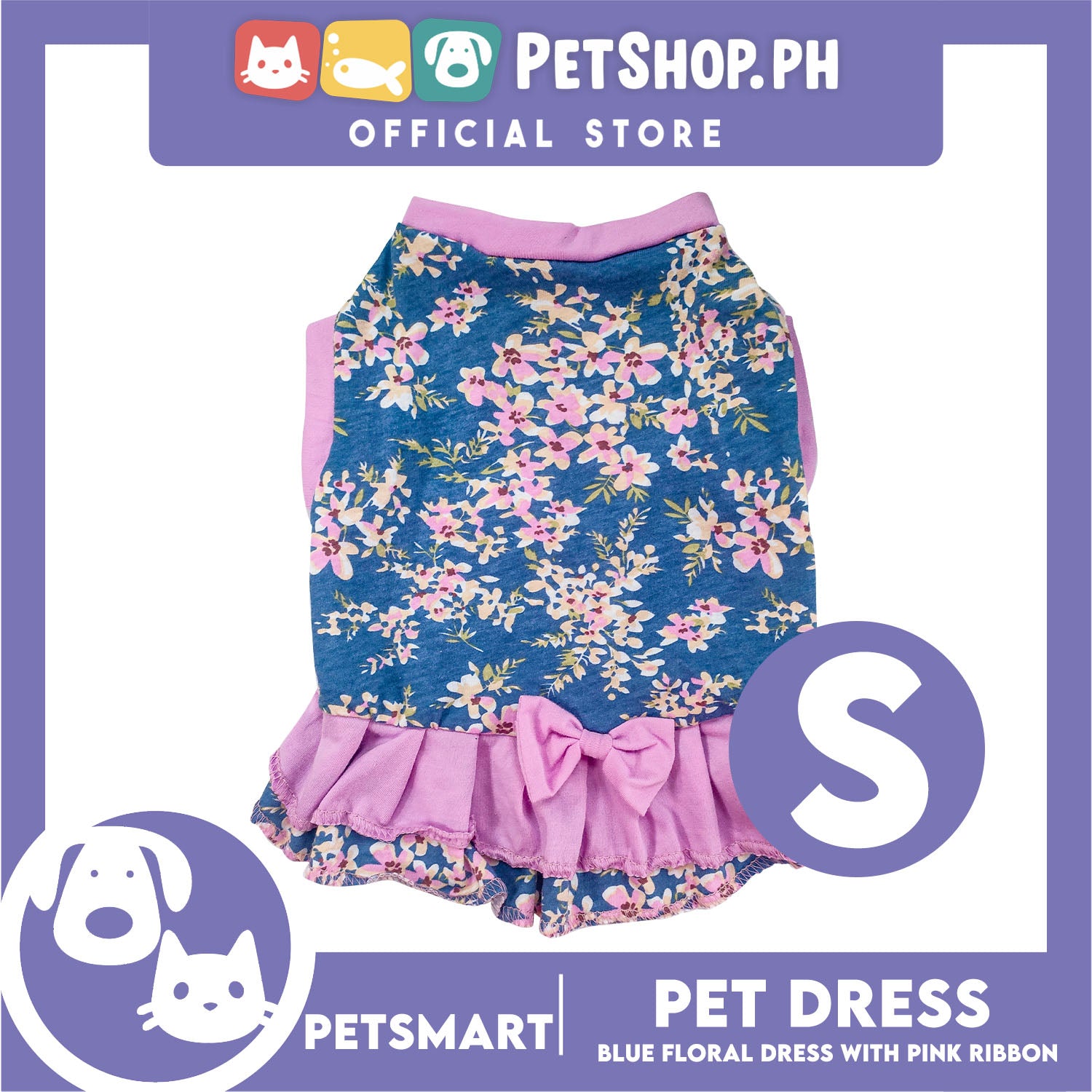 Pet Dress Blue Floral with Pink Ribbon Design DG-CTN153S (Small) Perfect Fit For Dogs And Cats