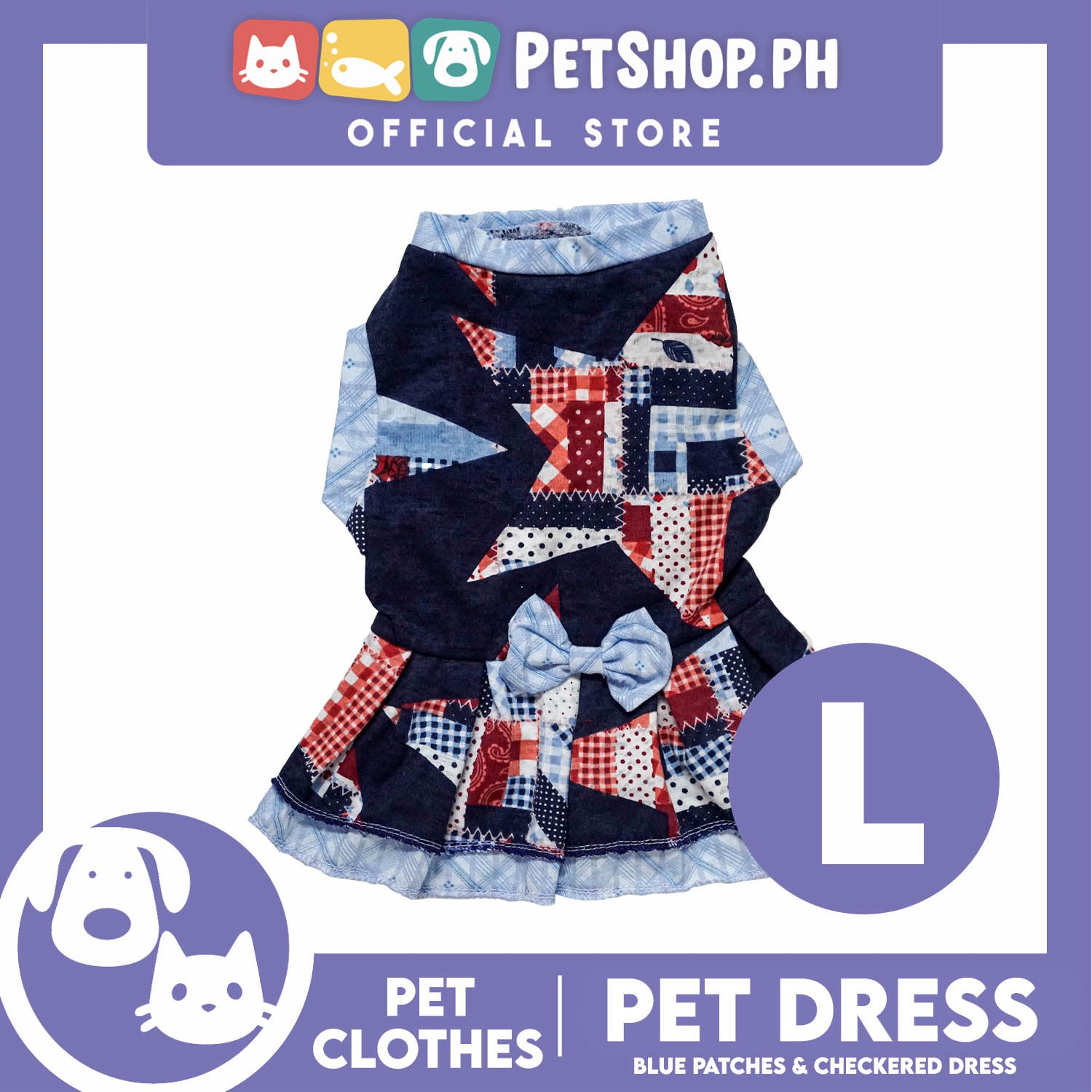 Pet Dress Blue Patches and Checkered Dress (Large) Perfect Fit for Dogs and Cats
