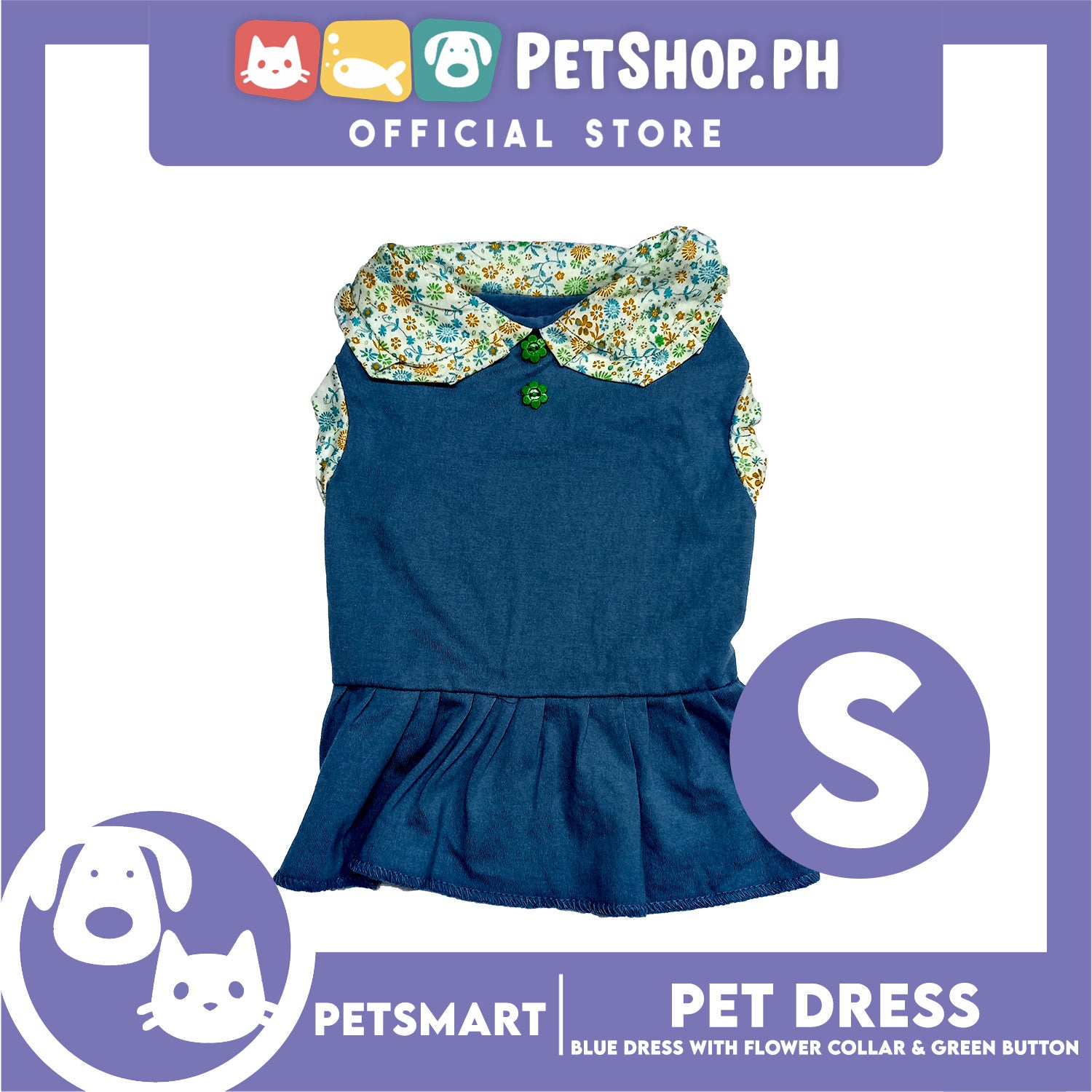 Pet Dress Blue with Flower Collar and Green Button Design DG-CTN185S (Small)