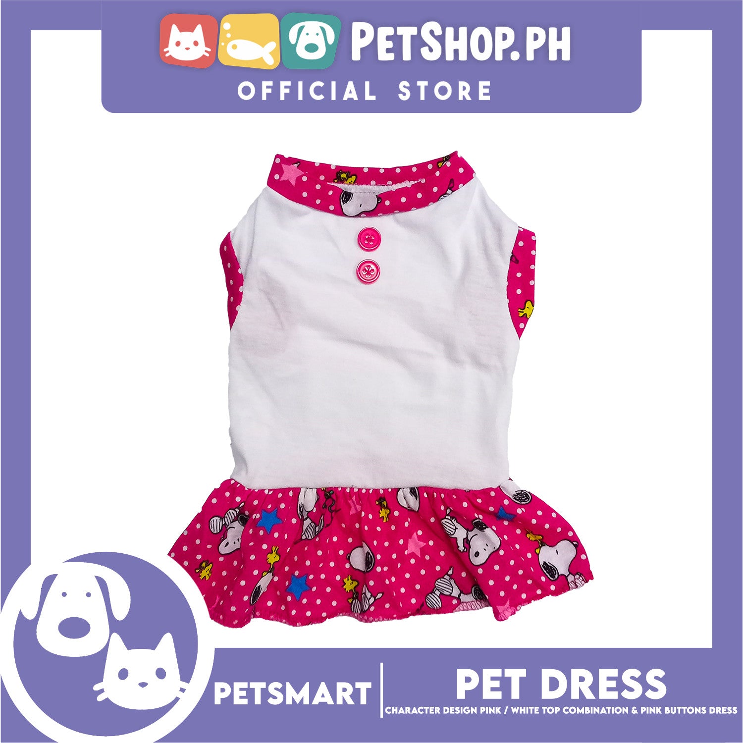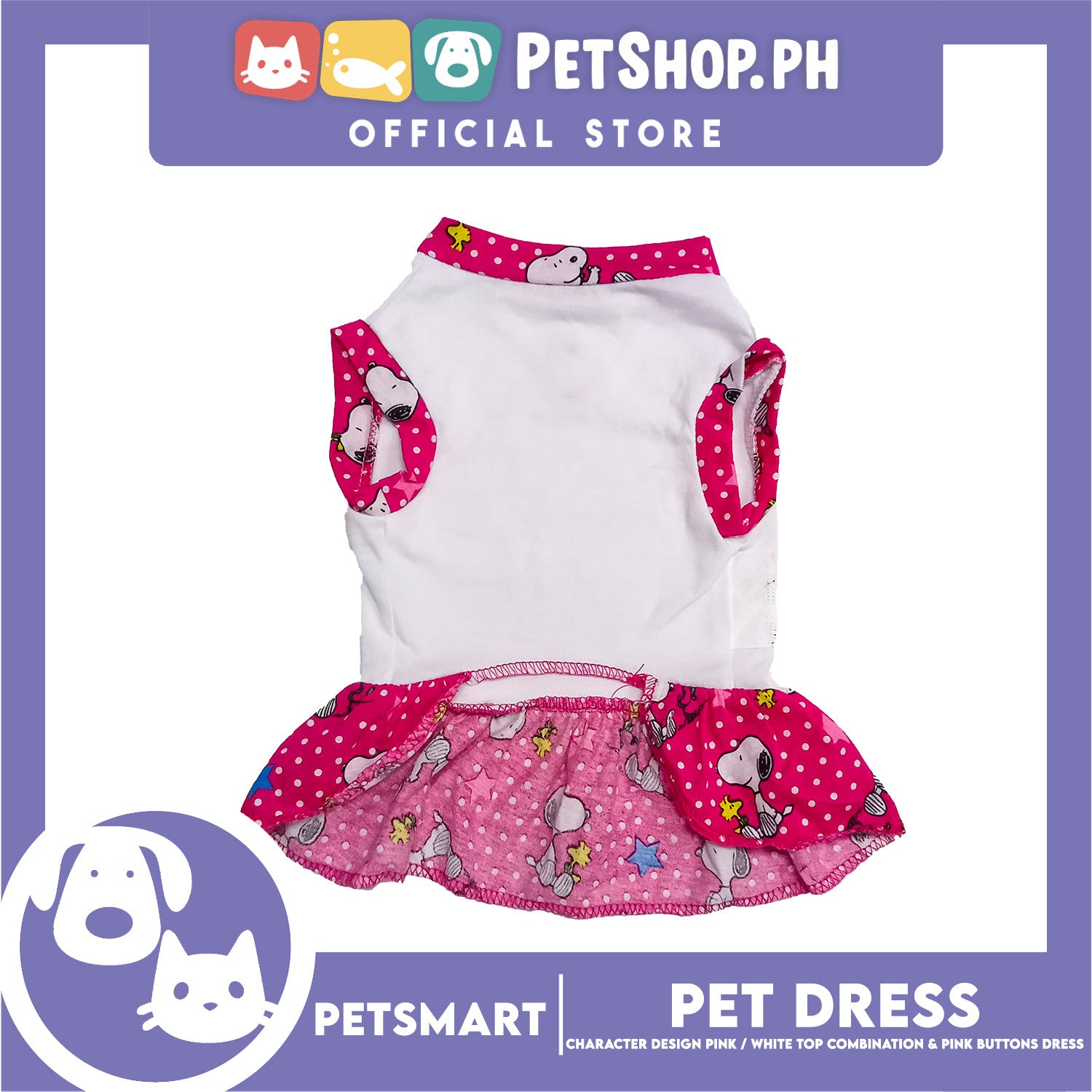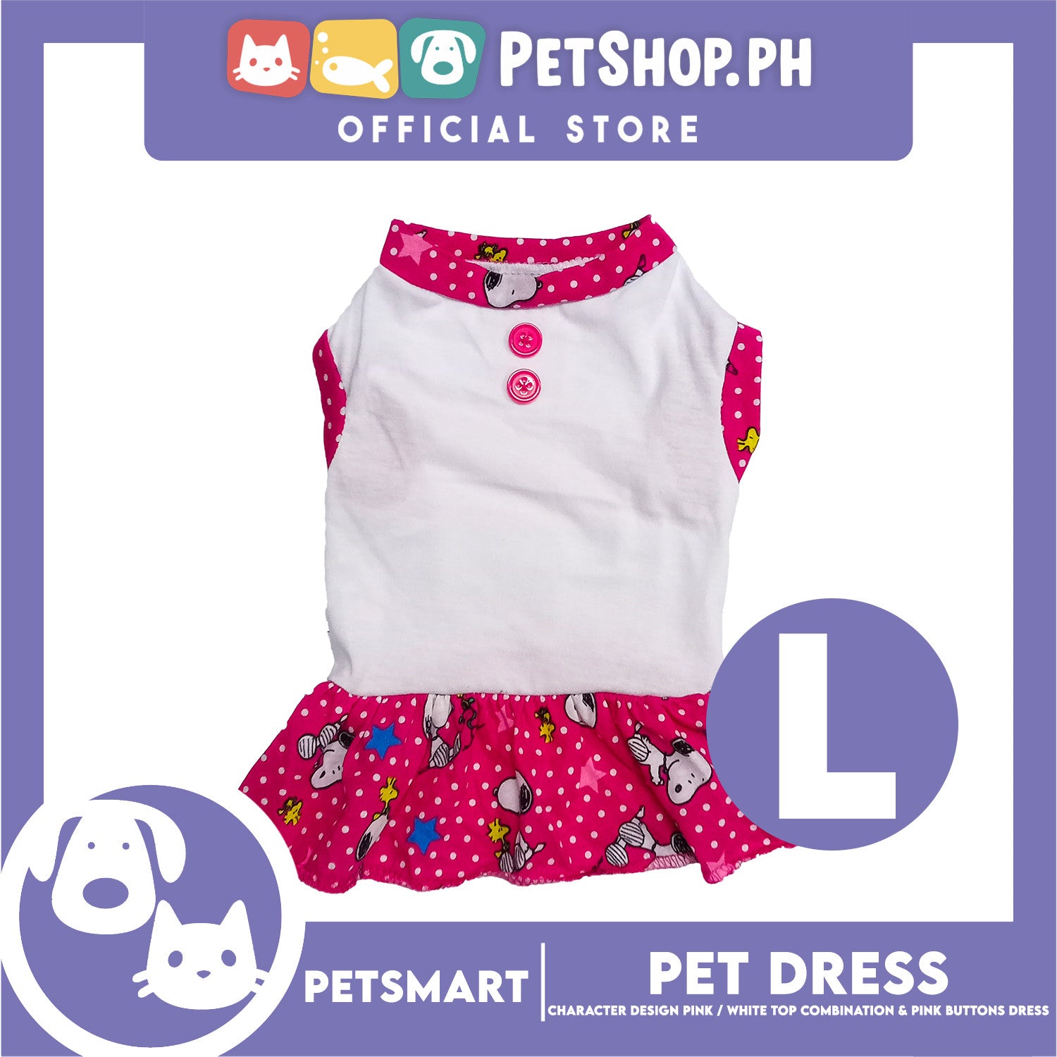 Pet Dress Character Design, Pink and White Top Combination and Pink Button Color Design, Large Size (DG-CTN204L)