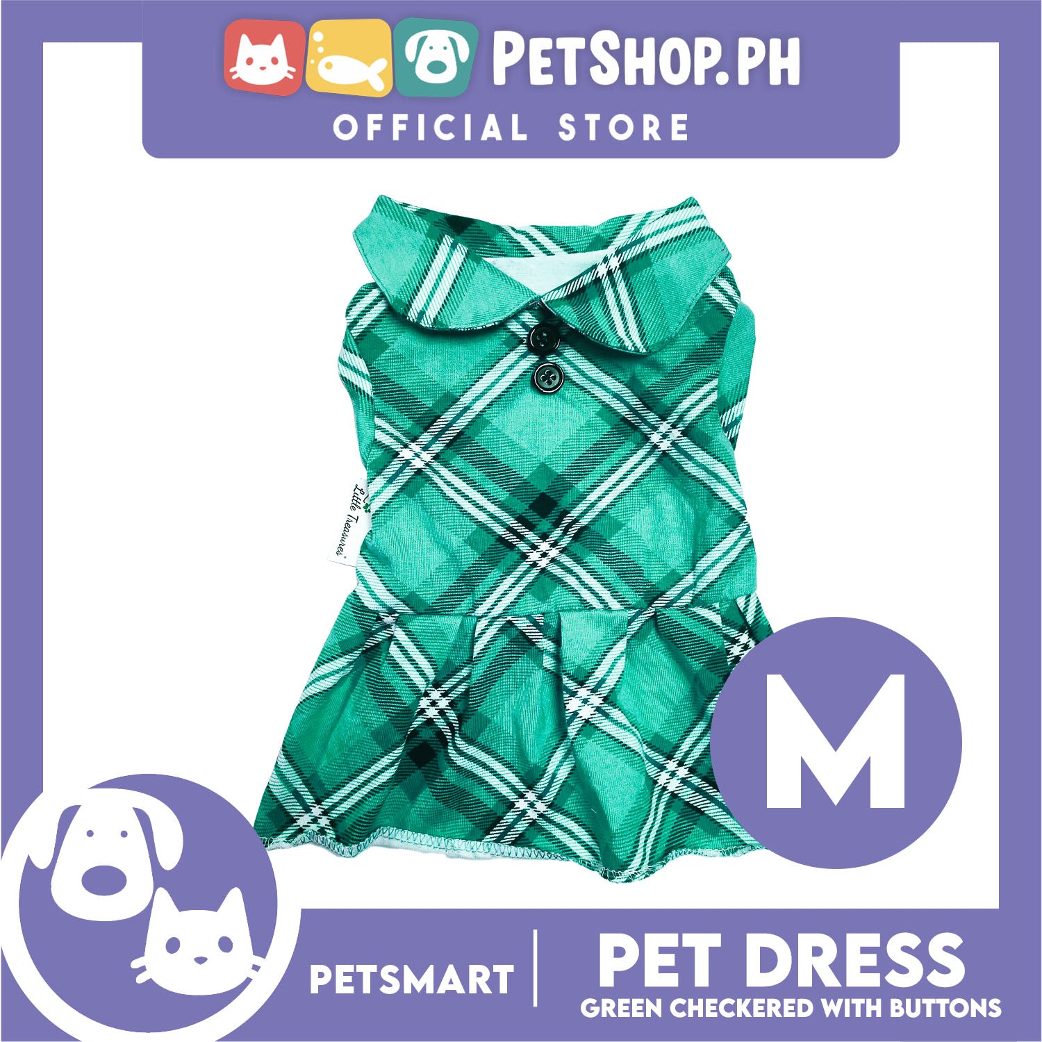 Pet Dress Checkered Green With Buttons Dress DG-CTN115M (Medium)