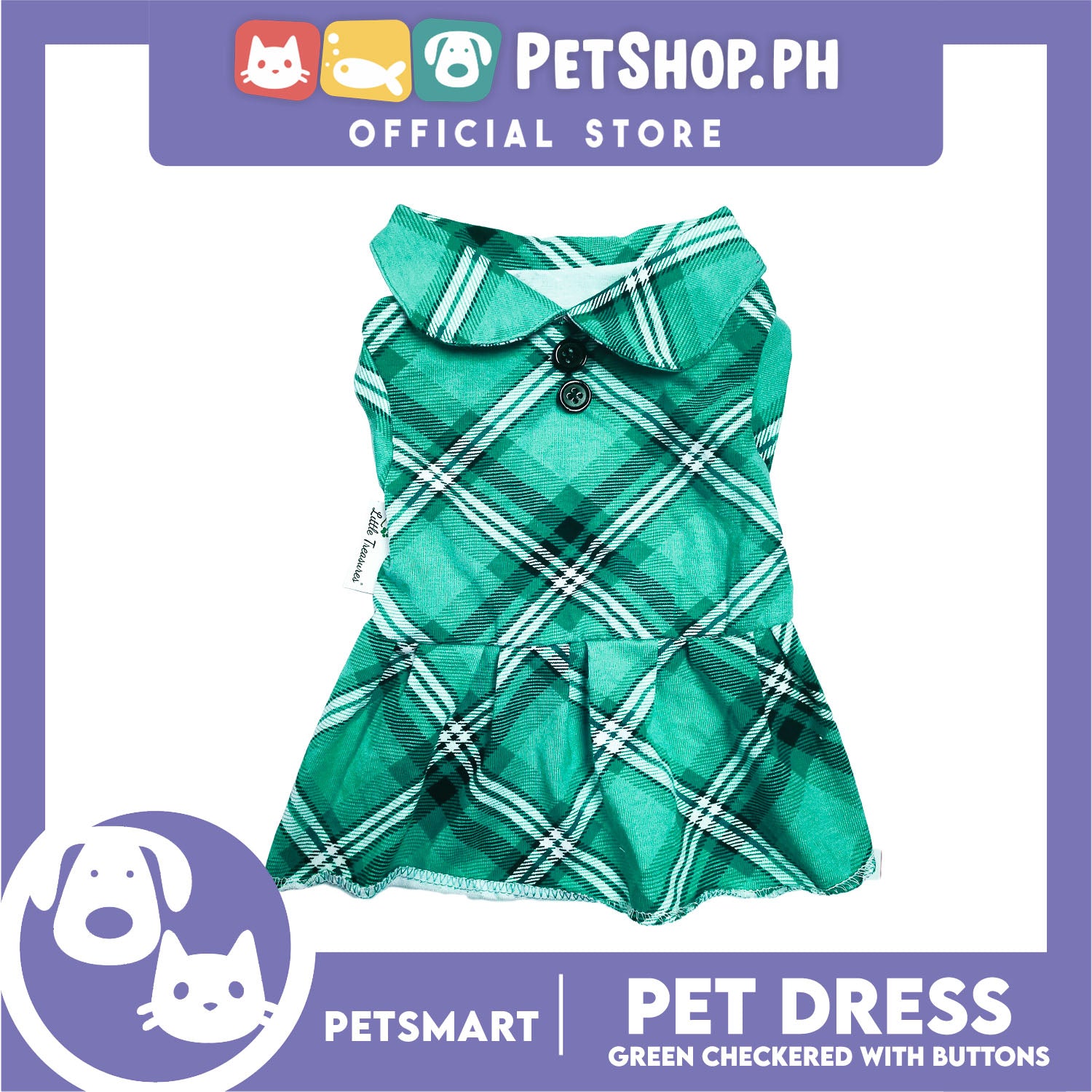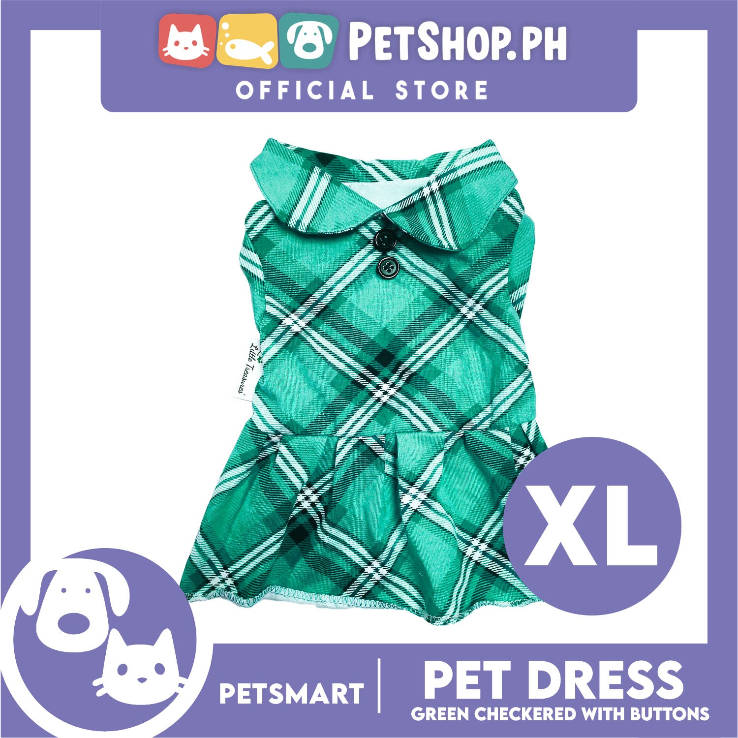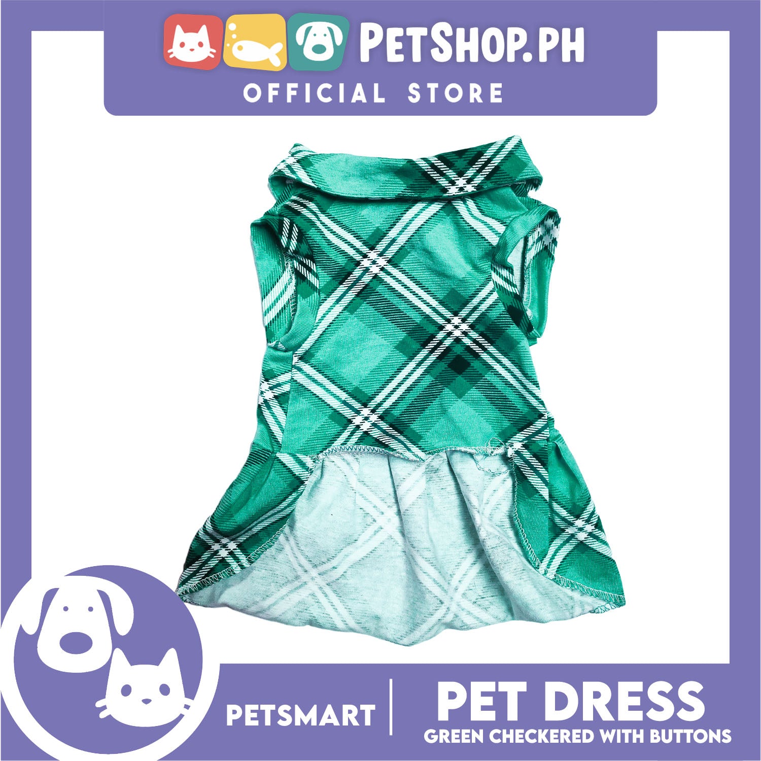 Pet Dress Checkered Green With Buttons Dress DG-CTN115XL (XL) Perfect Fit For Dogs And Cats, Breathable Dress Clothes, Soft Lightweight Pet Clothing