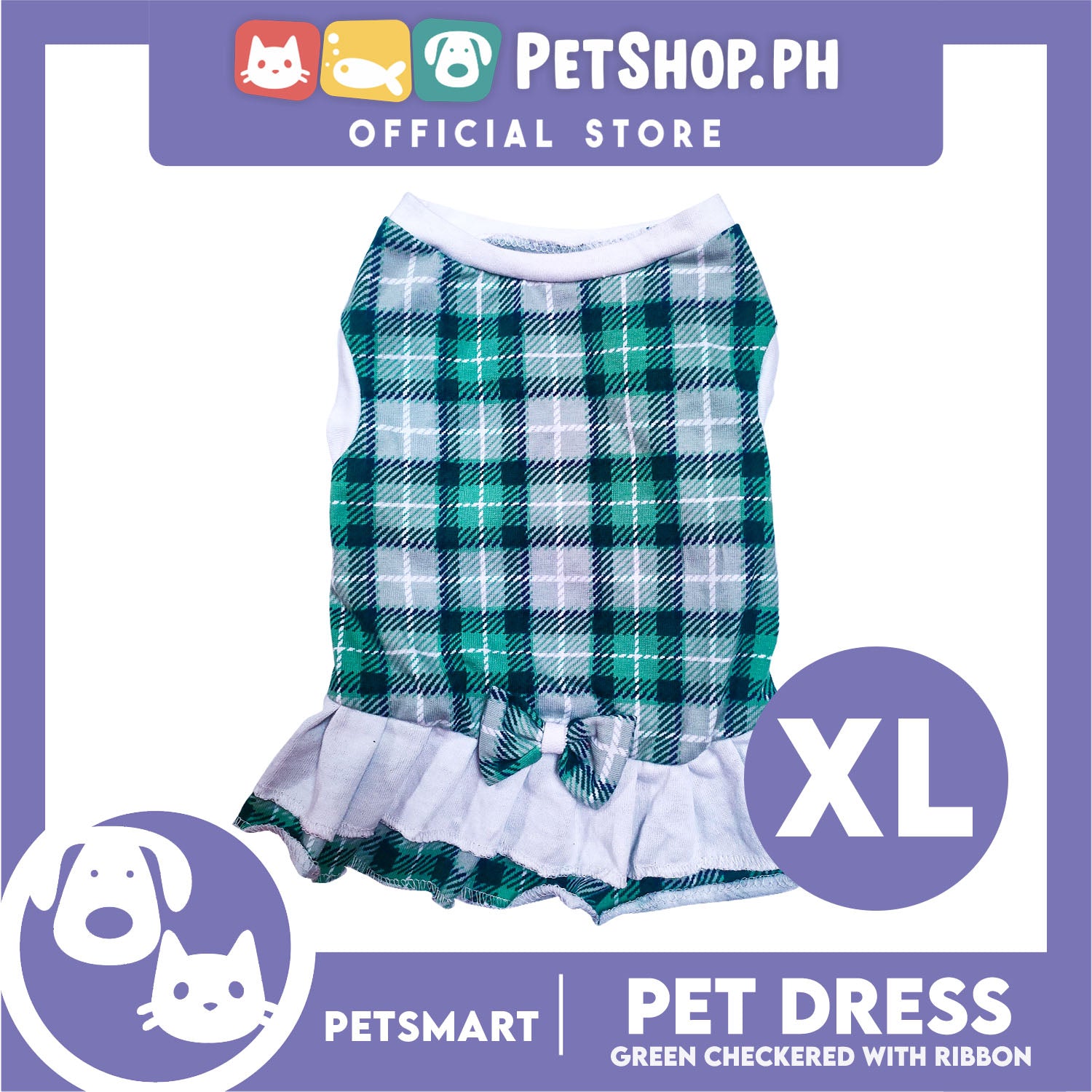 Pet Dress Checkered Green With Ribbon Dress DG-CTN114XL (XL) Perfect Fit For Dogs And Cats, Breathable Dress Clothes, Soft Lightweight Pet Clothing