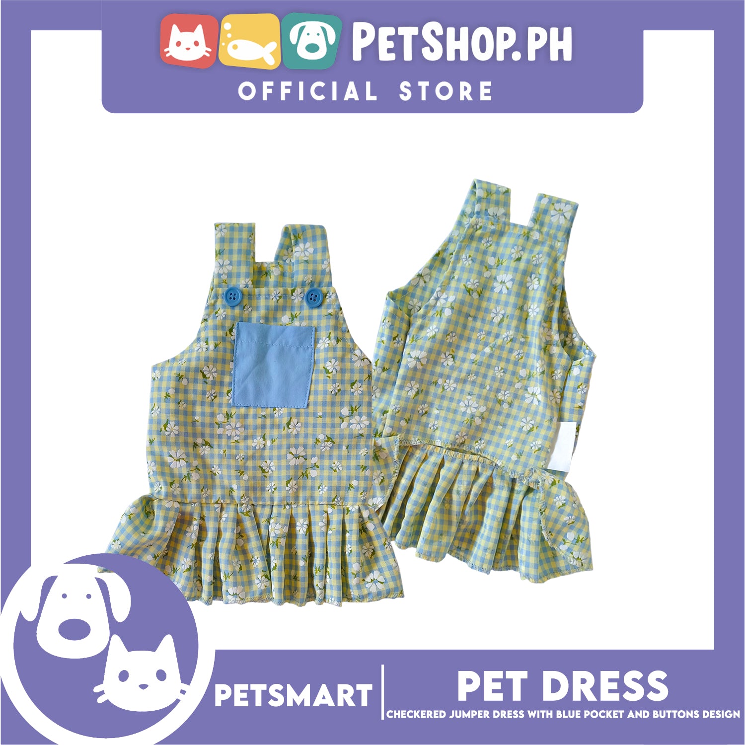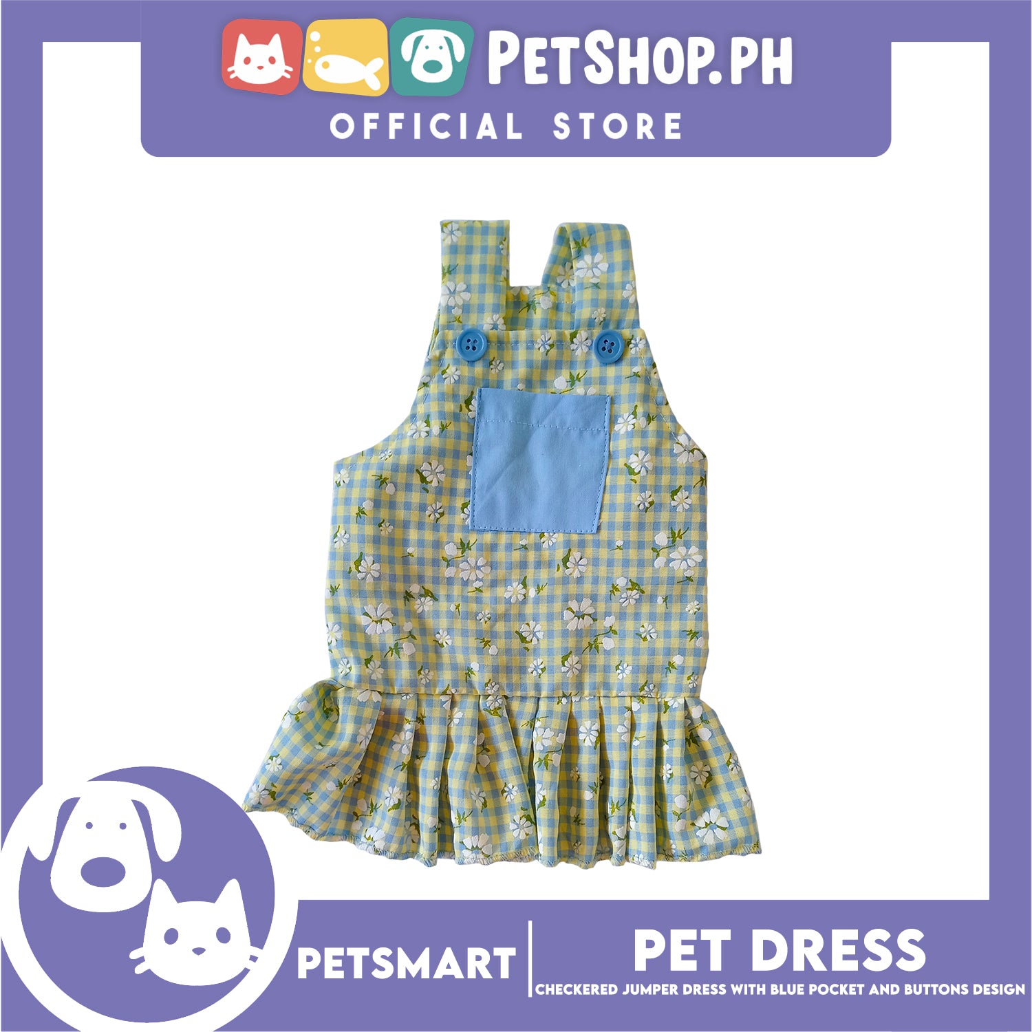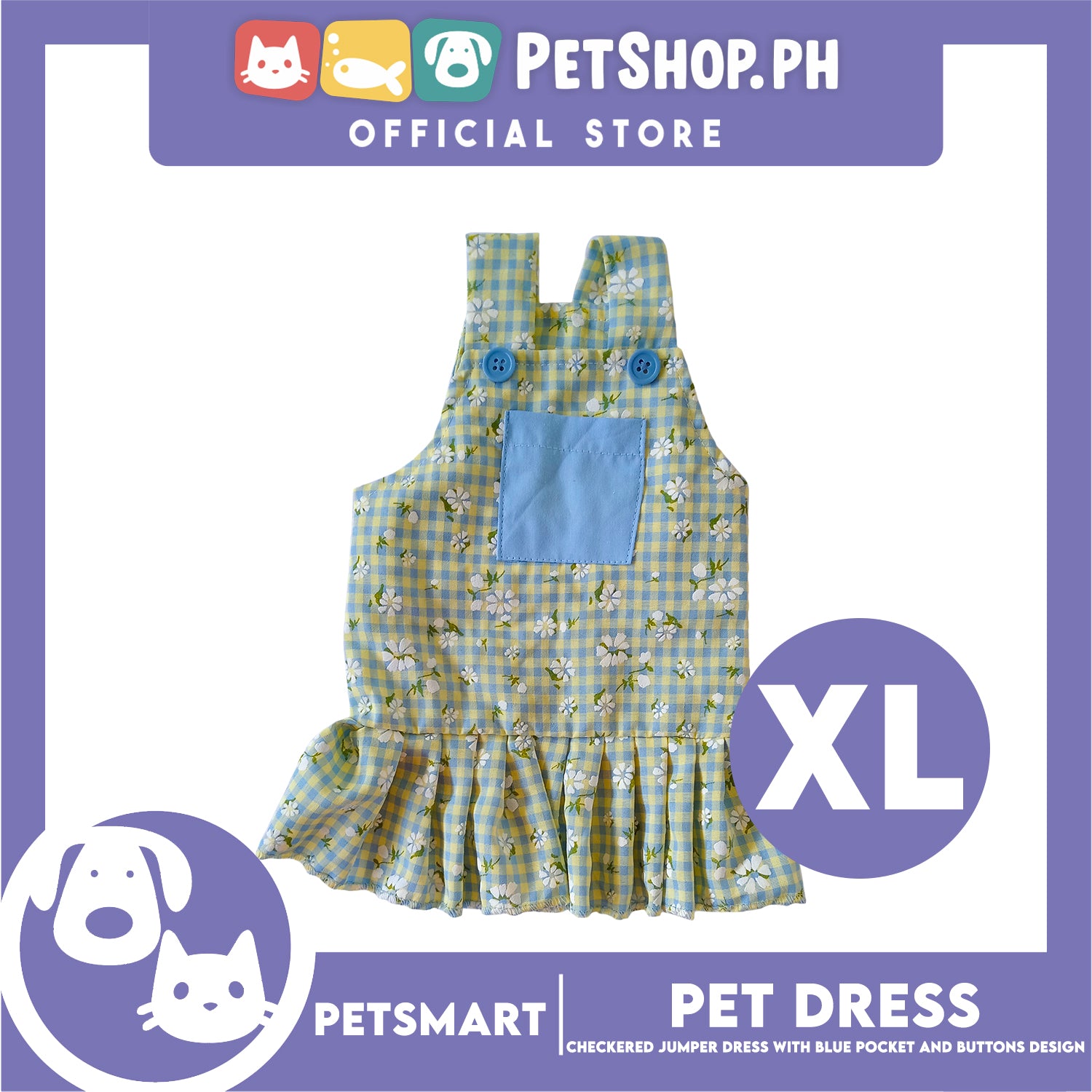 Pet Dress, Checkered Jumper Dress with Blue Pocket and Buttons Design DG-CTN157XL (XL) Perfect Fit For Dogs And Cats, Pet Clothes, Soft and Comfortable Pet Clothing
