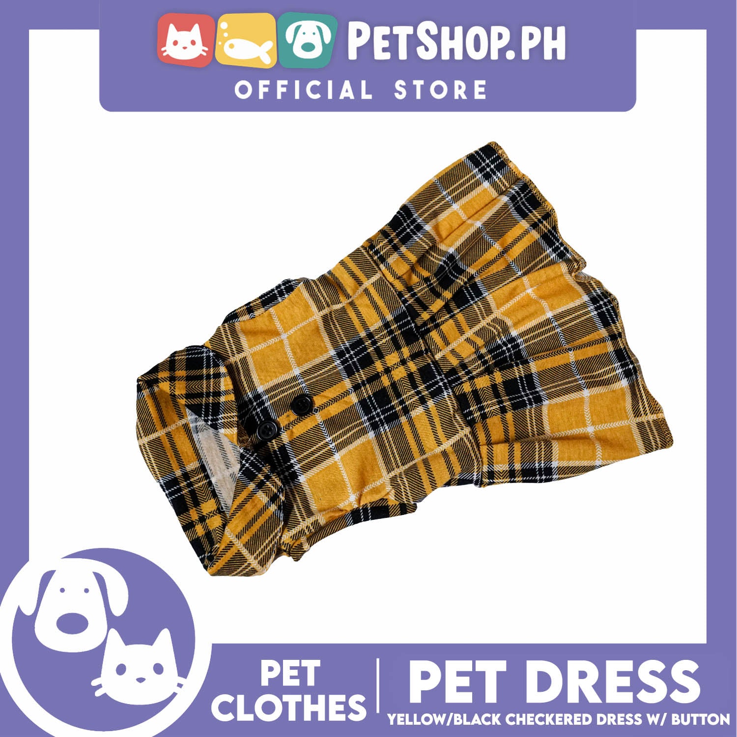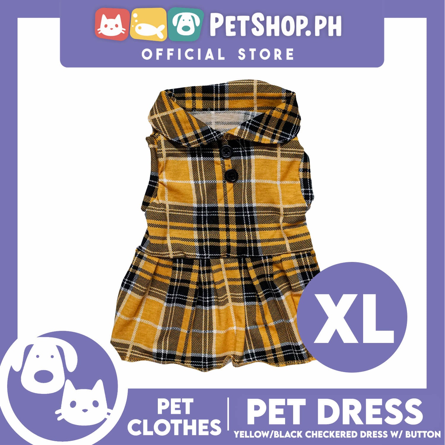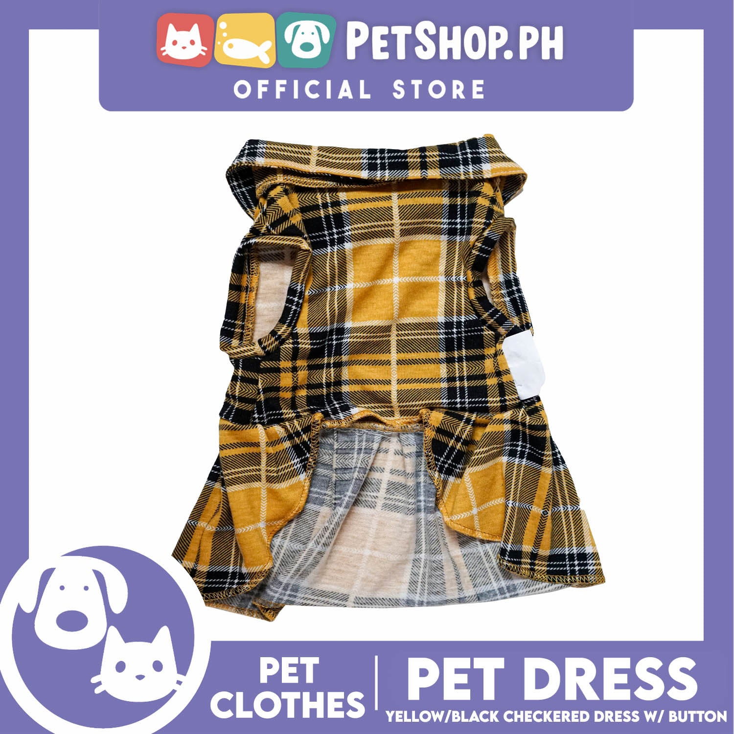 Pet Dress Checkered Yellow and Black with Button (Extra Large) Perfect Fit for Dogs and Cats