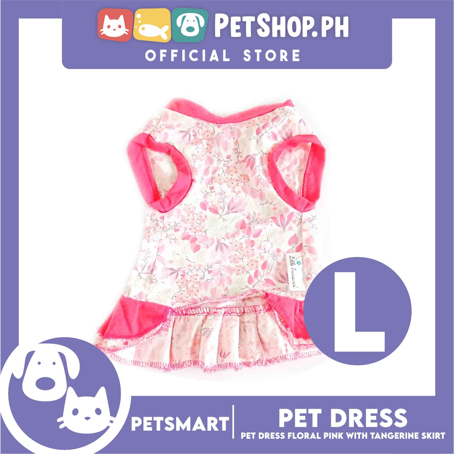 Pet Dress Clothes, Floral Pink With Tangerine Skirt Dress DG-CTN134L (Large)